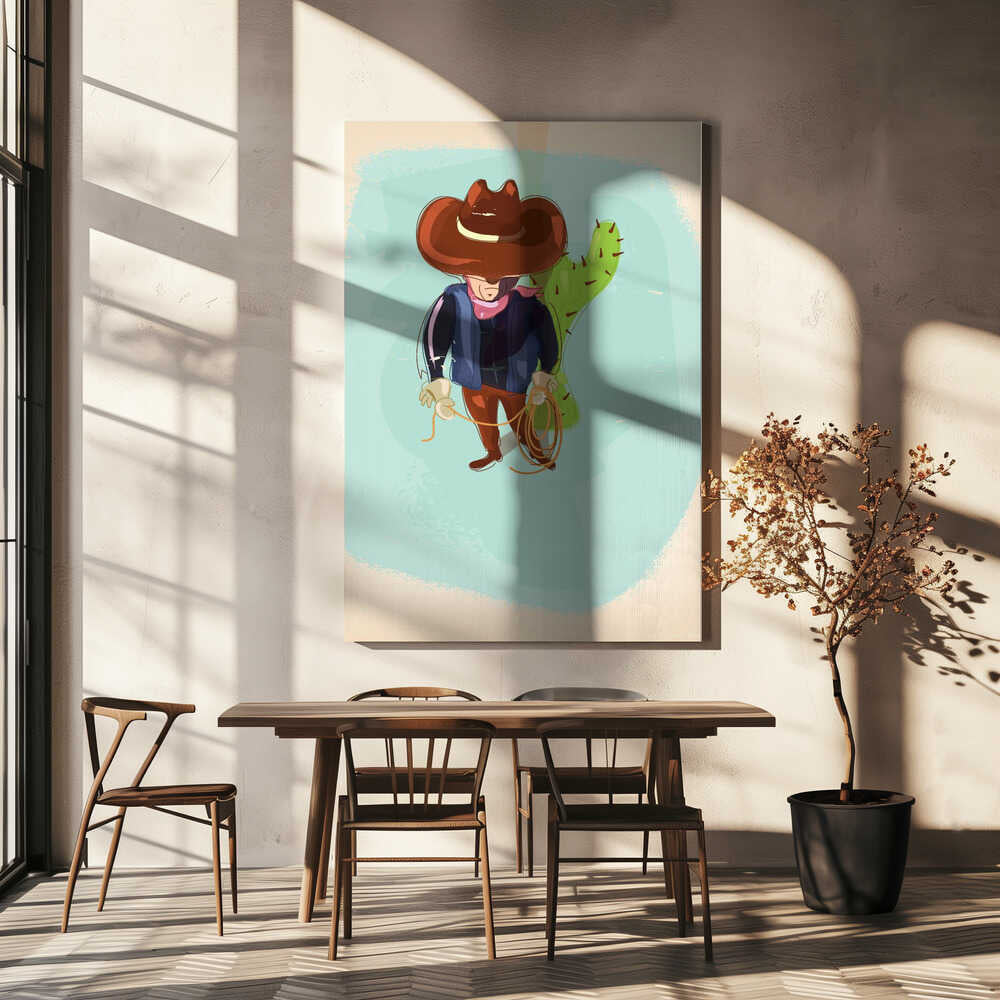 Tablou canvas „Texas Cowboy” creat de Nicholas, imprimat pe pânză de calitate, gata de agățat. Disponibil în mai multe dimensiuni. Perfect pentru orice spațiu.