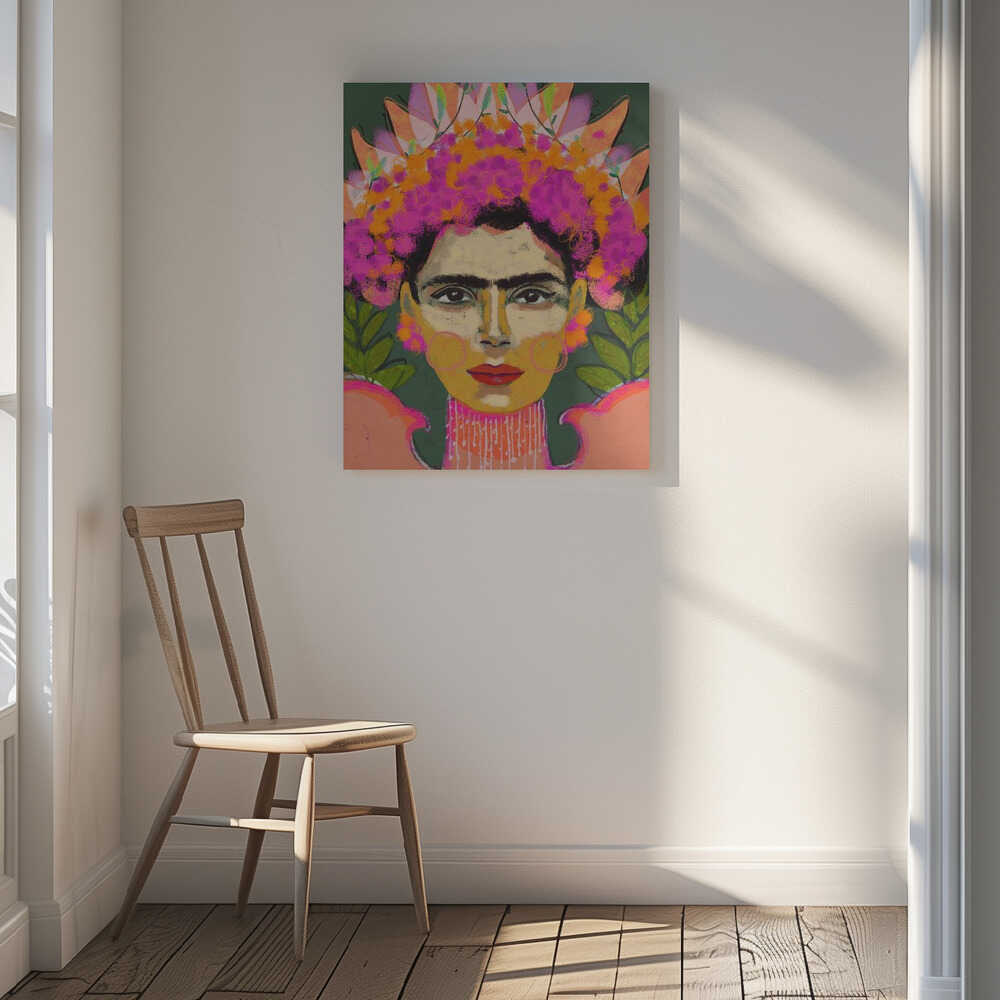 Tablou canvas „Vibrant Floral Crown” creat de Treechild, imprimat pe pânză de calitate, gata de agățat. Disponibil în mai multe dimensiuni. Perfect pentru orice spațiu.