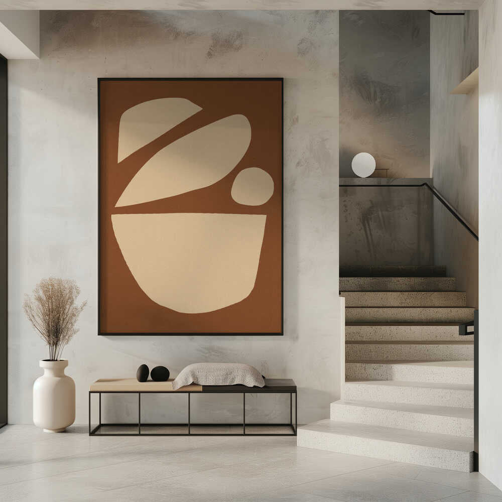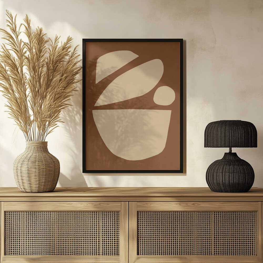 Tabloul înramat „Abstract Balance”, creat de Treechild, este disponibil în mai multe dimensiuni, cu ramă neagră, albă sau din lemn natur. Se potrivește perfect în orice încăpere.