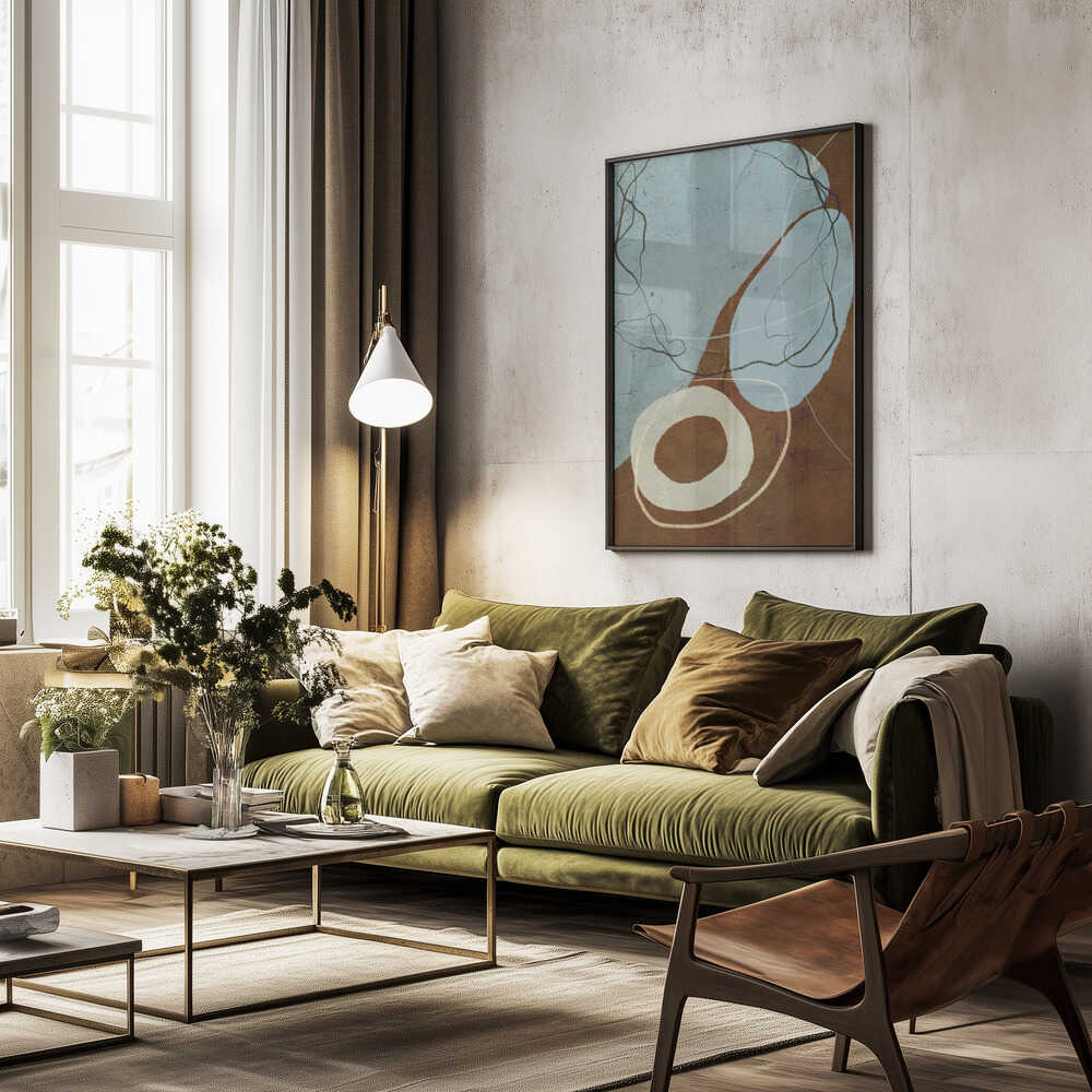 Tabloul înramat „Abstract Whispers”, creat de Treechild, este disponibil în mai multe dimensiuni, cu ramă neagră, albă sau din lemn natur. Se potrivește perfect în orice încăpere.