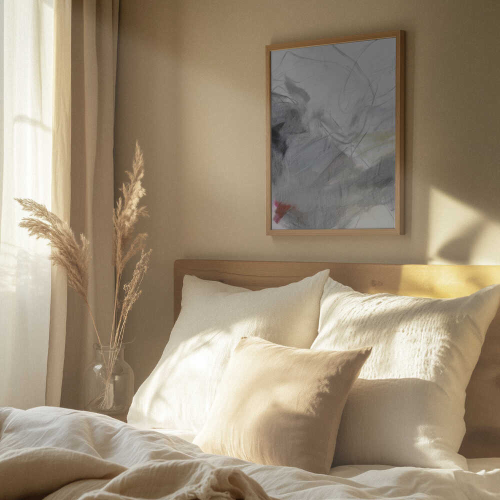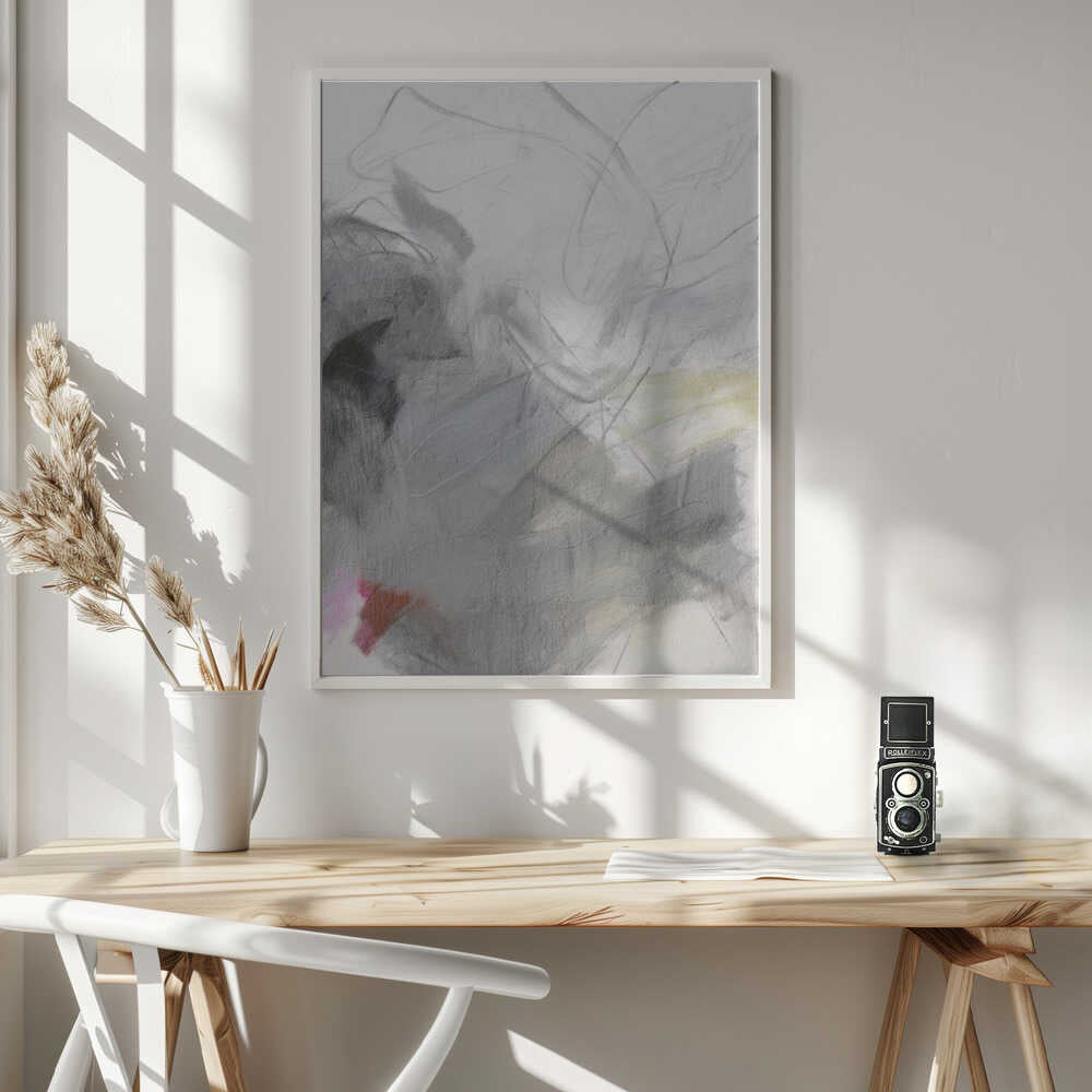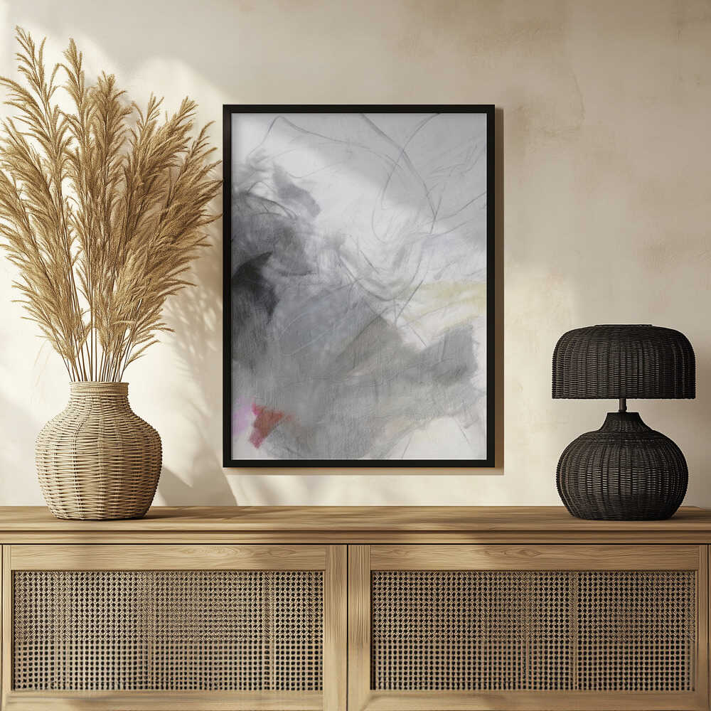 Tabloul înramat „Action painting I”, creat de Alma, este disponibil în mai multe dimensiuni, cu ramă neagră, albă sau din lemn natur. Se potrivește perfect în orice încăpere.