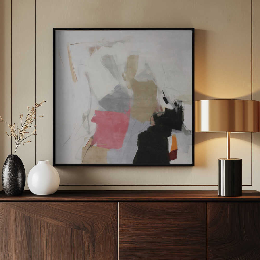 Tabloul înramat „Action painting III”, creat de Alma, este disponibil în mai multe dimensiuni, cu ramă neagră, albă sau din lemn natur. Se potrivește perfect în orice încăpere.