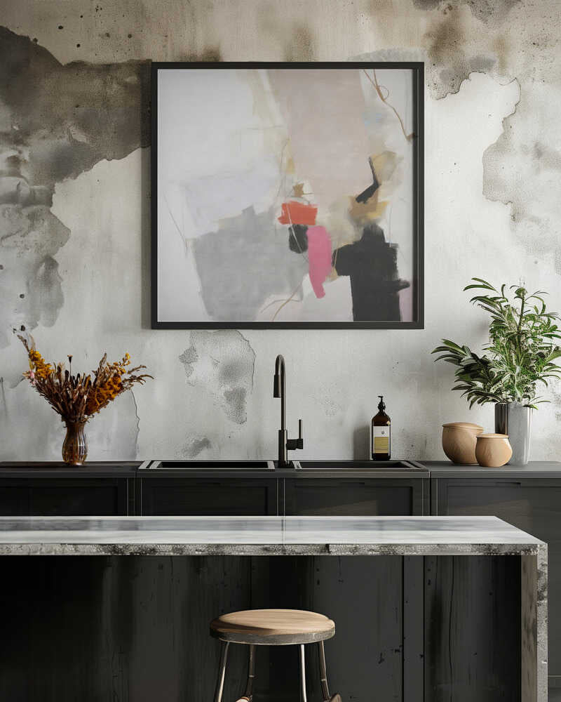 Tabloul înramat „Action painting IV”, creat de Alma, este disponibil în mai multe dimensiuni, cu ramă neagră, albă sau din lemn natur. Se potrivește perfect în orice încăpere.
