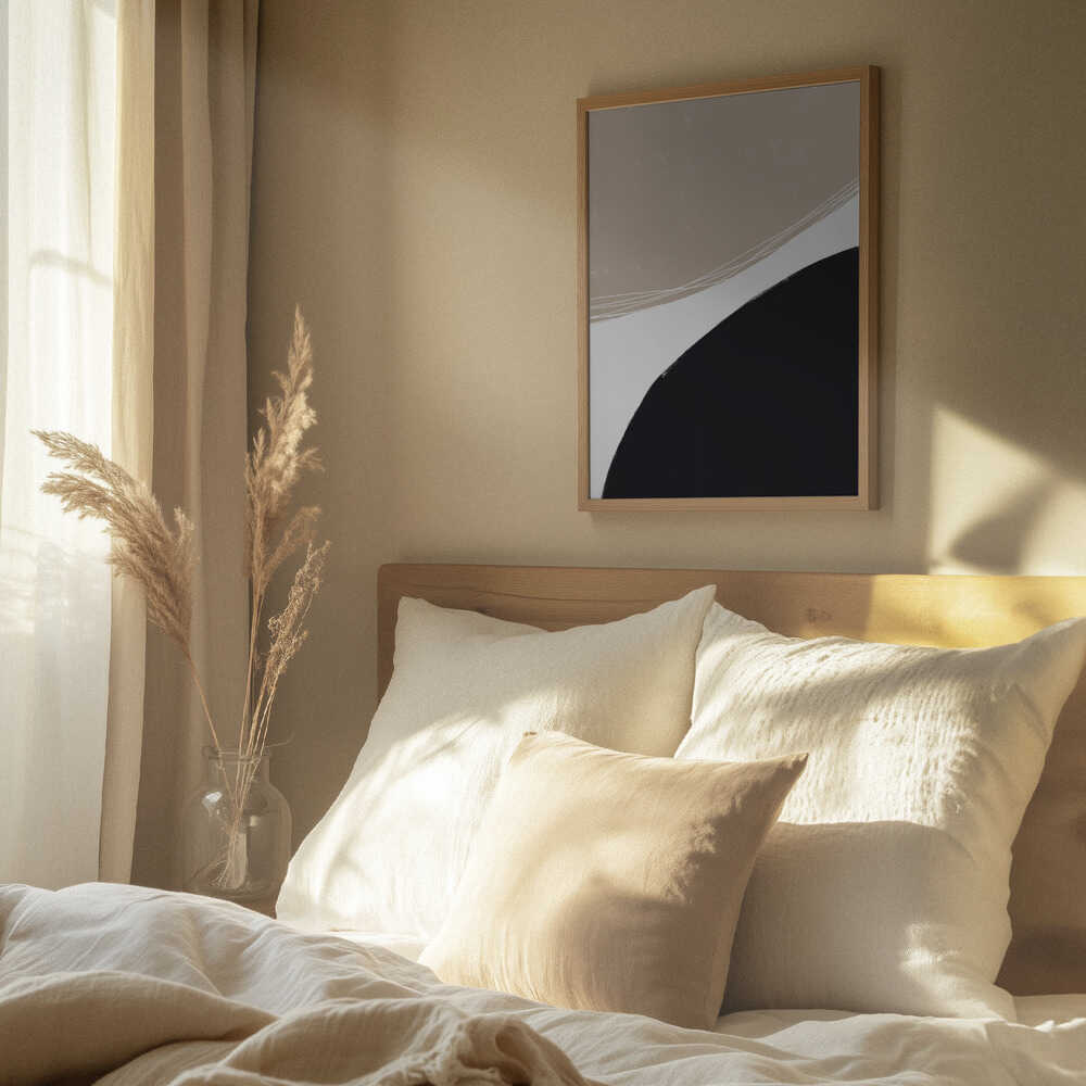 Tabloul înramat „Beige And Black Organic Shapes”, creat de uplusmestudio, este disponibil în mai multe dimensiuni, cu ramă neagră, albă sau din lemn natur. Se potrivește perfect în orice încăpere.