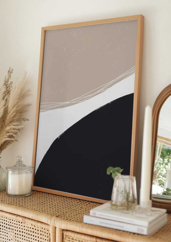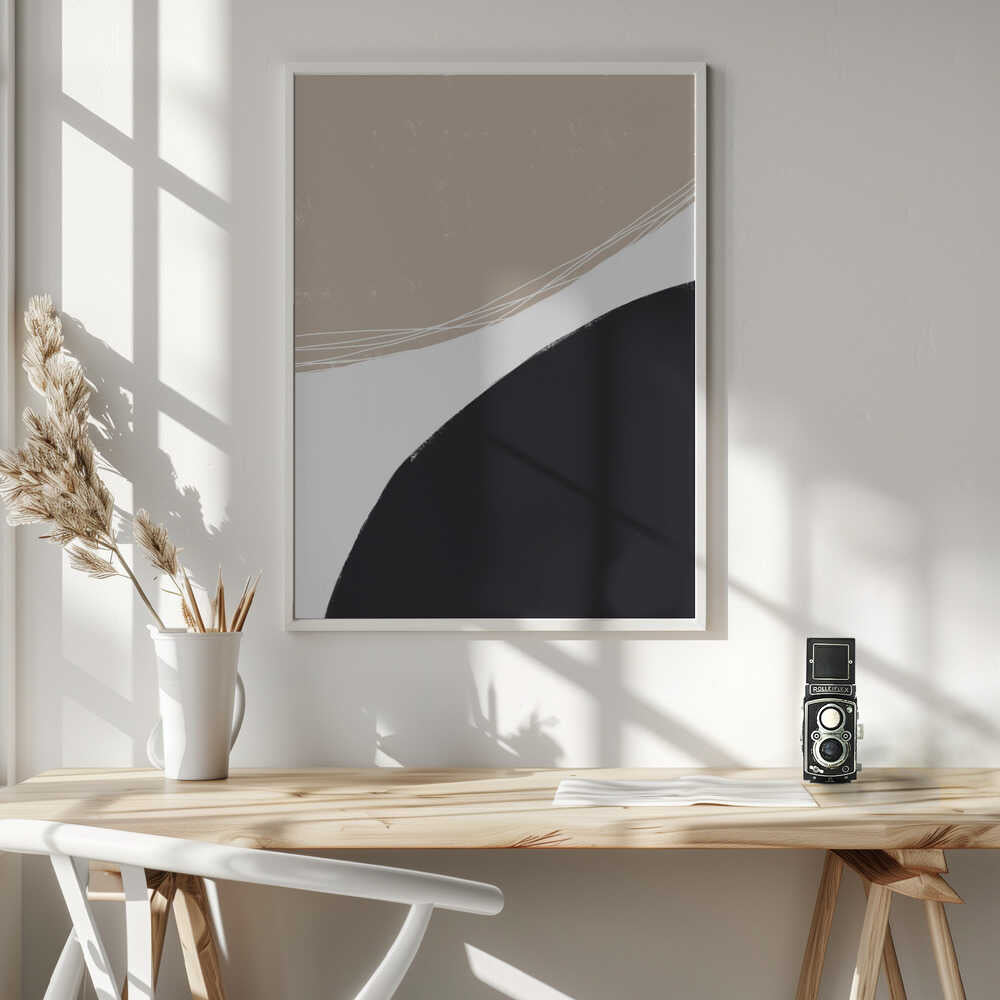 Tablou înramat „Beige And Black Organic Shapes” de uplusmestudio