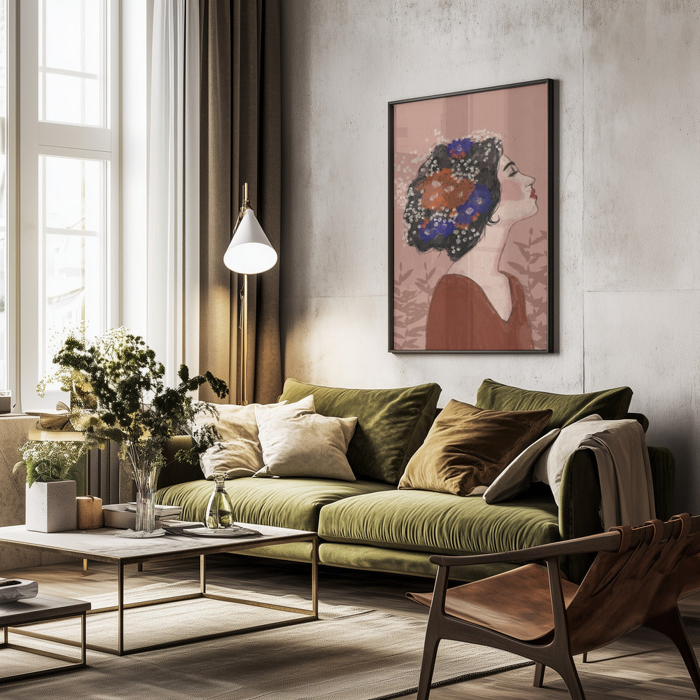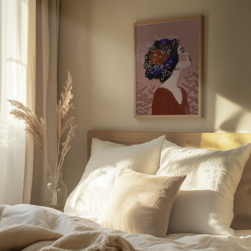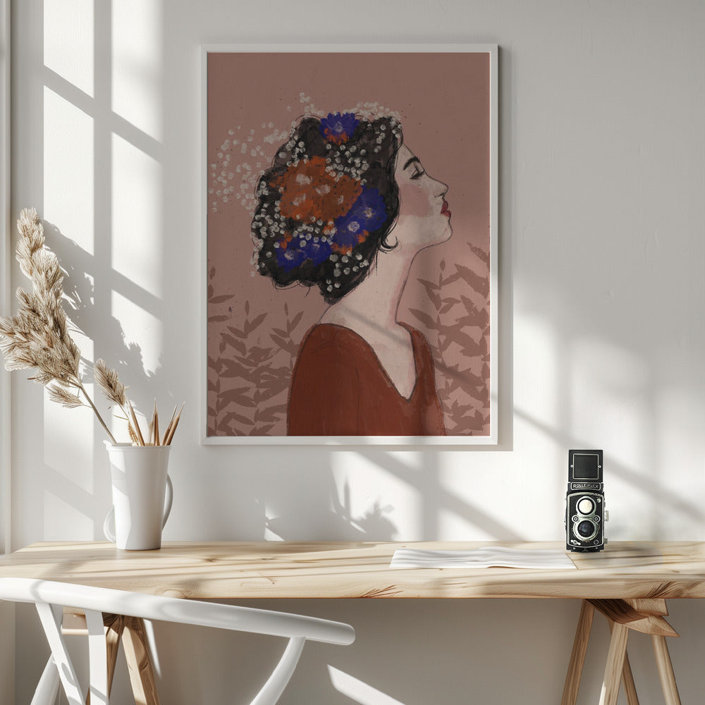 Tabloul înramat „Blossoms in Profile”, creat de Treechild, este disponibil în mai multe dimensiuni, cu ramă neagră, albă sau din lemn natur. Se potrivește perfect în orice încăpere.