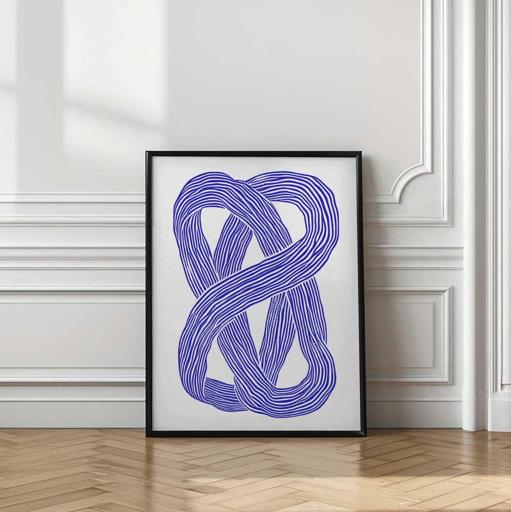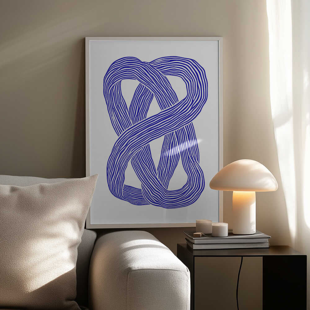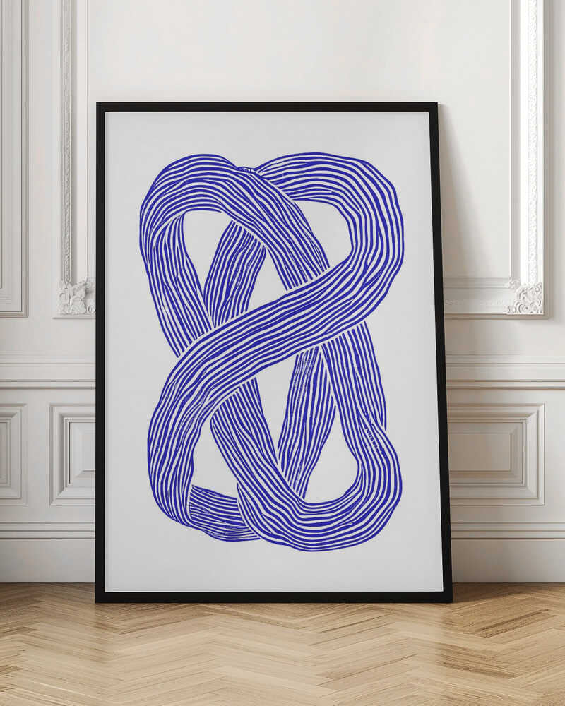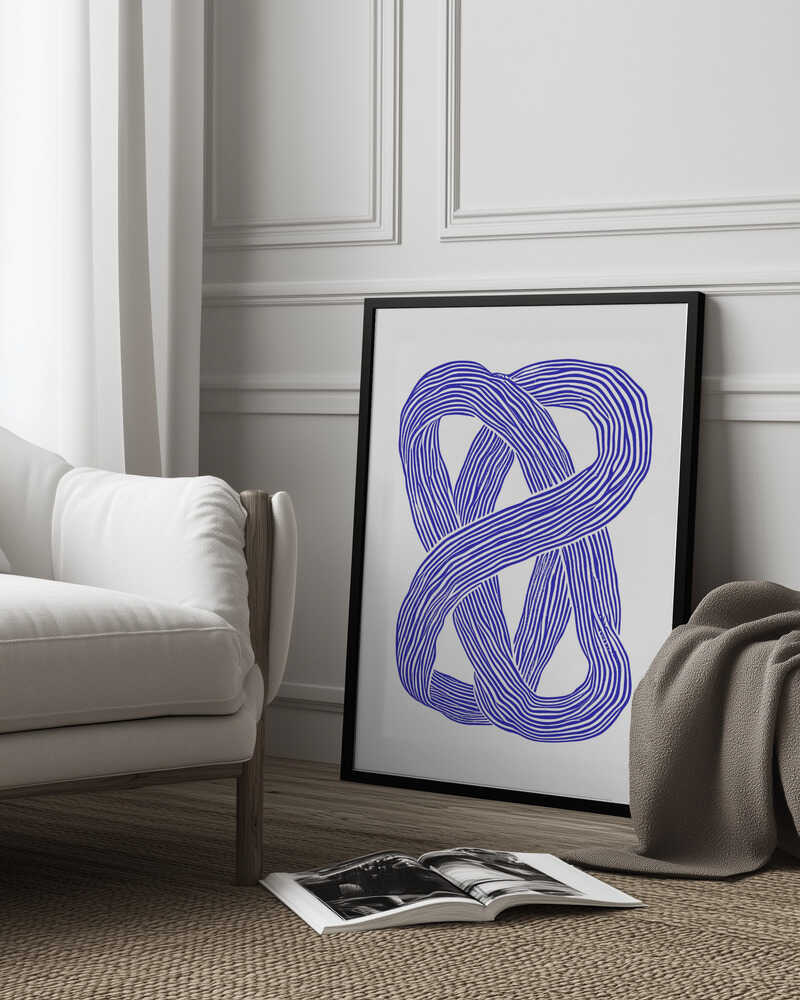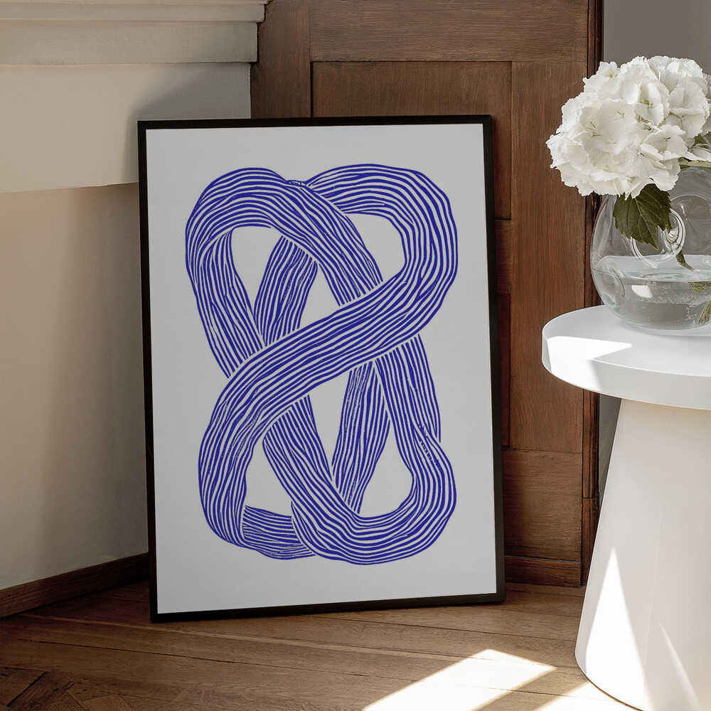 Tabloul înramat „Blue Infinity Loop”, creat de Treechild, este disponibil în mai multe dimensiuni, cu ramă neagră, albă sau din lemn natur. Se potrivește perfect în orice încăpere.