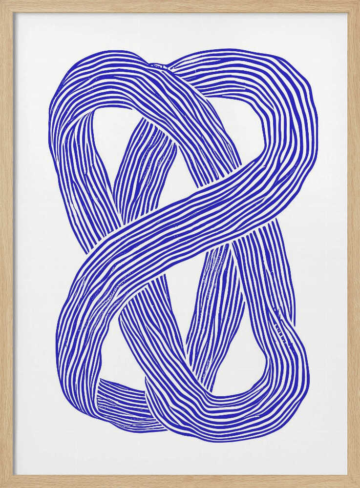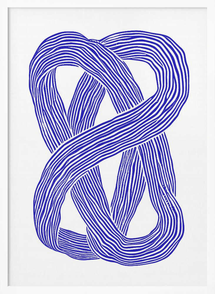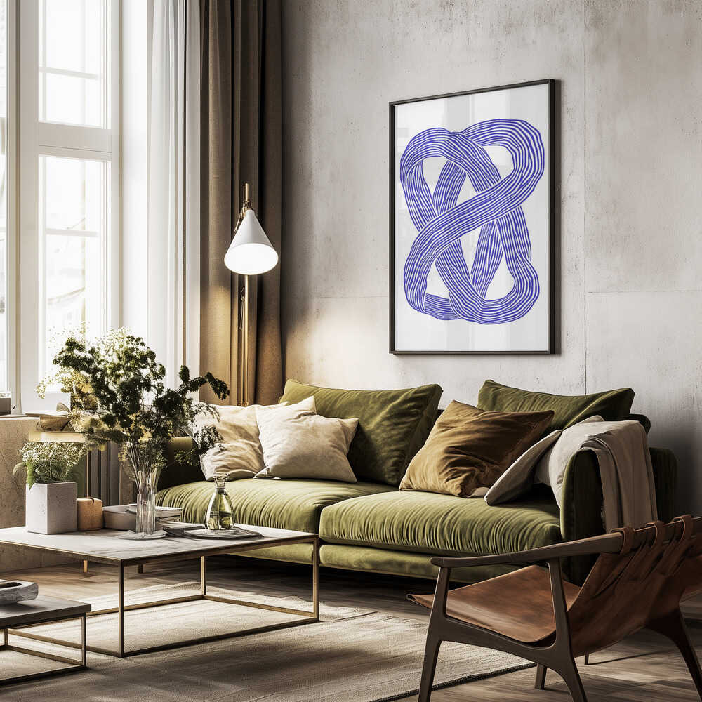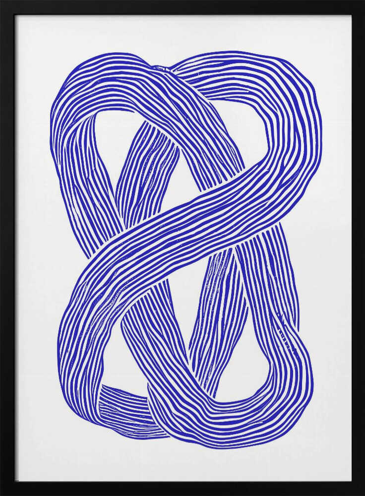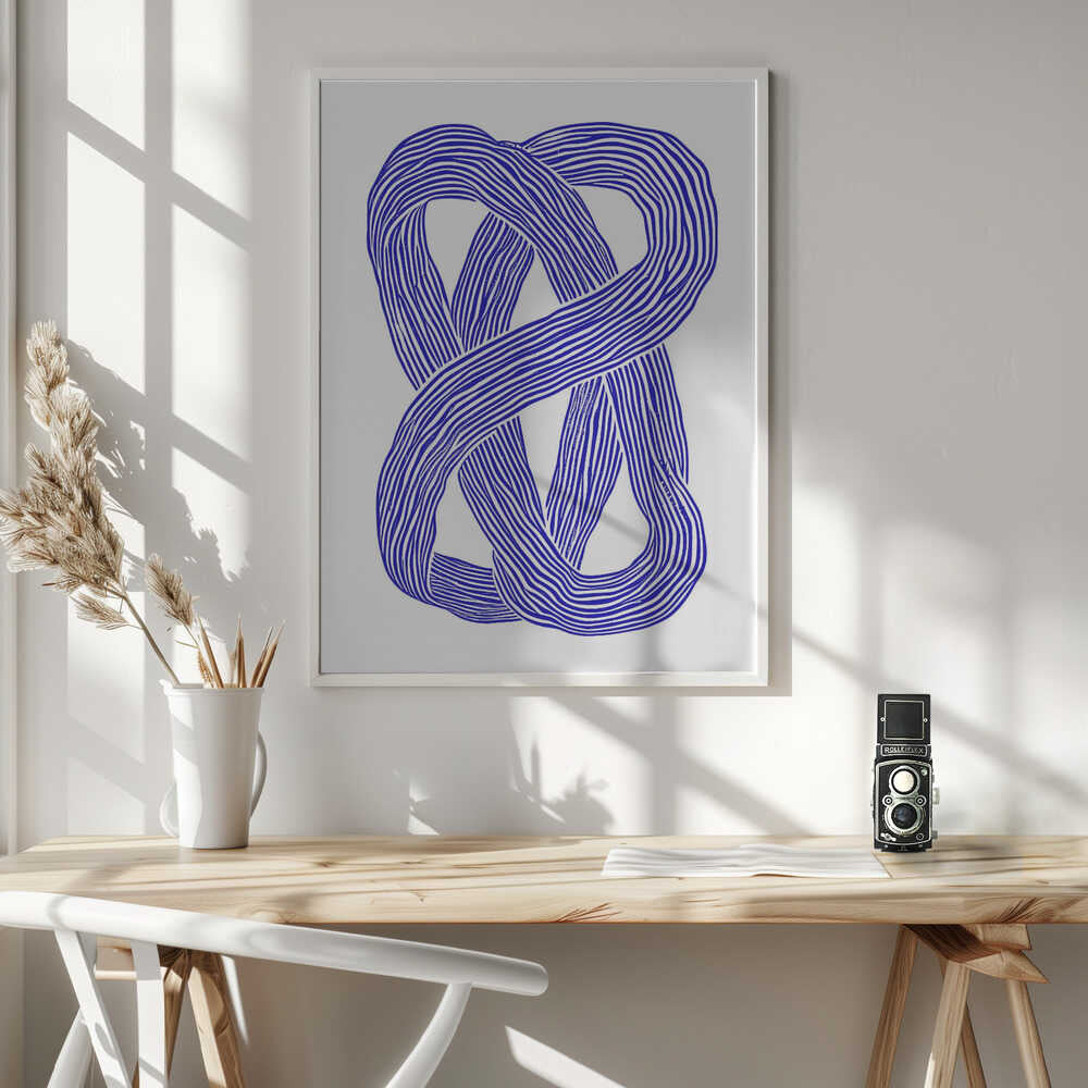 Tabloul înramat „Blue Infinity Loop”, creat de Treechild, este disponibil în mai multe dimensiuni, cu ramă neagră, albă sau din lemn natur. Se potrivește perfect în orice încăpere.