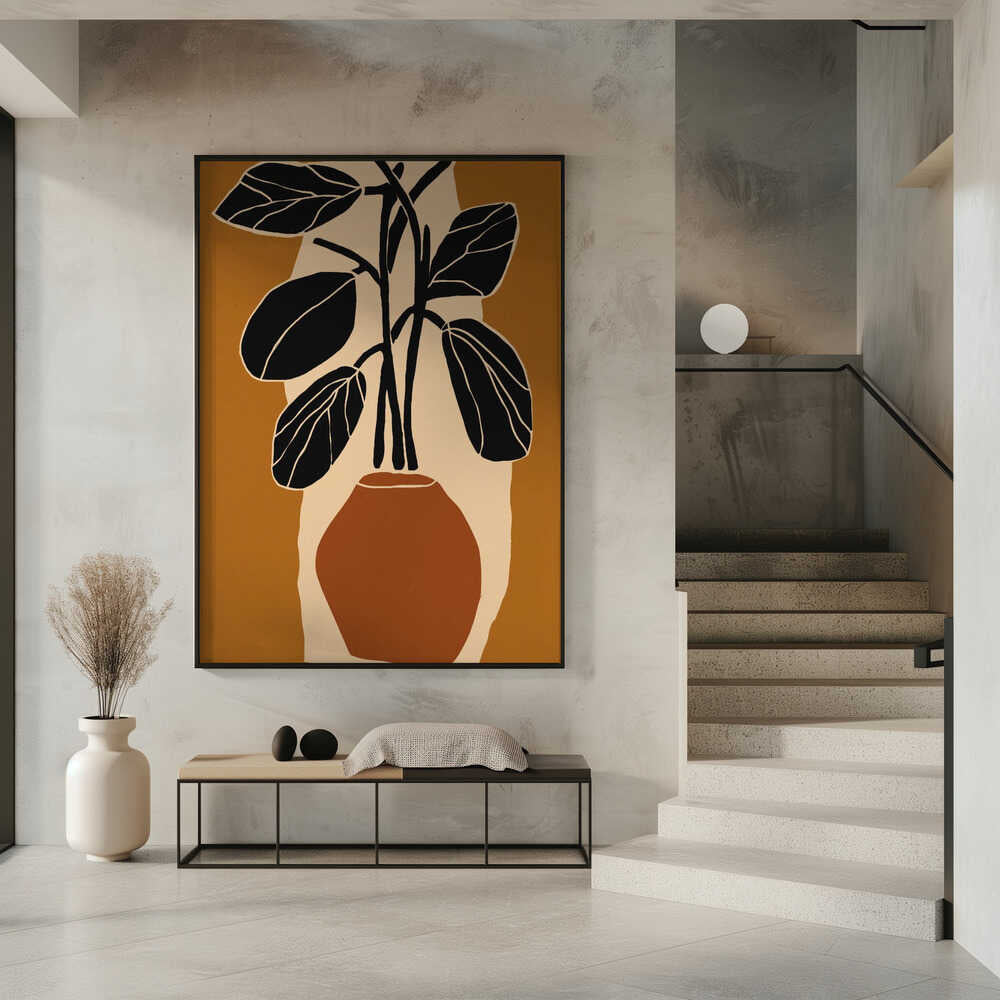 Tabloul înramat „Bold Leaf Silhouette”, creat de Treechild, este disponibil în mai multe dimensiuni, cu ramă neagră, albă sau din lemn natur. Se potrivește perfect în orice încăpere.