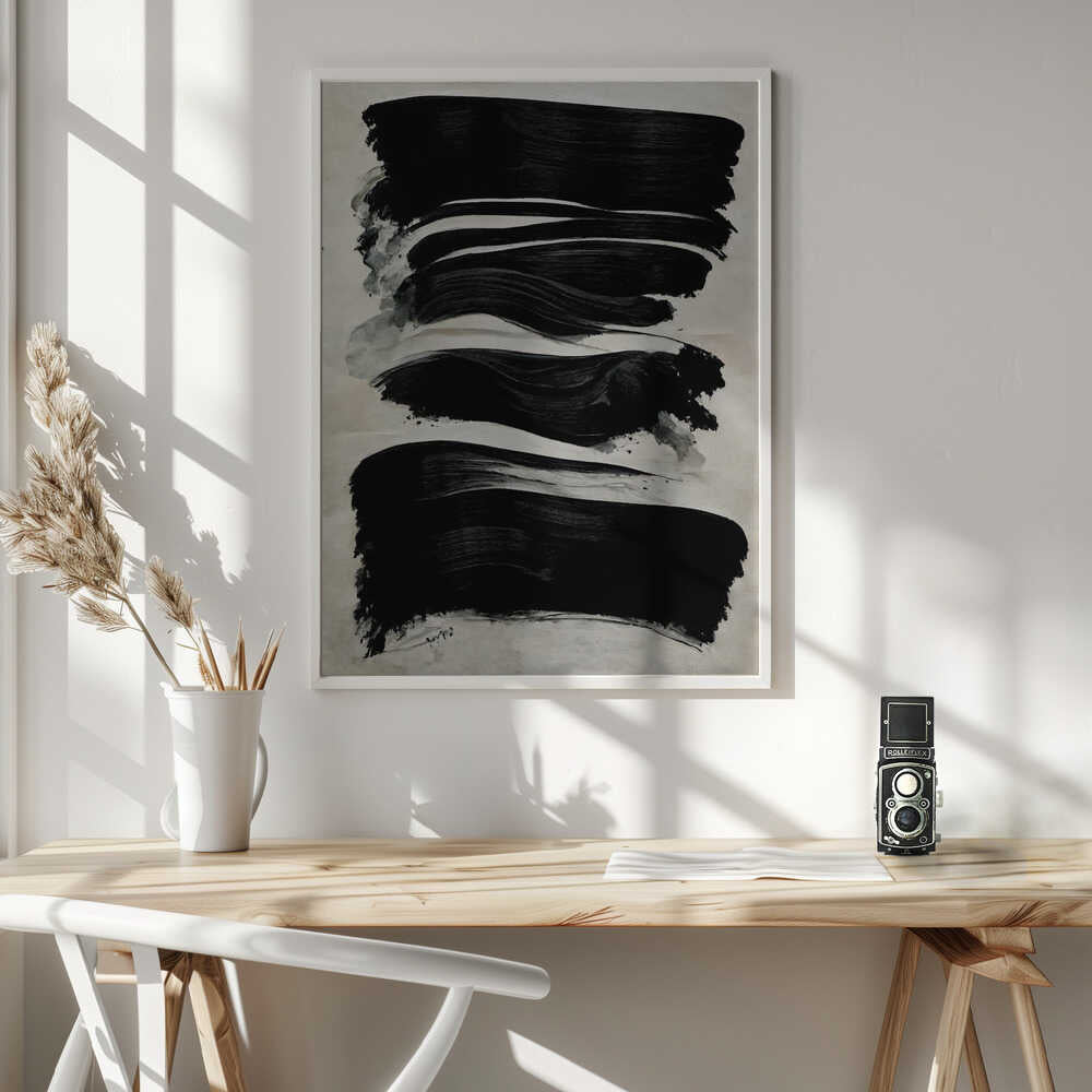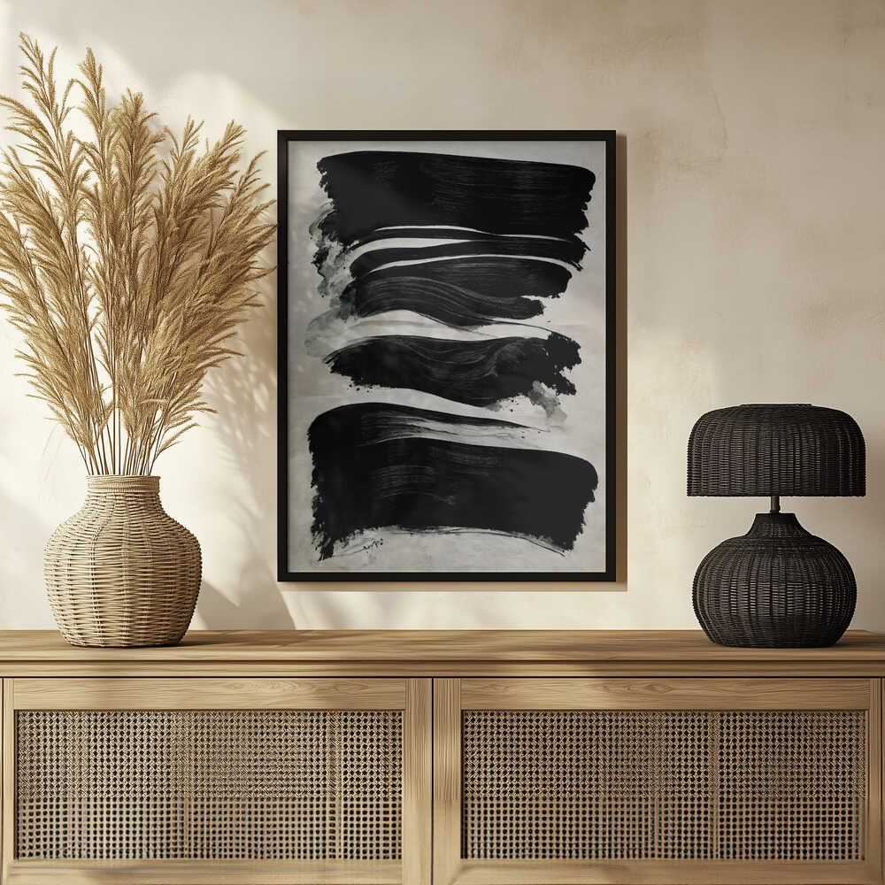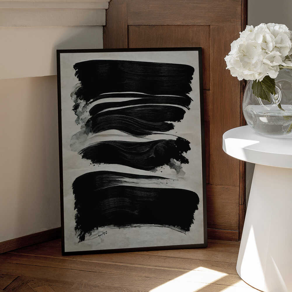 Tabloul înramat „Brushstroke Symphony”, creat de Treechild, este disponibil în mai multe dimensiuni, cu ramă neagră, albă sau din lemn natur. Se potrivește perfect în orice încăpere.