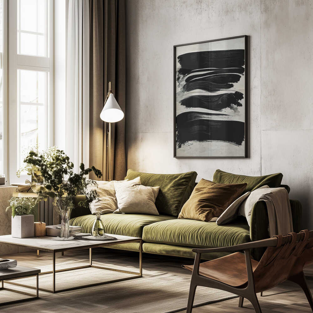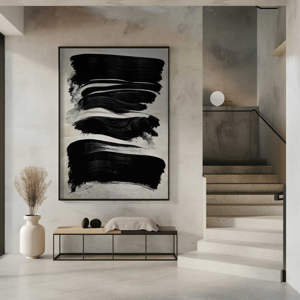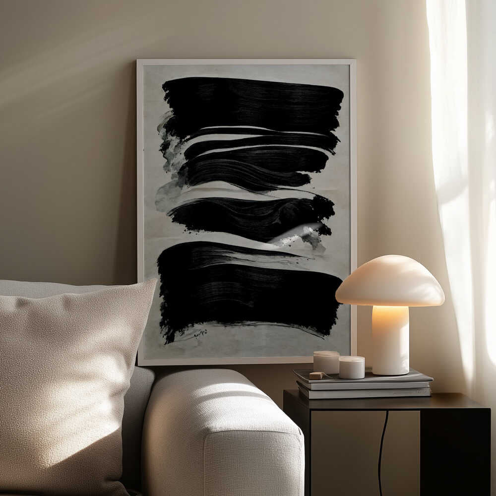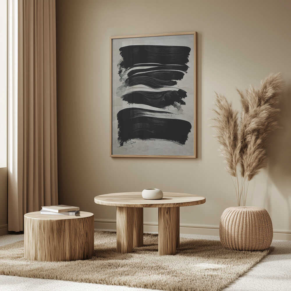 Tabloul înramat „Brushstroke Symphony”, creat de Treechild, este disponibil în mai multe dimensiuni, cu ramă neagră, albă sau din lemn natur. Se potrivește perfect în orice încăpere.
