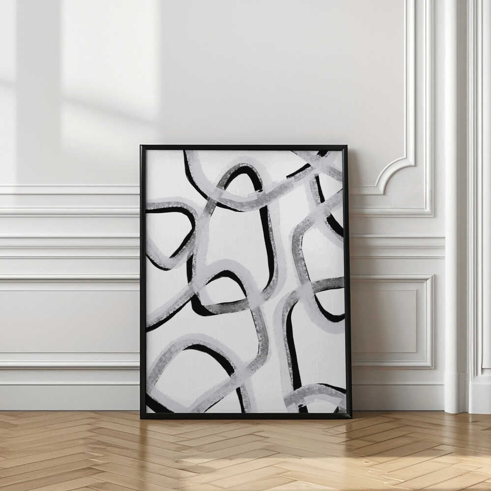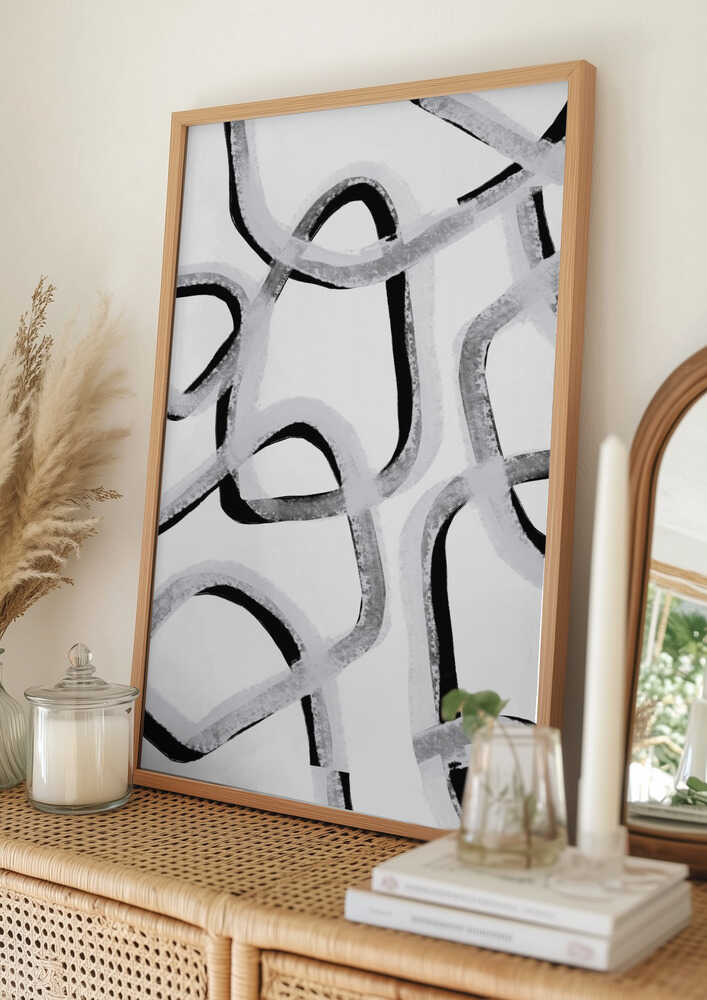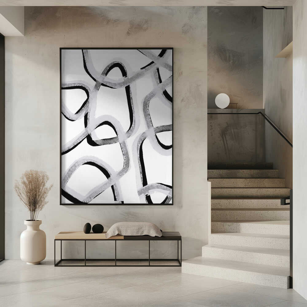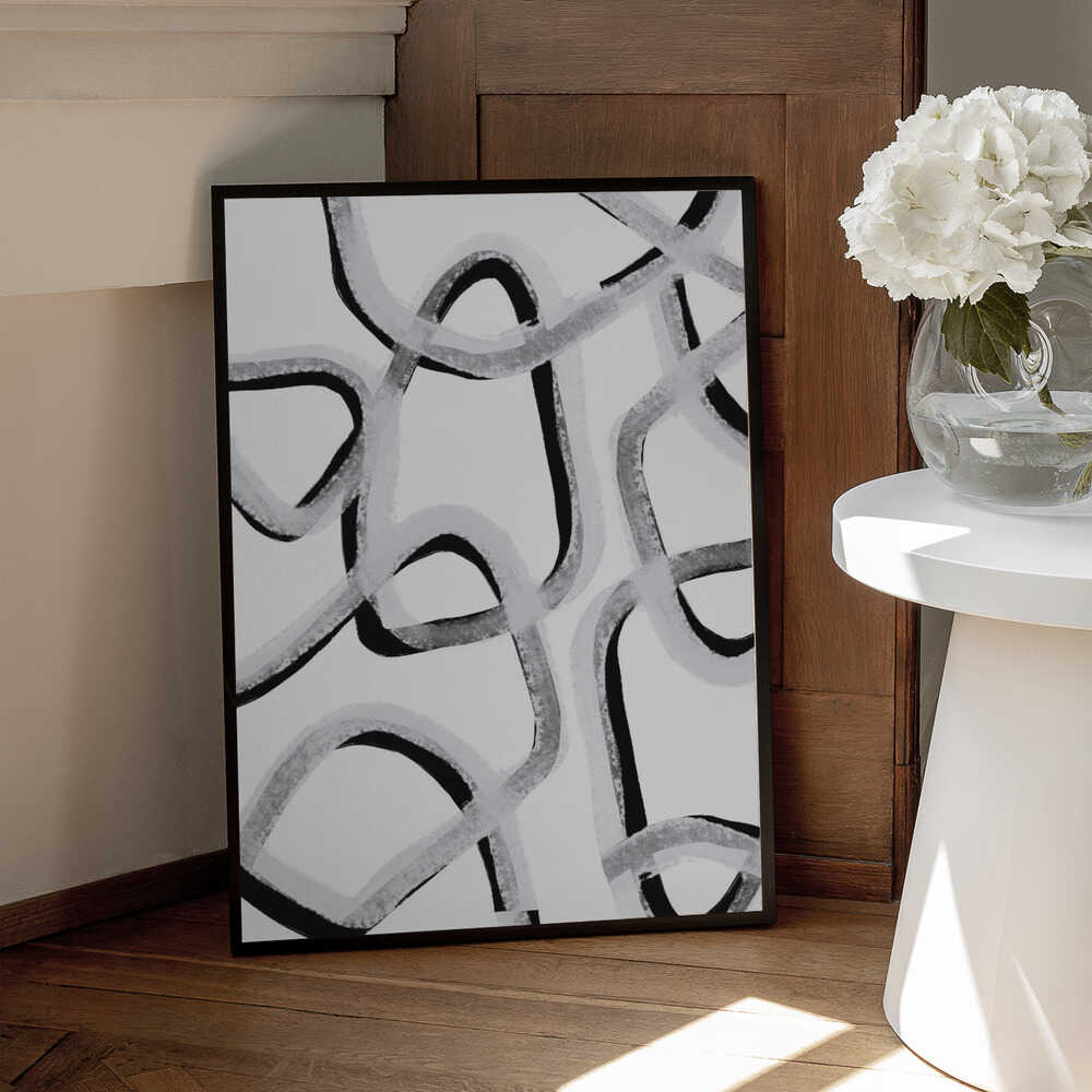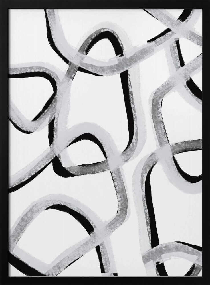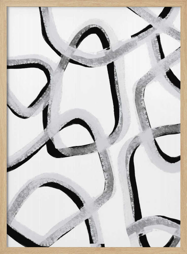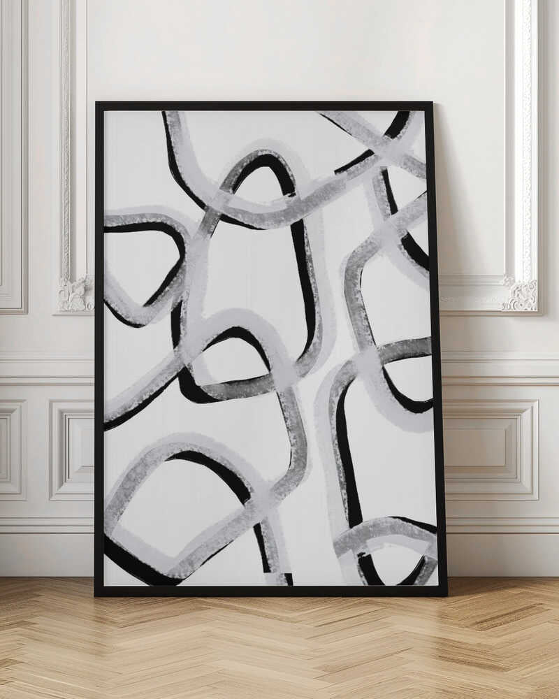 Tabloul înramat „Chaotic Lines Dance”, creat de uplusmestudio, este disponibil în mai multe dimensiuni, cu ramă neagră, albă sau din lemn natur. Se potrivește perfect în orice încăpere.