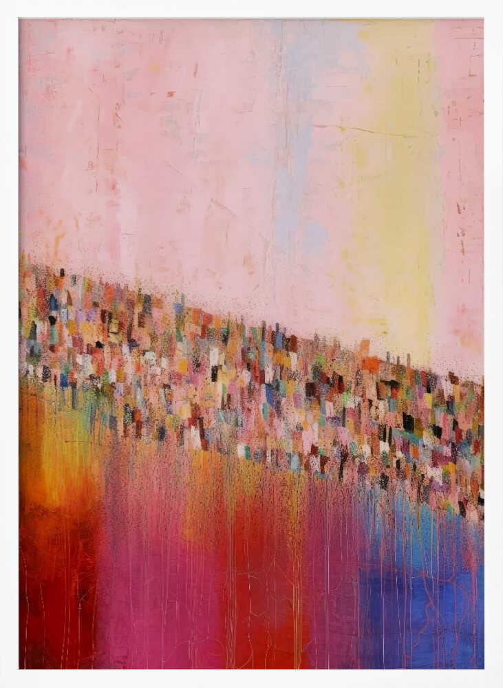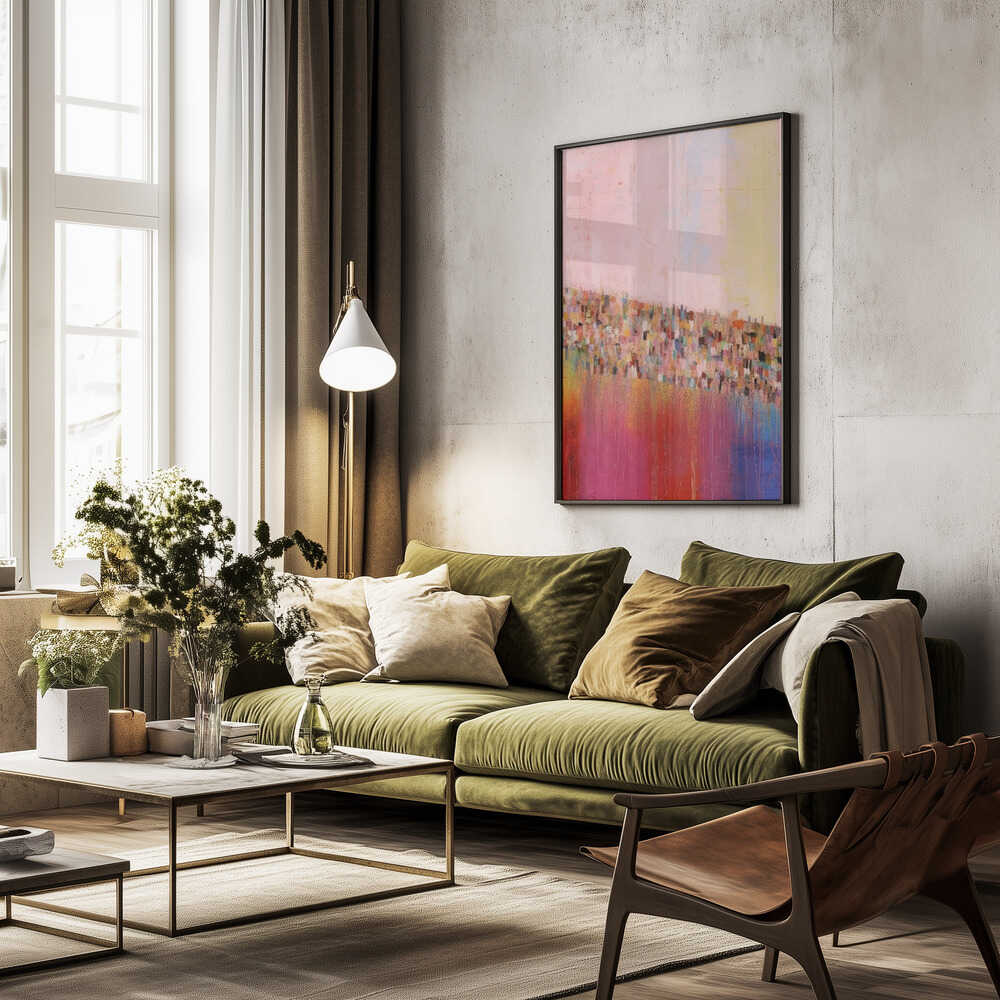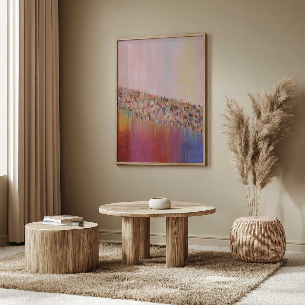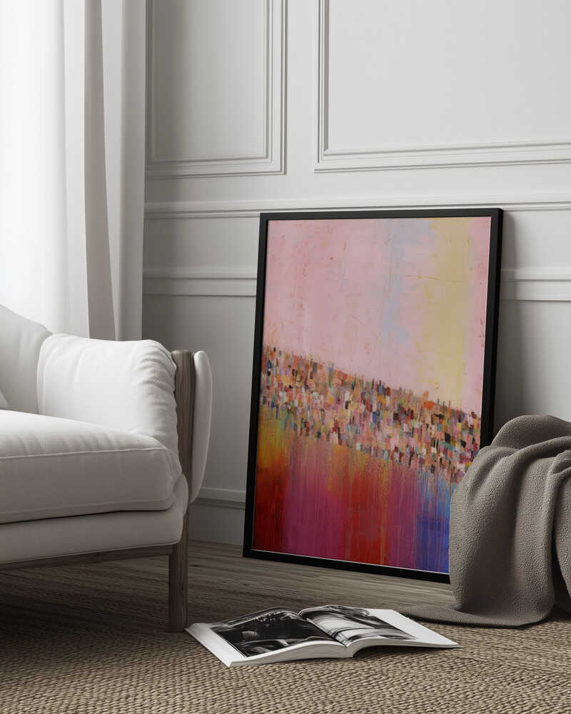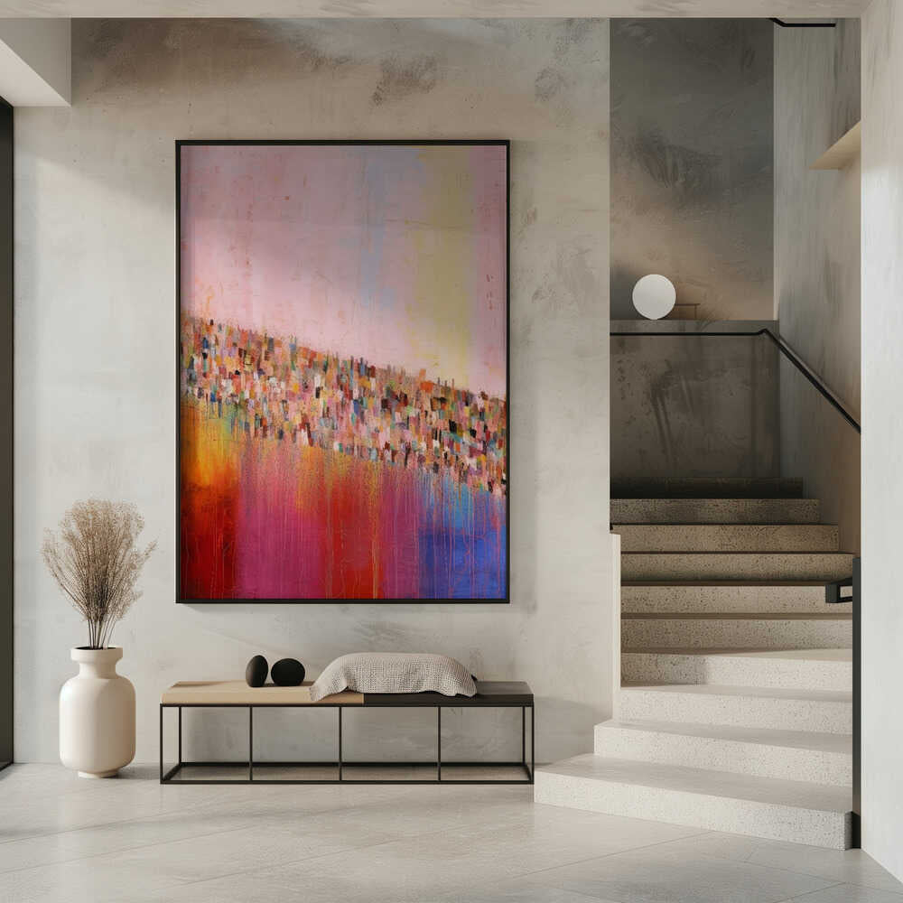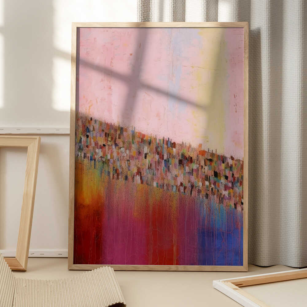Tabloul înramat „Colorful Cascade”, creat de Treechild, este disponibil în mai multe dimensiuni, cu ramă neagră, albă sau din lemn natur. Se potrivește perfect în orice încăpere.