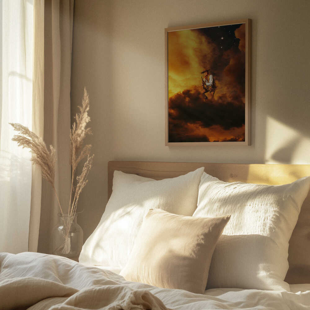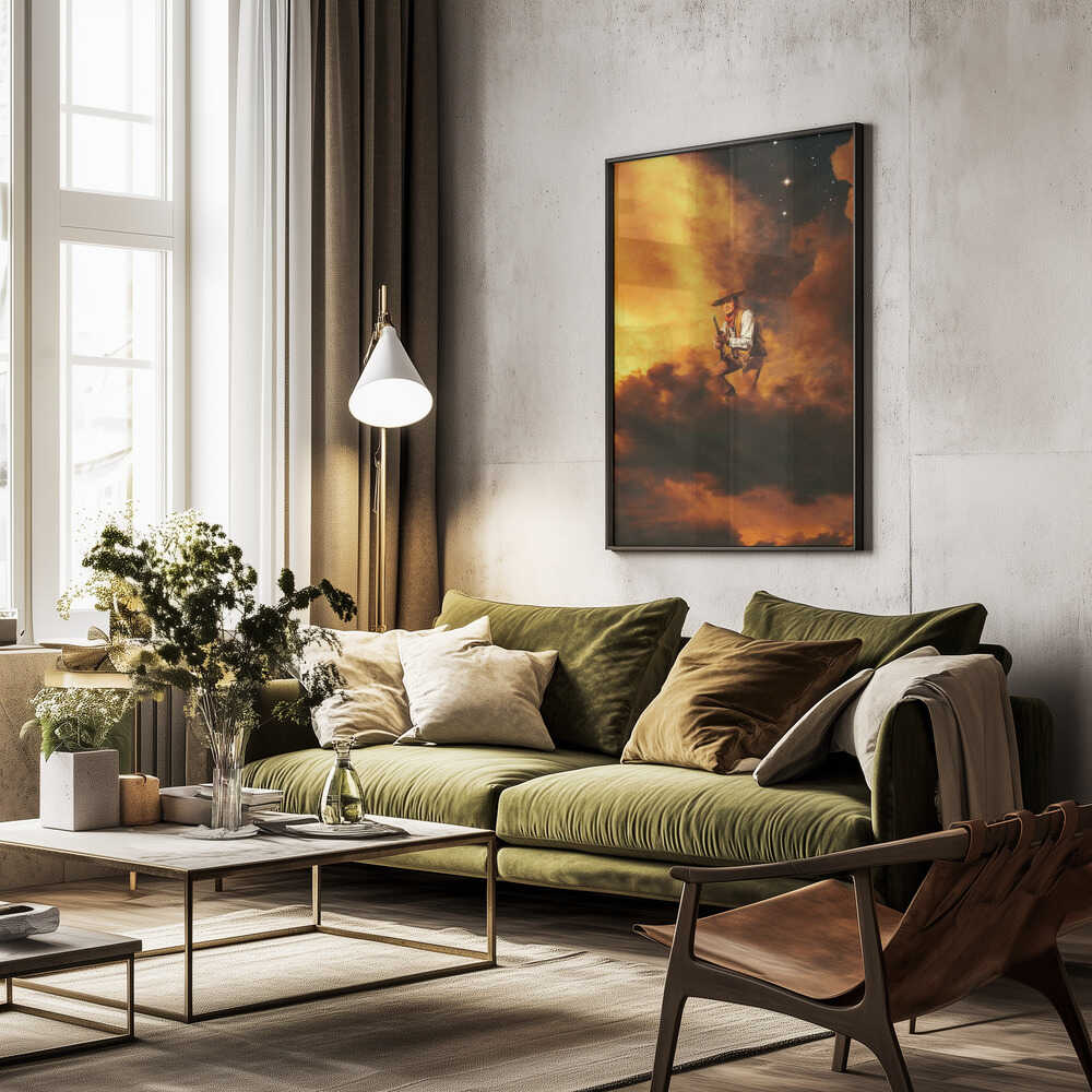 Tabloul înramat „Cowboy I”, creat de Taudalpoi, este disponibil în mai multe dimensiuni, cu ramă neagră, albă sau din lemn natur. Se potrivește perfect în orice încăpere.