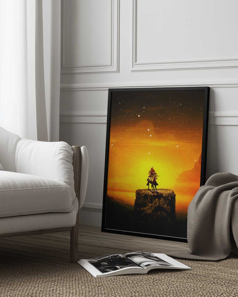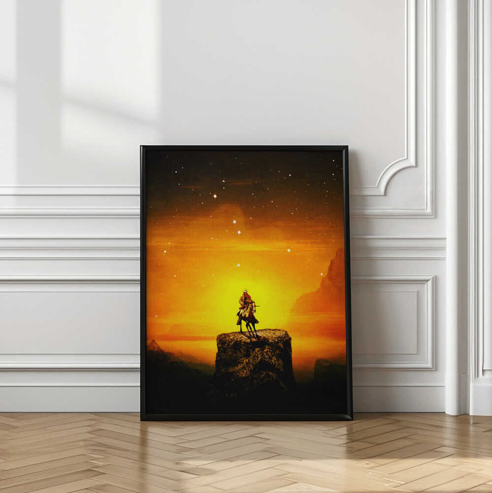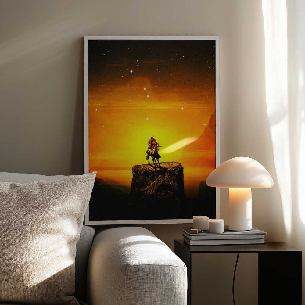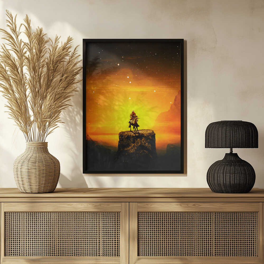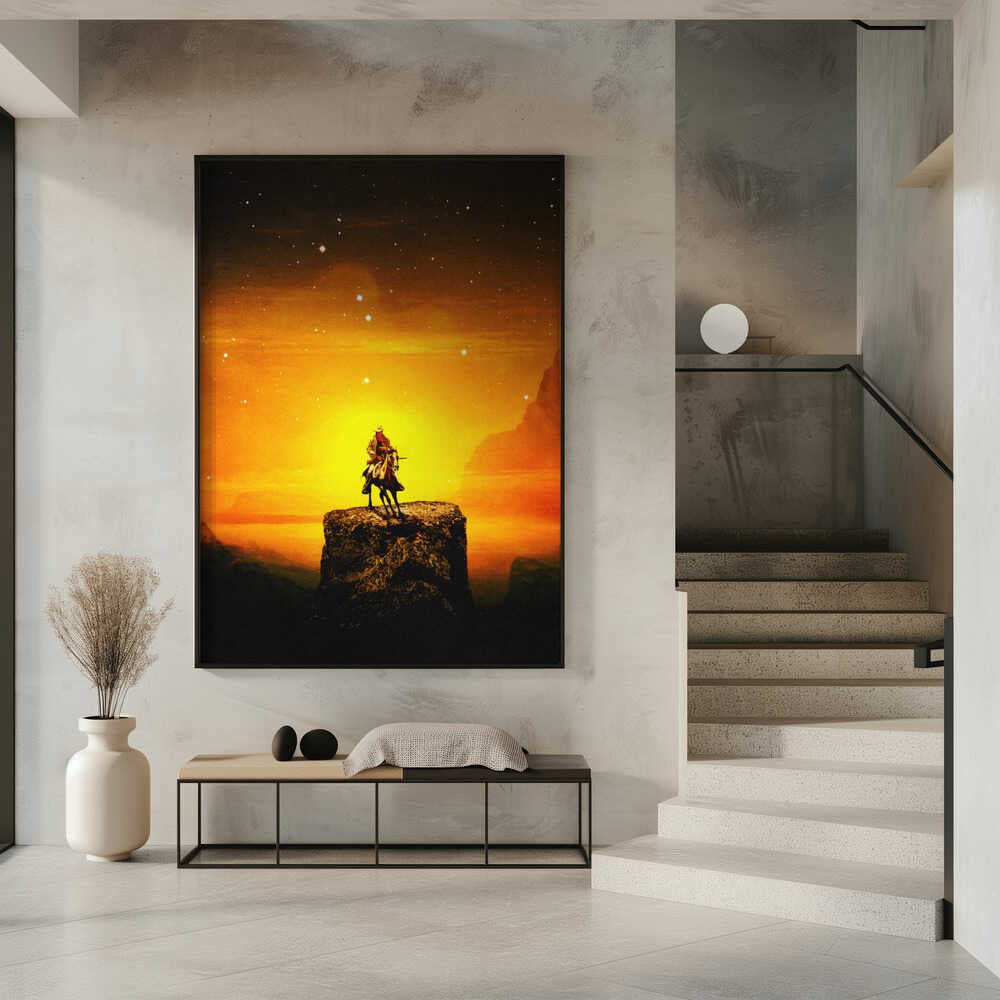Tabloul înramat „Cowboy III”, creat de Taudalpoi, este disponibil în mai multe dimensiuni, cu ramă neagră, albă sau din lemn natur. Se potrivește perfect în orice încăpere.