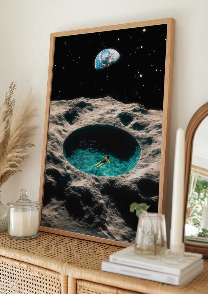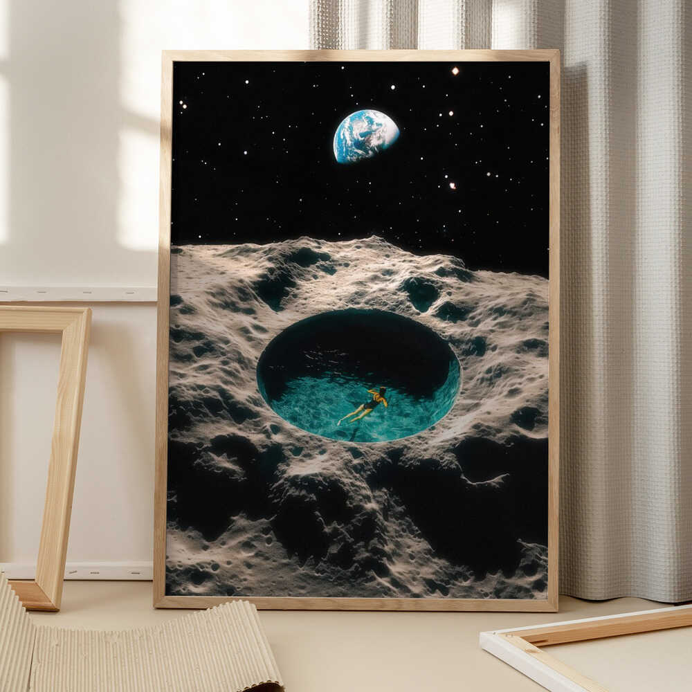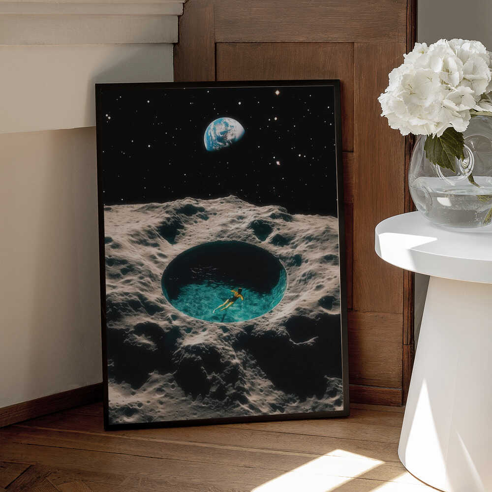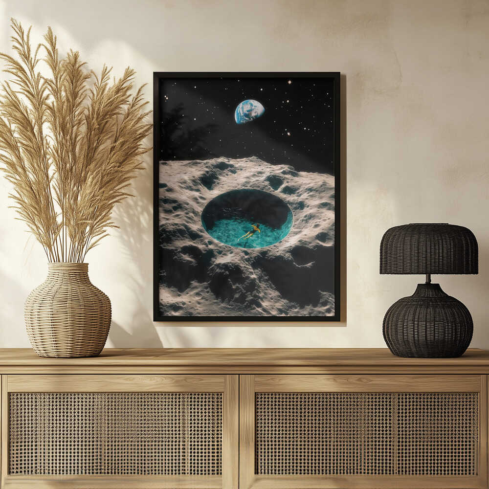 Tabloul înramat „Crater Pond”, creat de Taudalpoi, este disponibil în mai multe dimensiuni, cu ramă neagră, albă sau din lemn natur. Se potrivește perfect în orice încăpere.