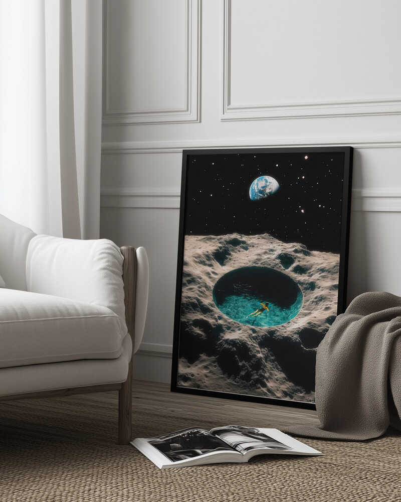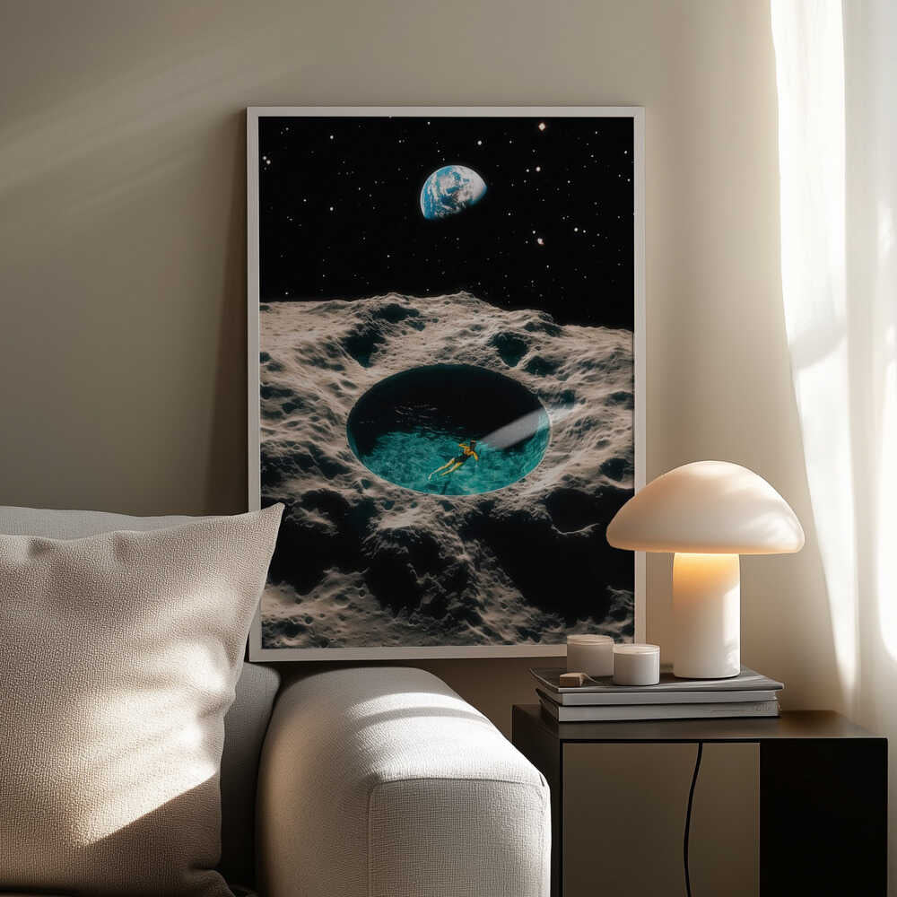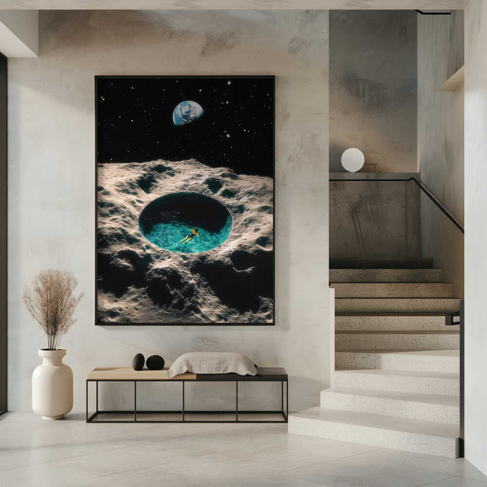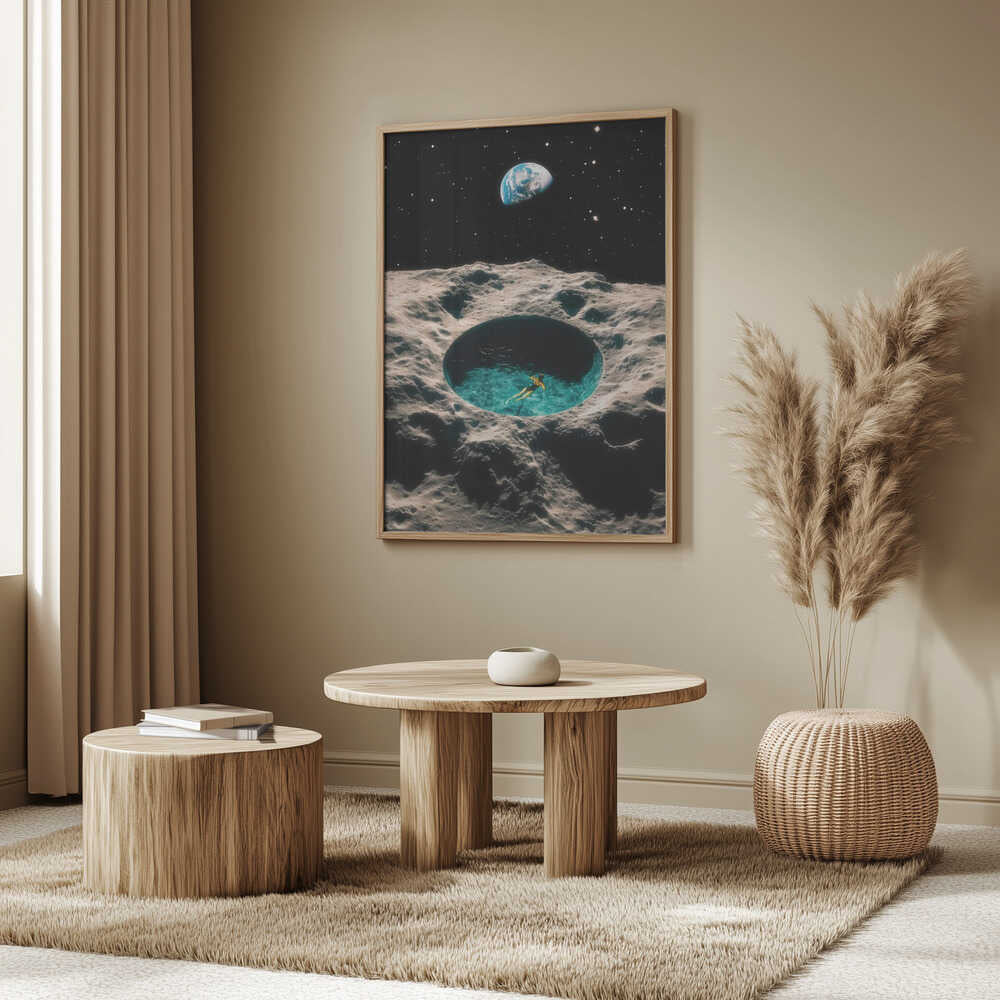 Tabloul înramat „Crater Pond”, creat de Taudalpoi, este disponibil în mai multe dimensiuni, cu ramă neagră, albă sau din lemn natur. Se potrivește perfect în orice încăpere.