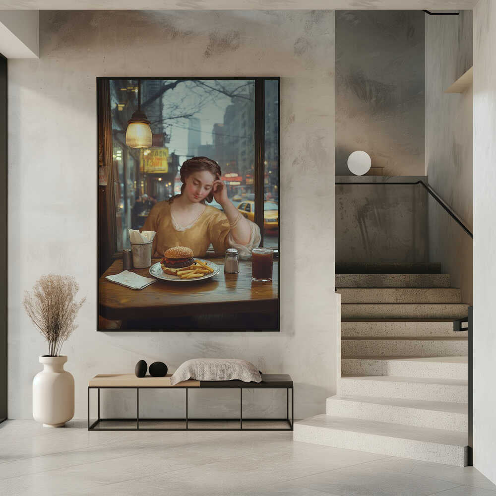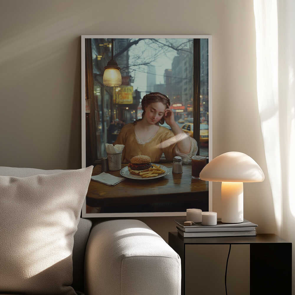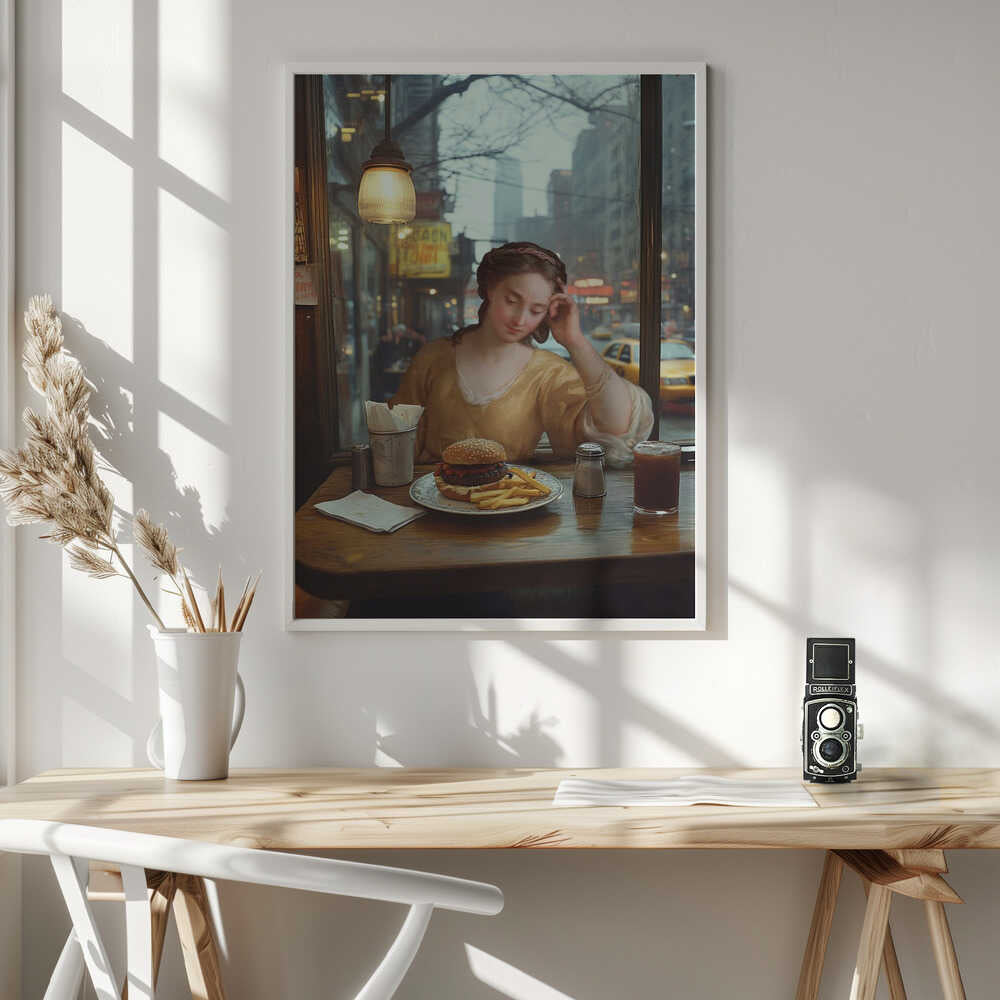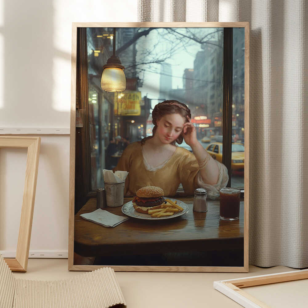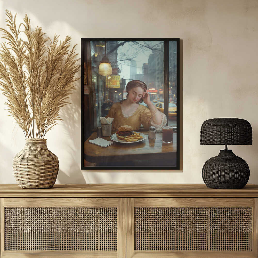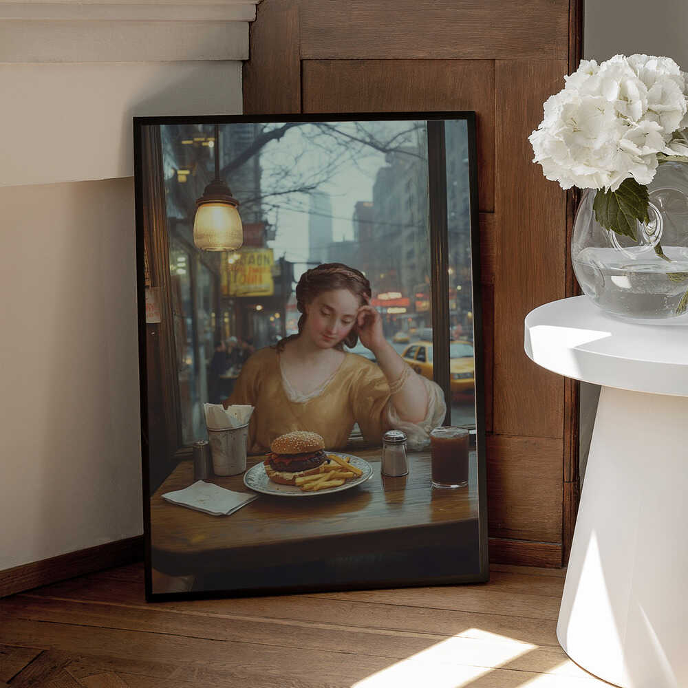 Tabloul înramat „Diner disappointment”, creat de Dikhotomy, este disponibil în mai multe dimensiuni, cu ramă neagră, albă sau din lemn natur. Se potrivește perfect în orice încăpere.