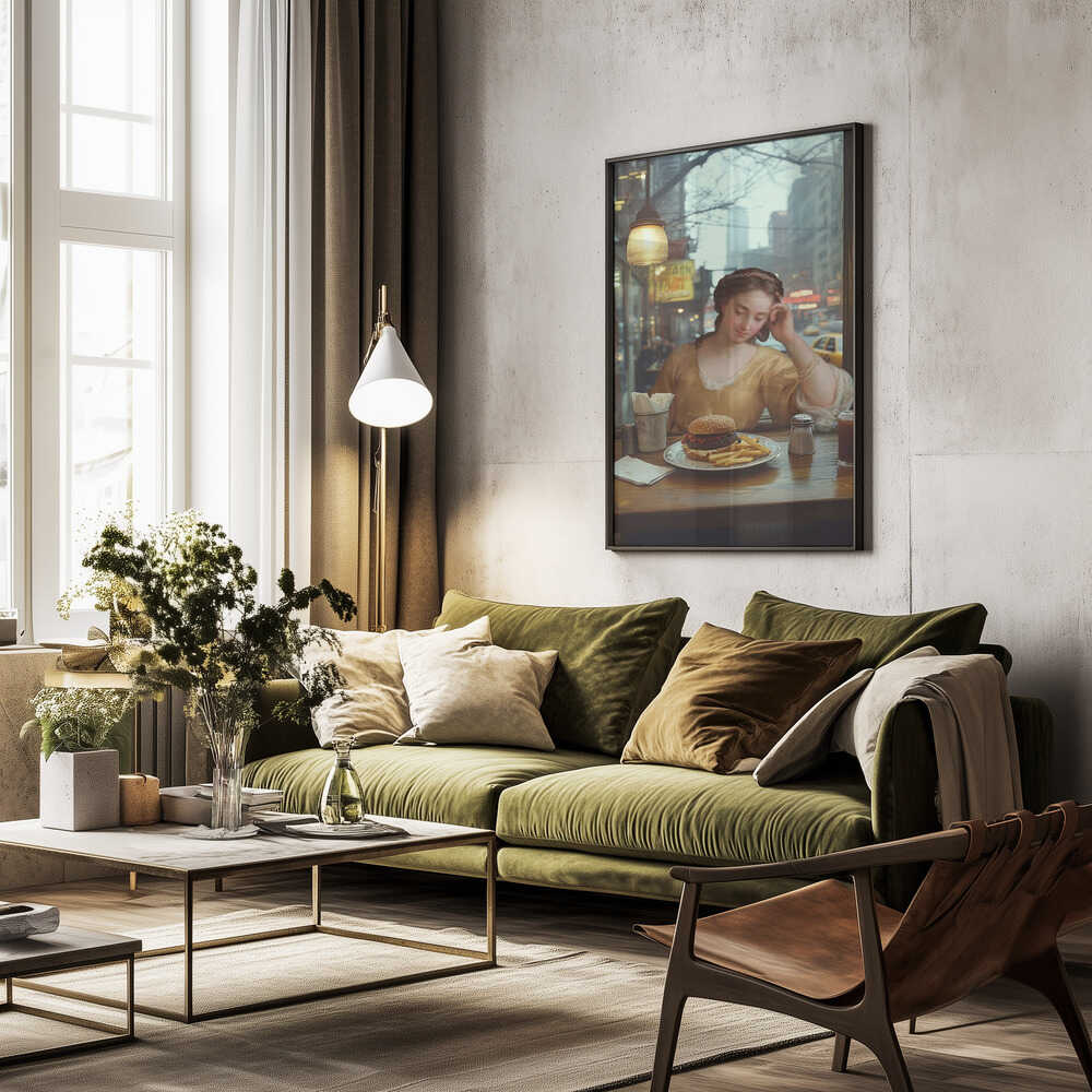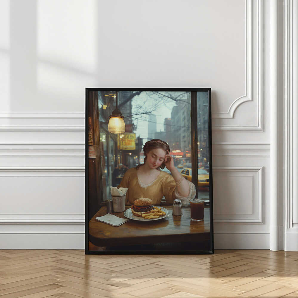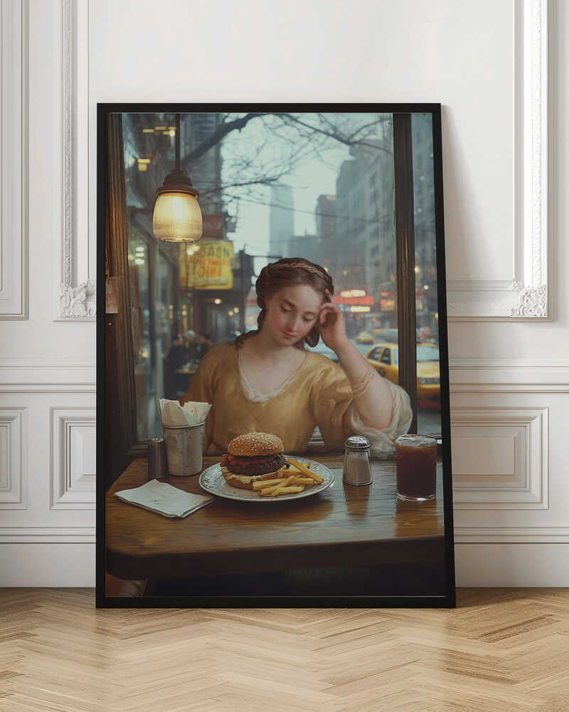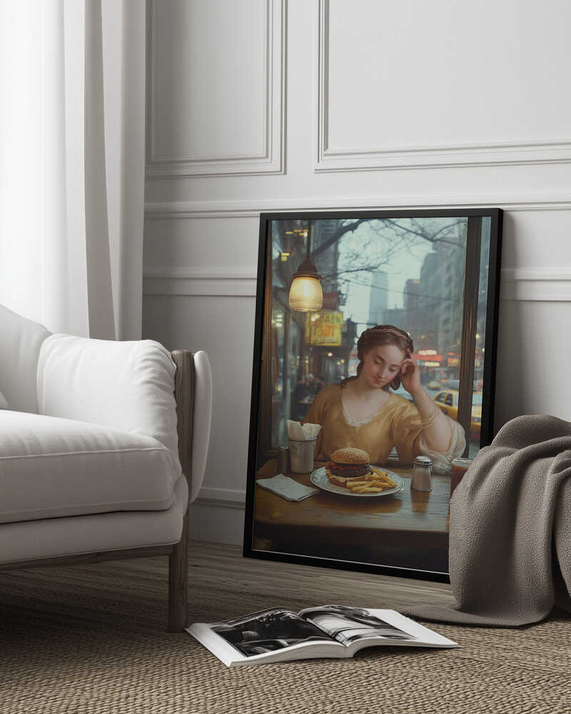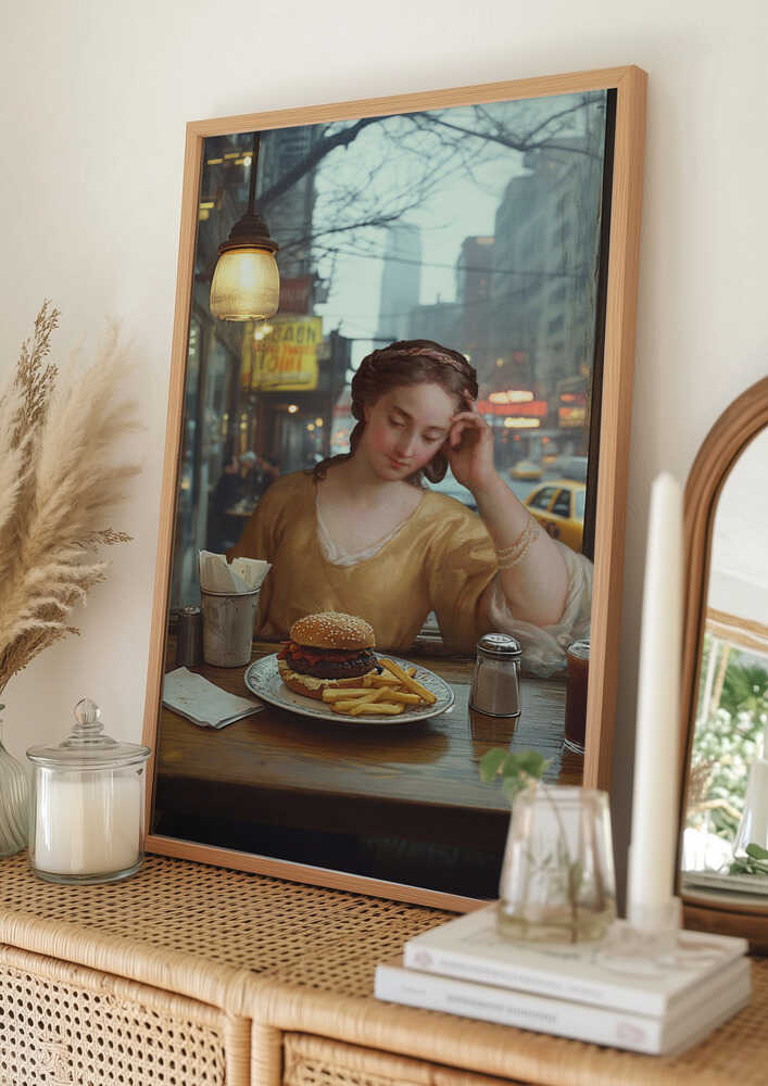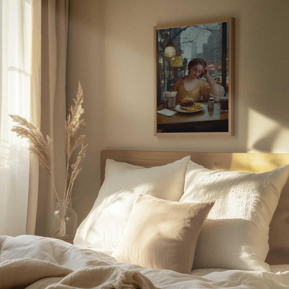 Tabloul înramat „Diner disappointment”, creat de Dikhotomy, este disponibil în mai multe dimensiuni, cu ramă neagră, albă sau din lemn natur. Se potrivește perfect în orice încăpere.