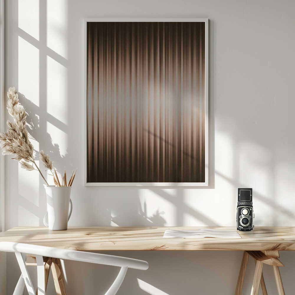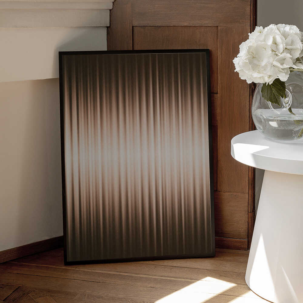 Tabloul înramat „Euphoria - Brown and White”, creat de Alma, este disponibil în mai multe dimensiuni, cu ramă neagră, albă sau din lemn natur. Se potrivește perfect în orice încăpere.