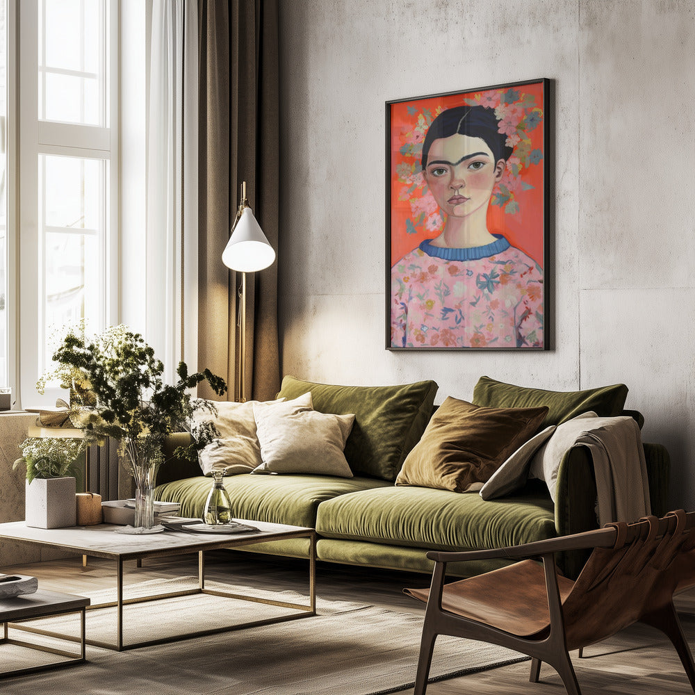 Tabloul înramat „Floral Portrait Aura”, creat de Treechild, este disponibil în mai multe dimensiuni, cu ramă neagră, albă sau din lemn natur. Se potrivește perfect în orice încăpere.