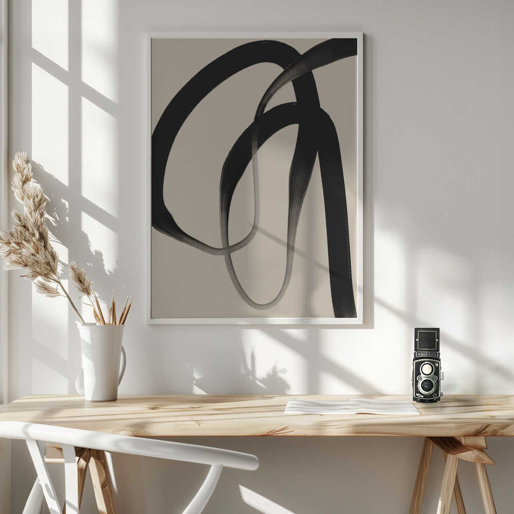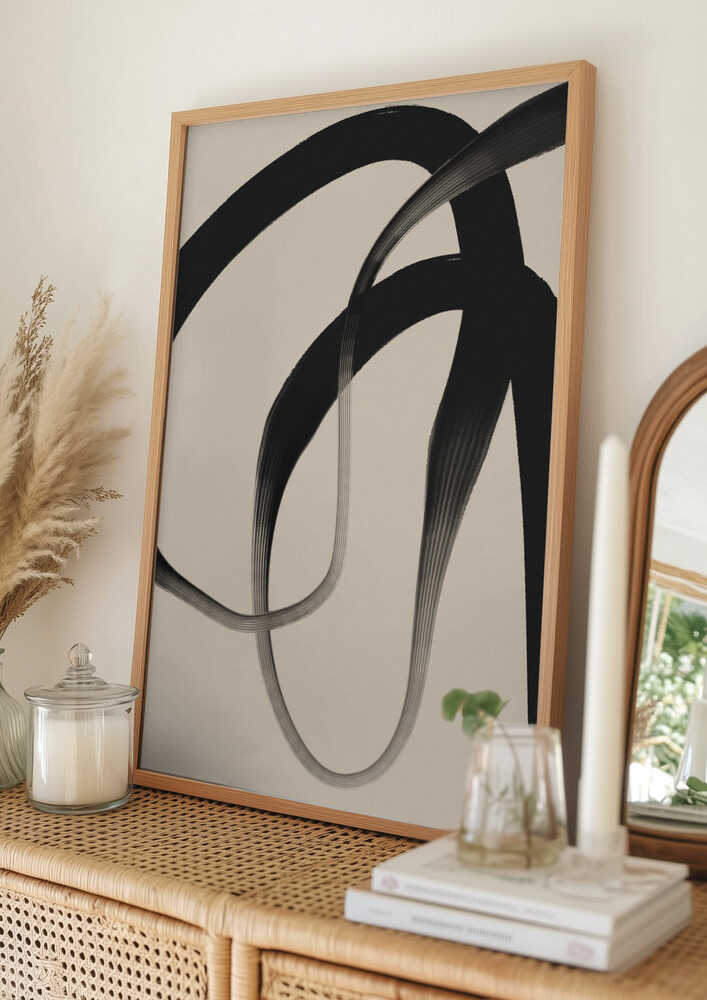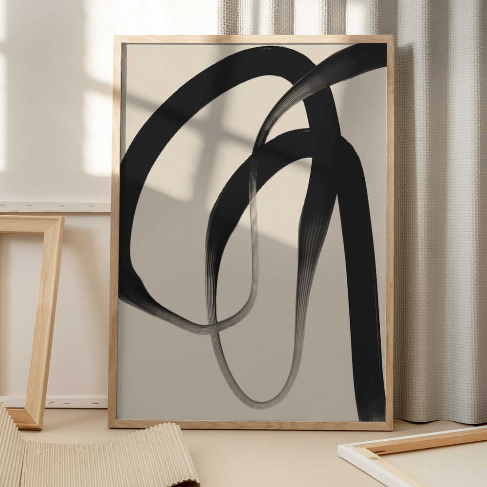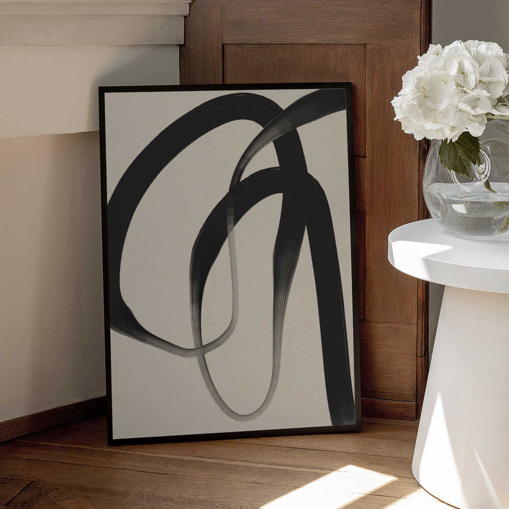 Tabloul înramat „Flowing Elegance”, creat de Treechild, este disponibil în mai multe dimensiuni, cu ramă neagră, albă sau din lemn natur. Se potrivește perfect în orice încăpere.