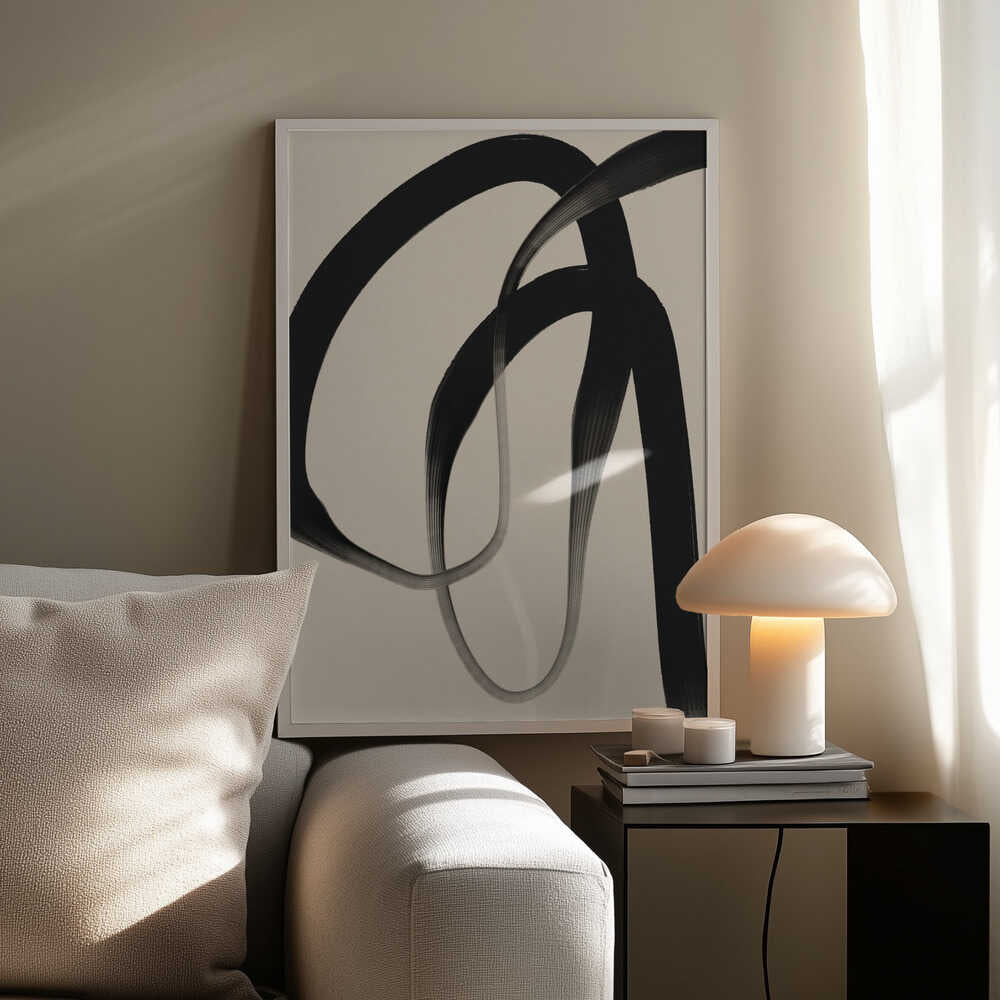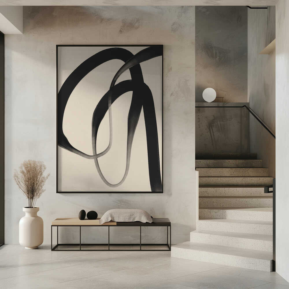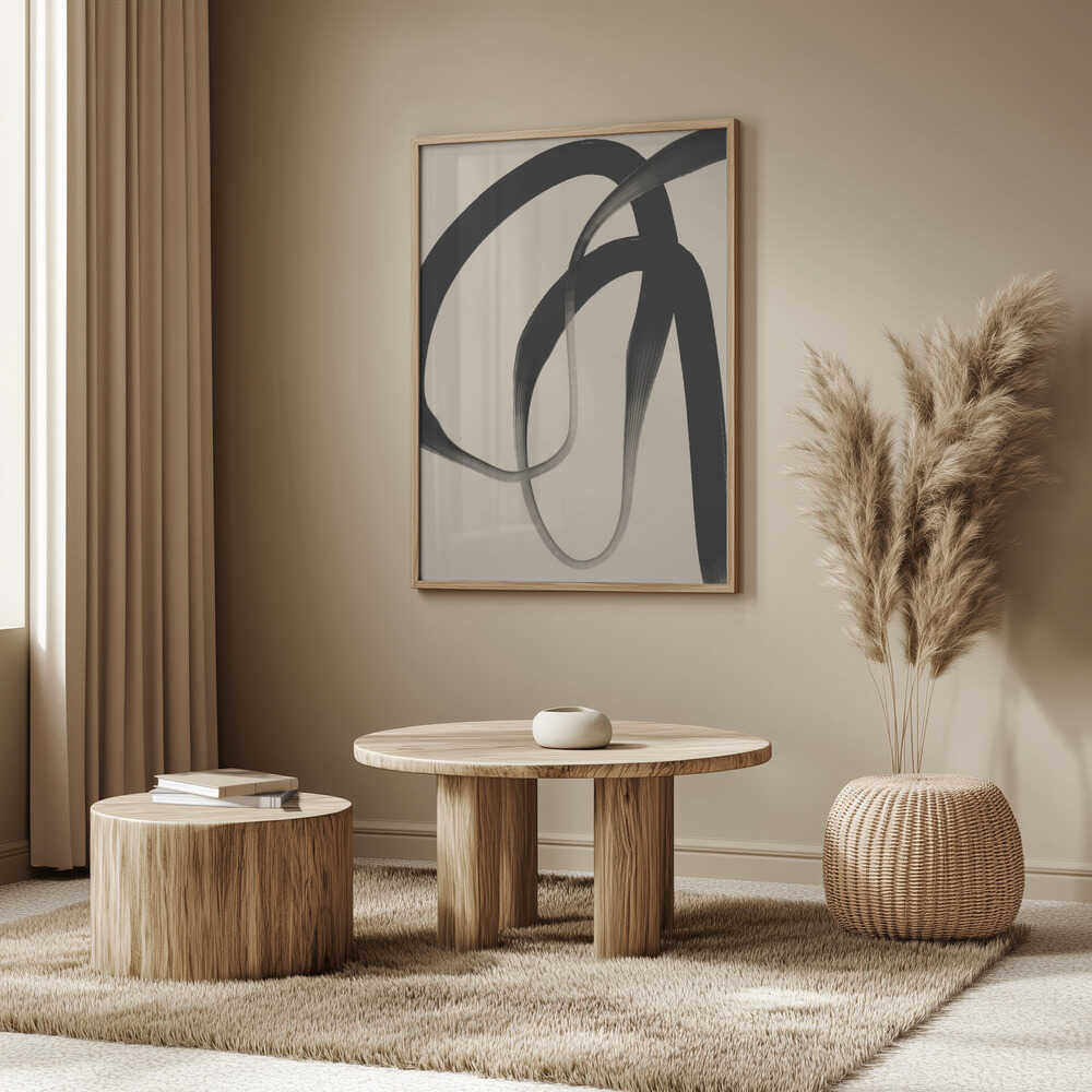 Tabloul înramat „Flowing Elegance”, creat de Treechild, este disponibil în mai multe dimensiuni, cu ramă neagră, albă sau din lemn natur. Se potrivește perfect în orice încăpere.