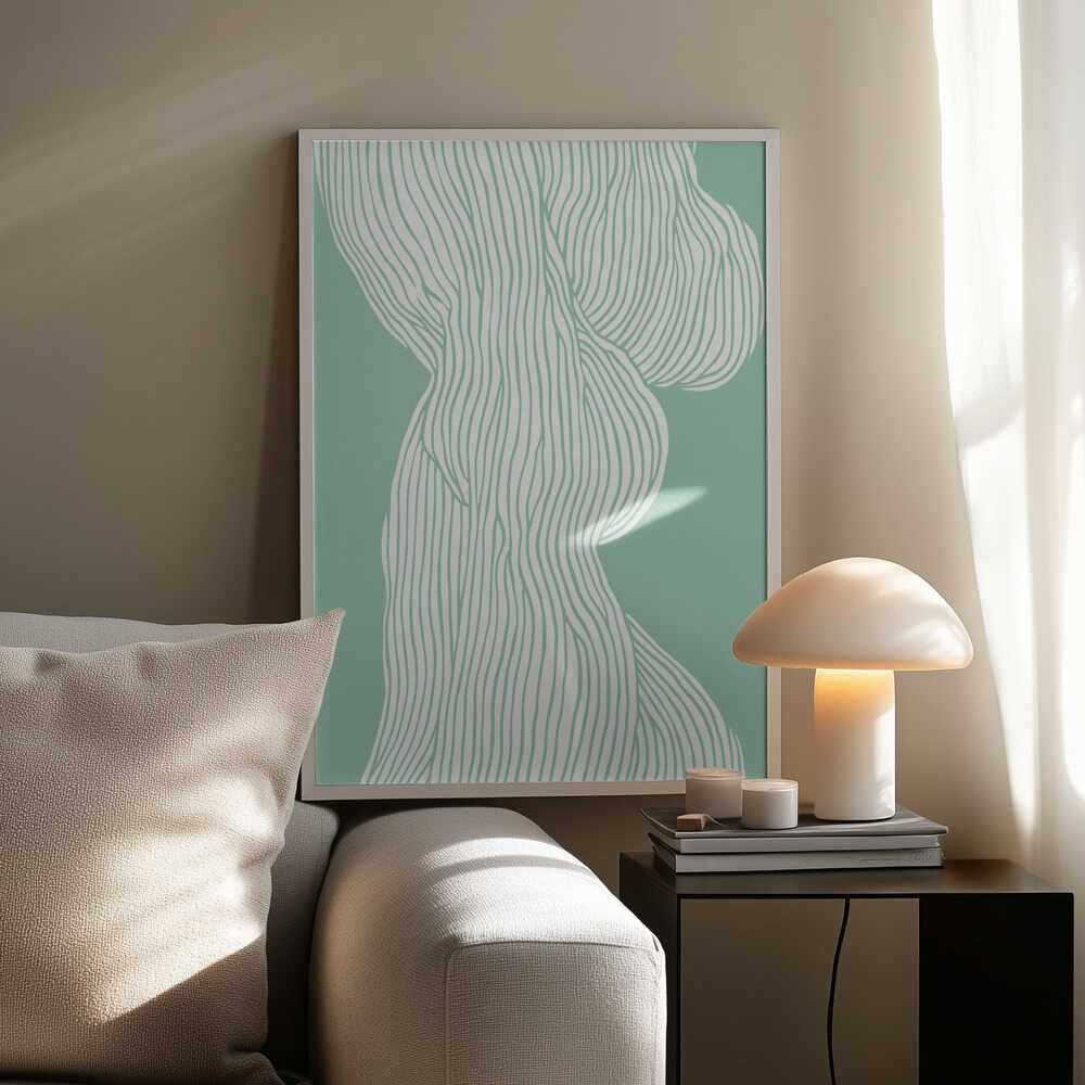 Tabloul înramat „Flowing Line Elegance”, creat de Treechild, este disponibil în mai multe dimensiuni, cu ramă neagră, albă sau din lemn natur. Se potrivește perfect în orice încăpere.