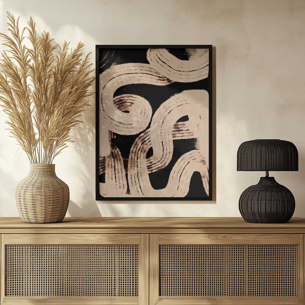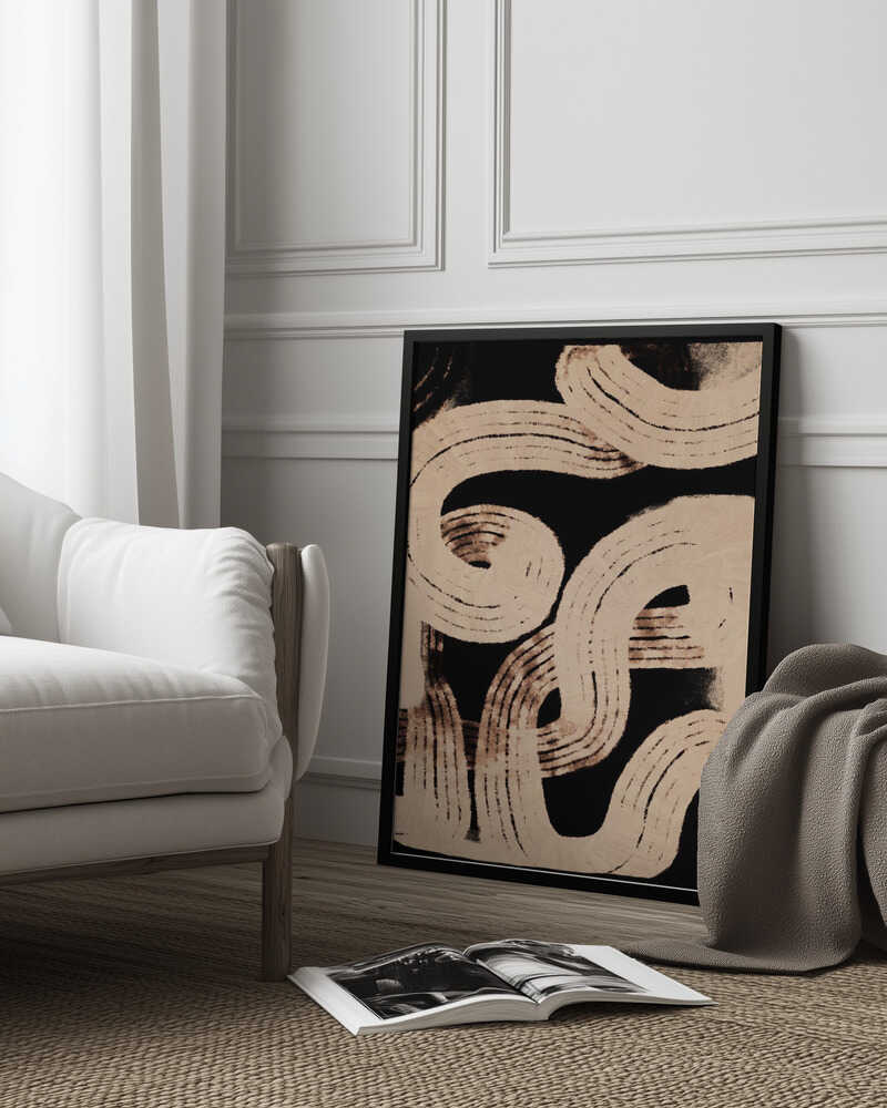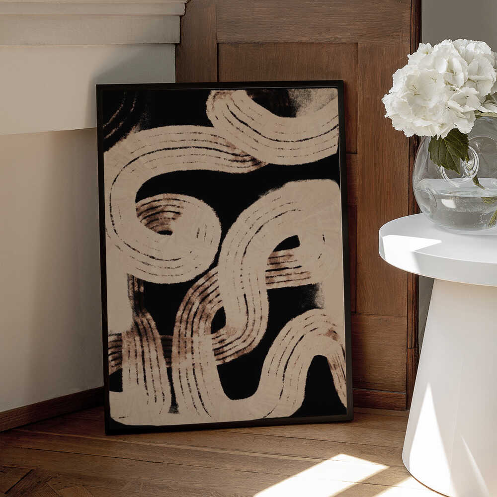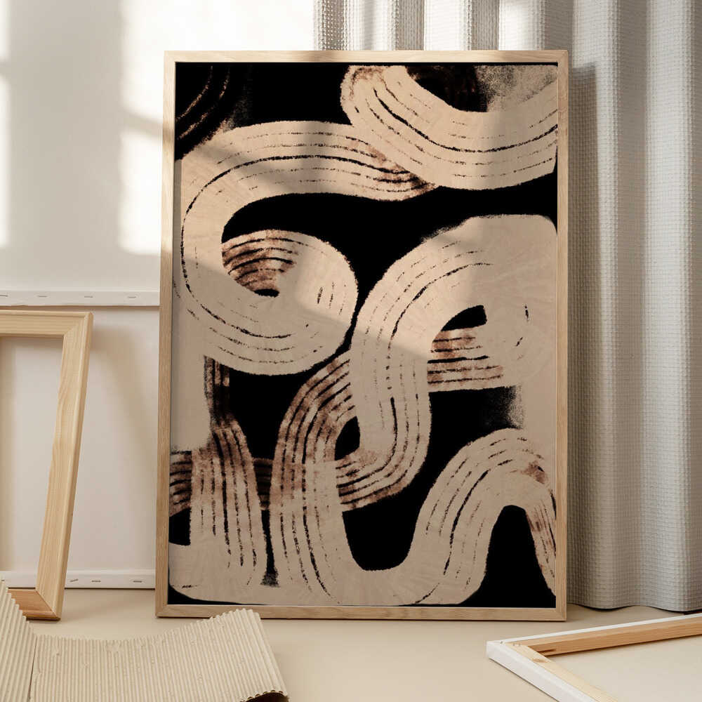 Tabloul înramat „Fluid Rhythms”, creat de Treechild, este disponibil în mai multe dimensiuni, cu ramă neagră, albă sau din lemn natur. Se potrivește perfect în orice încăpere.