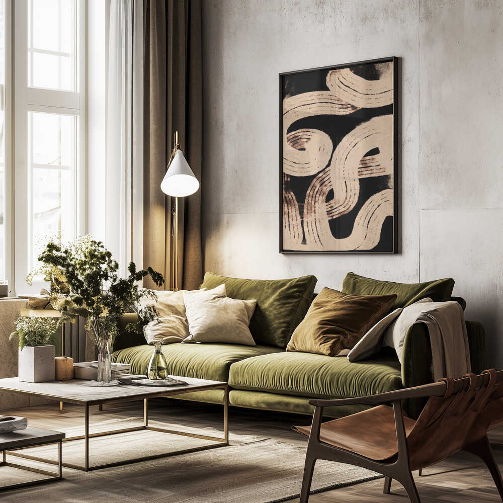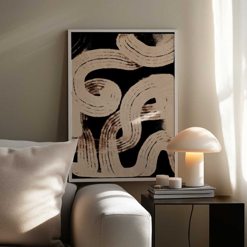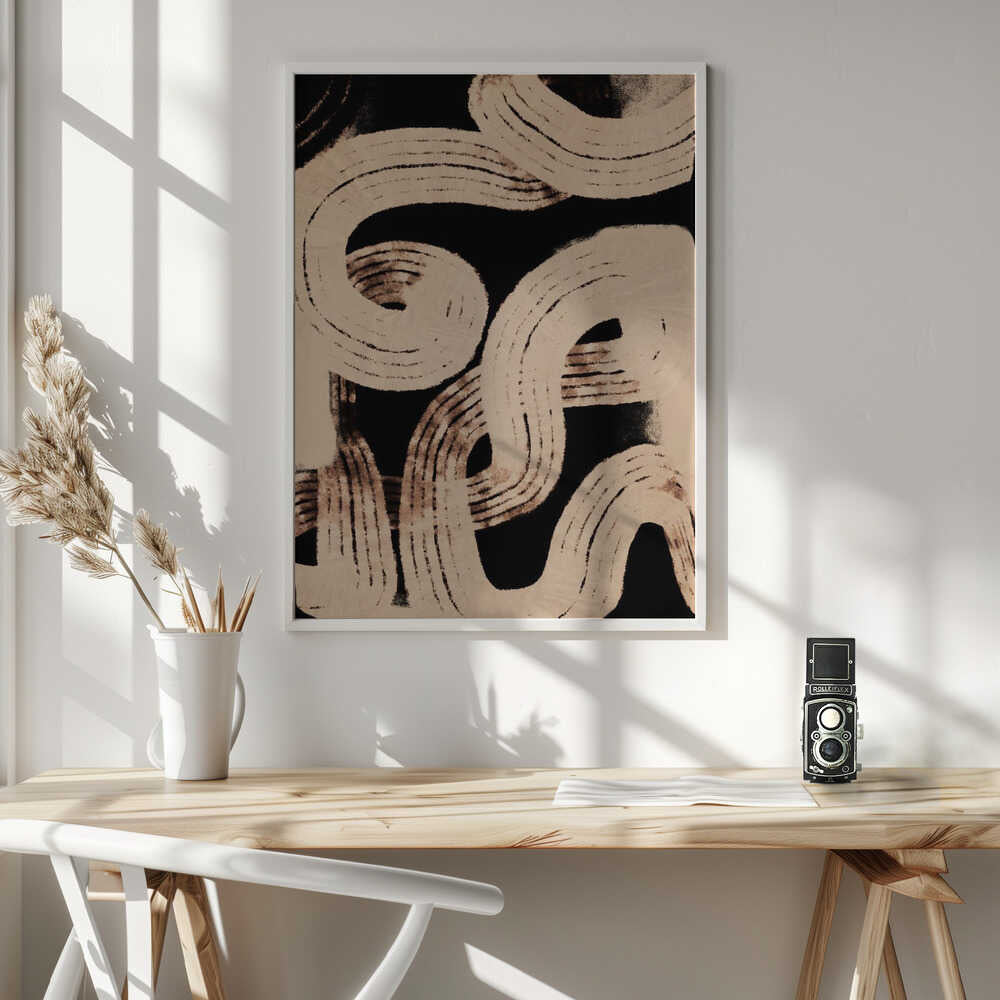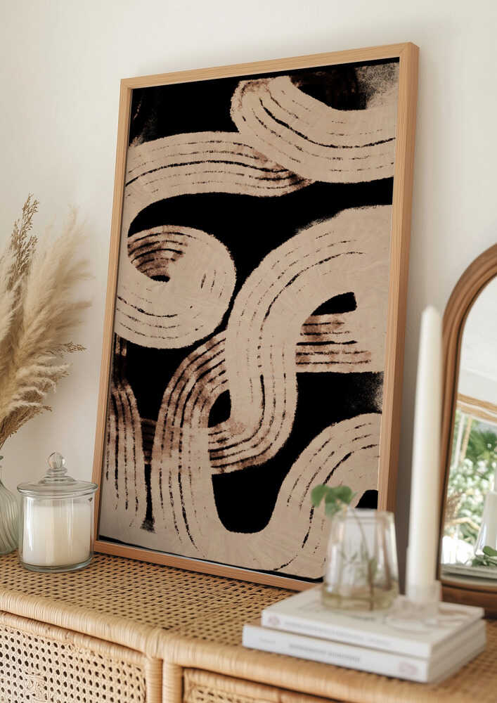 Tabloul înramat „Fluid Rhythms”, creat de Treechild, este disponibil în mai multe dimensiuni, cu ramă neagră, albă sau din lemn natur. Se potrivește perfect în orice încăpere.