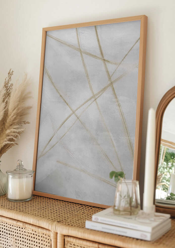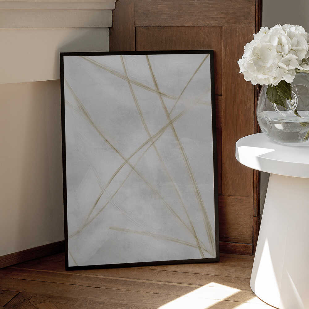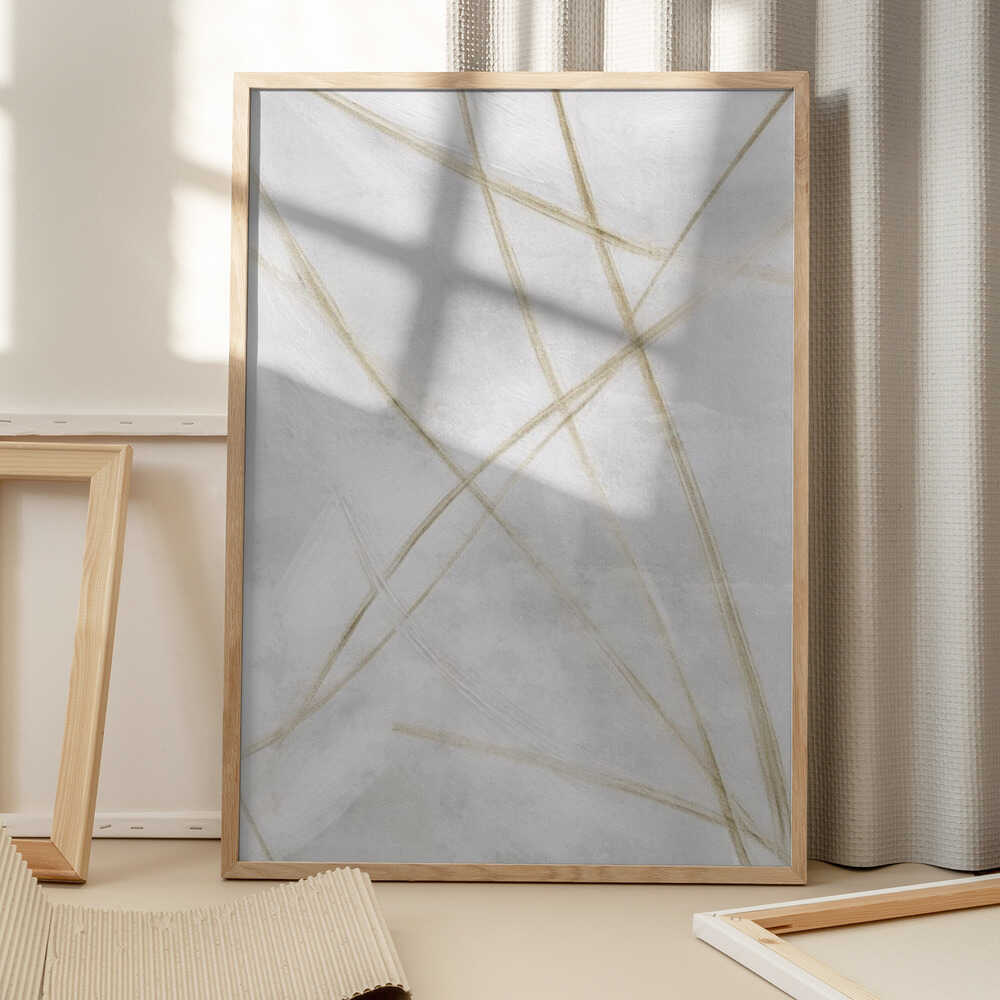 Tabloul înramat „Gestual #1”, creat de Alma, este disponibil în mai multe dimensiuni, cu ramă neagră, albă sau din lemn natur. Se potrivește perfect în orice încăpere.