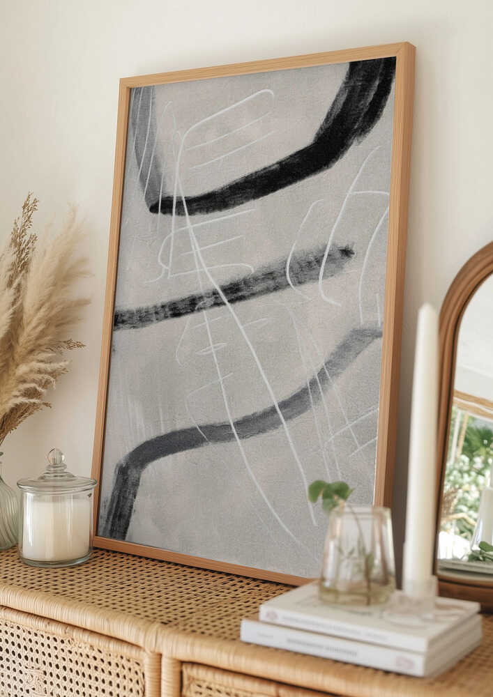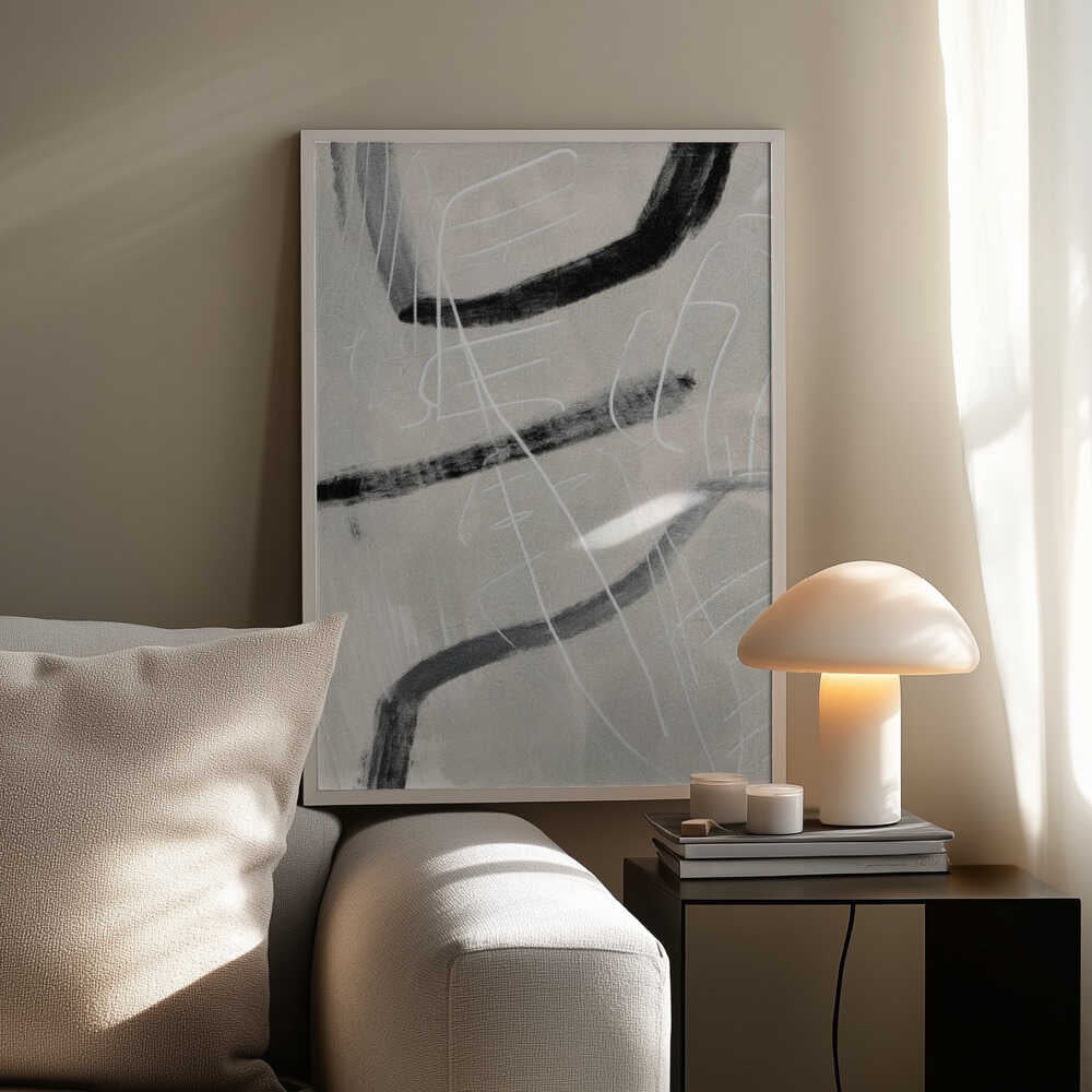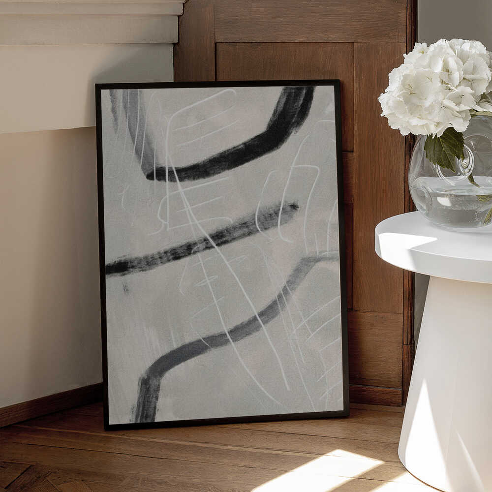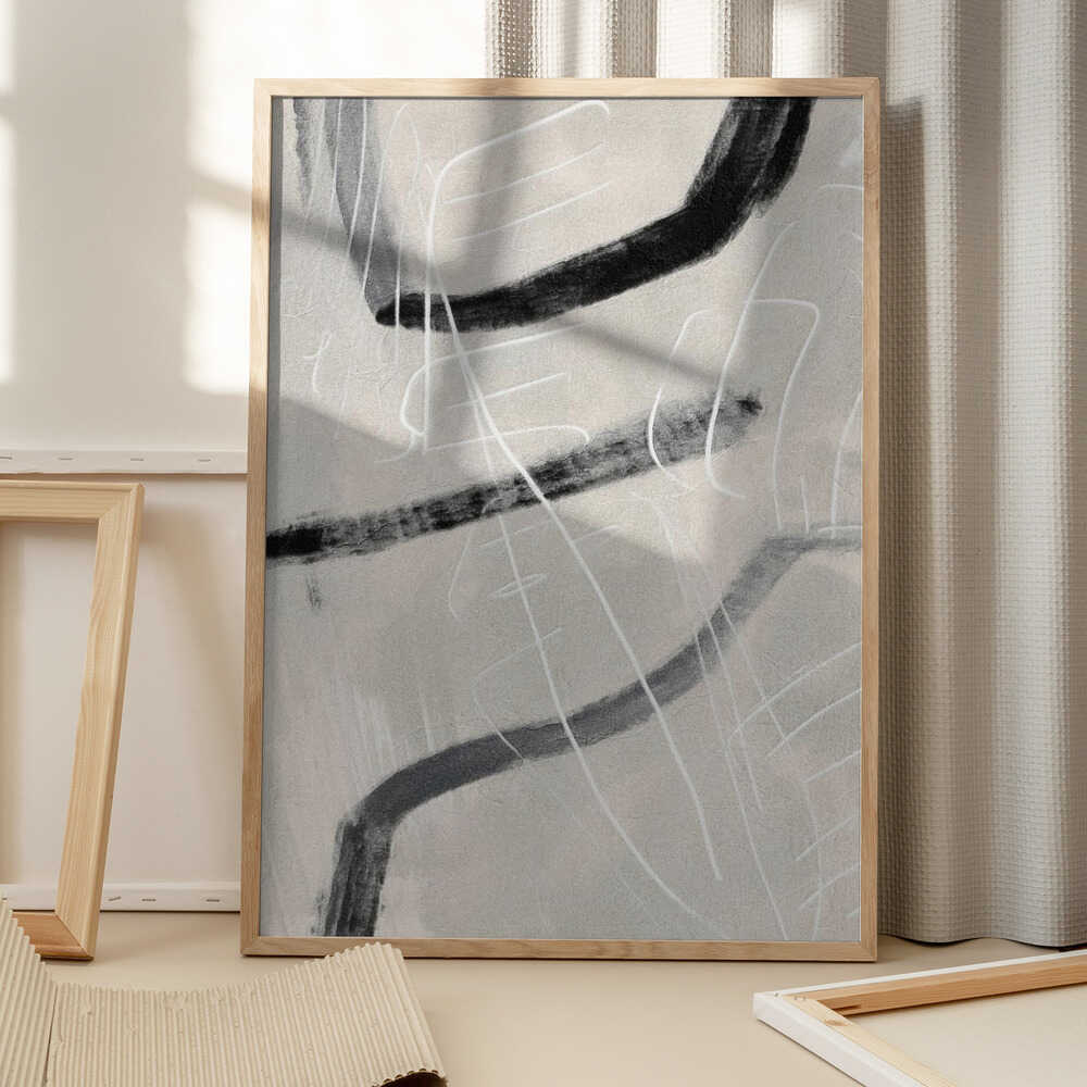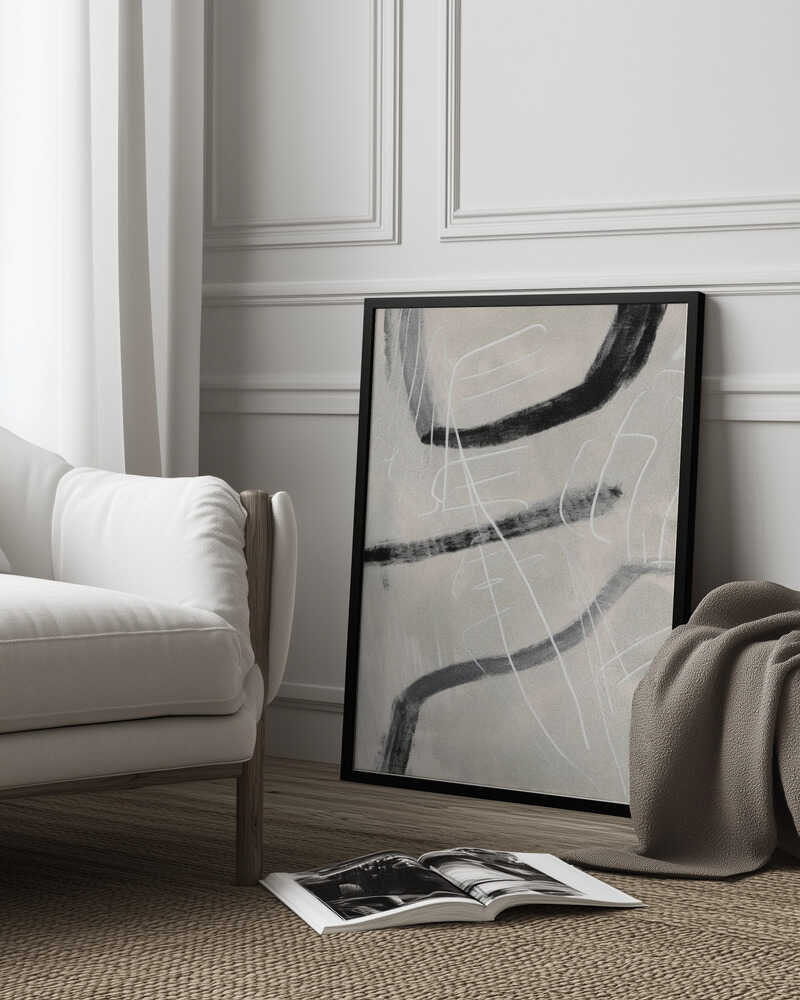 Tabloul înramat „Gestual #4”, creat de Alma, este disponibil în mai multe dimensiuni, cu ramă neagră, albă sau din lemn natur. Se potrivește perfect în orice încăpere.