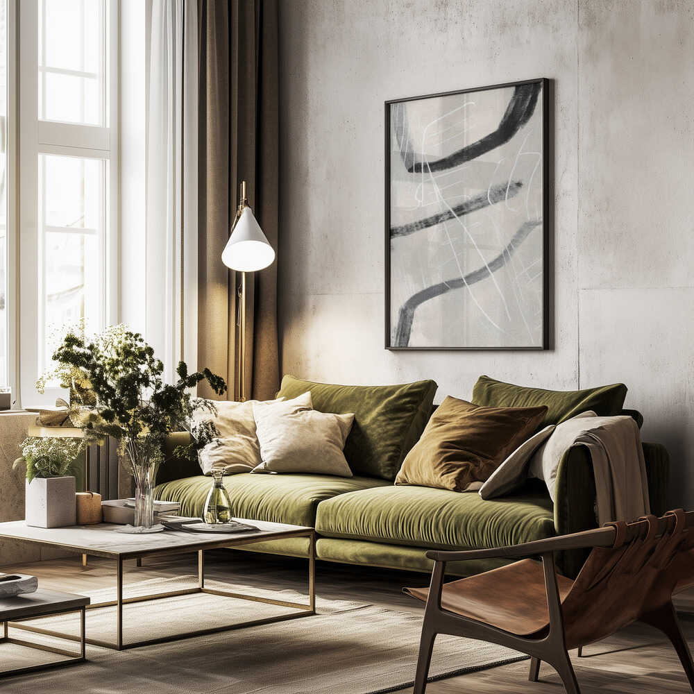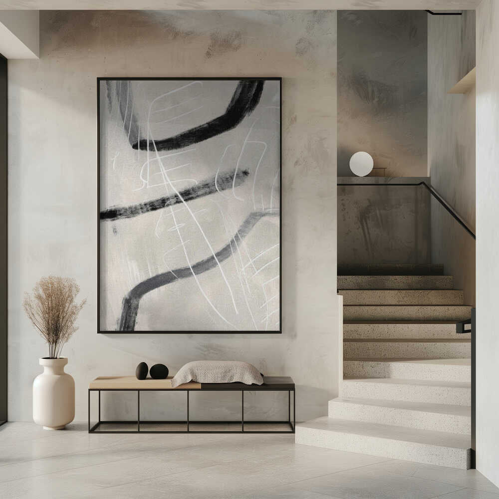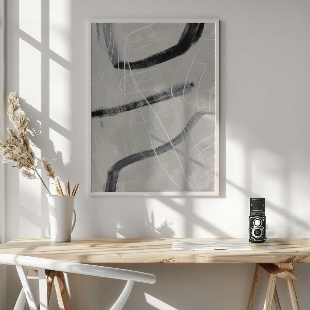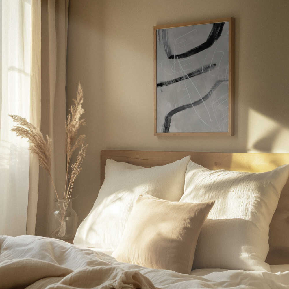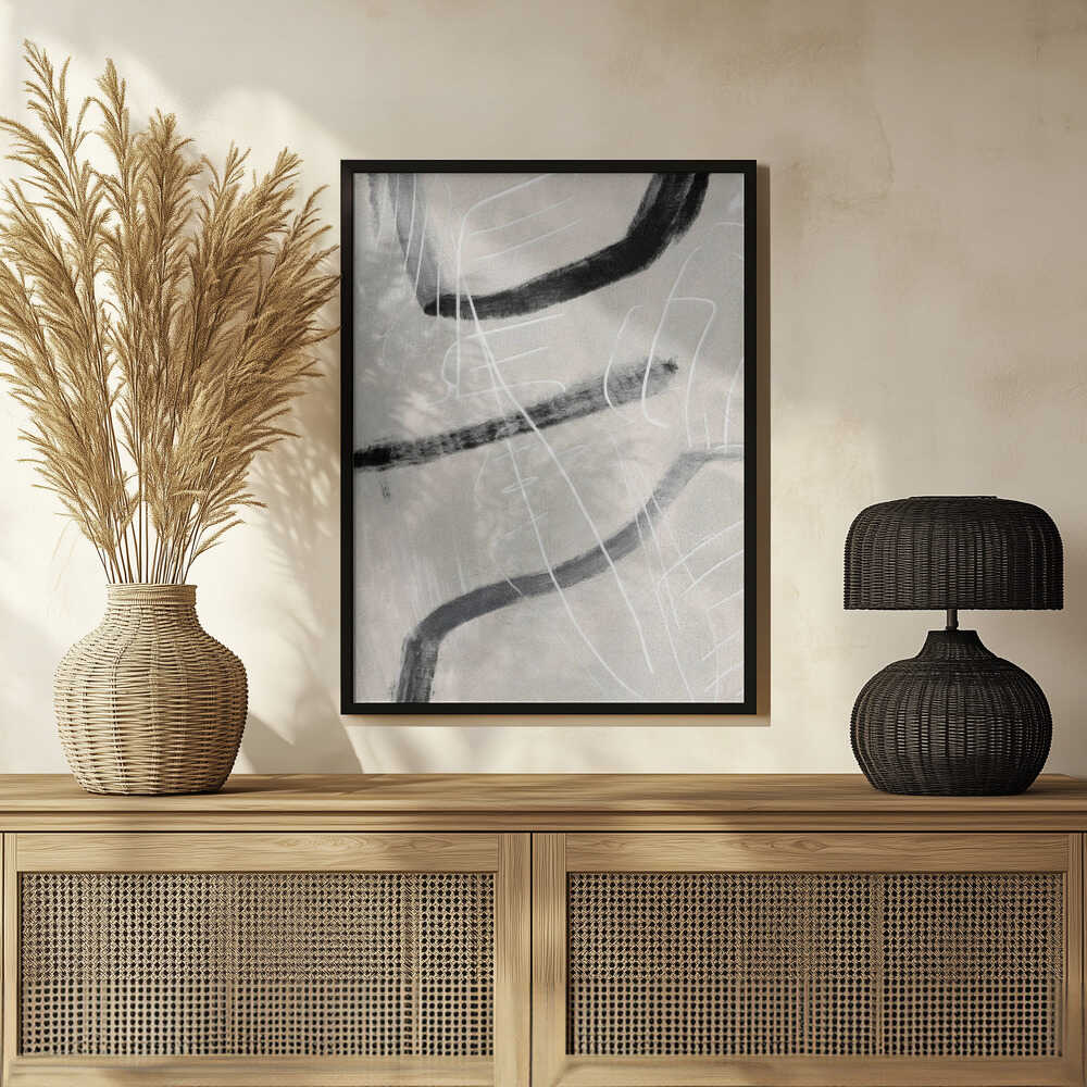 Tabloul înramat „Gestual #4”, creat de Alma, este disponibil în mai multe dimensiuni, cu ramă neagră, albă sau din lemn natur. Se potrivește perfect în orice încăpere.