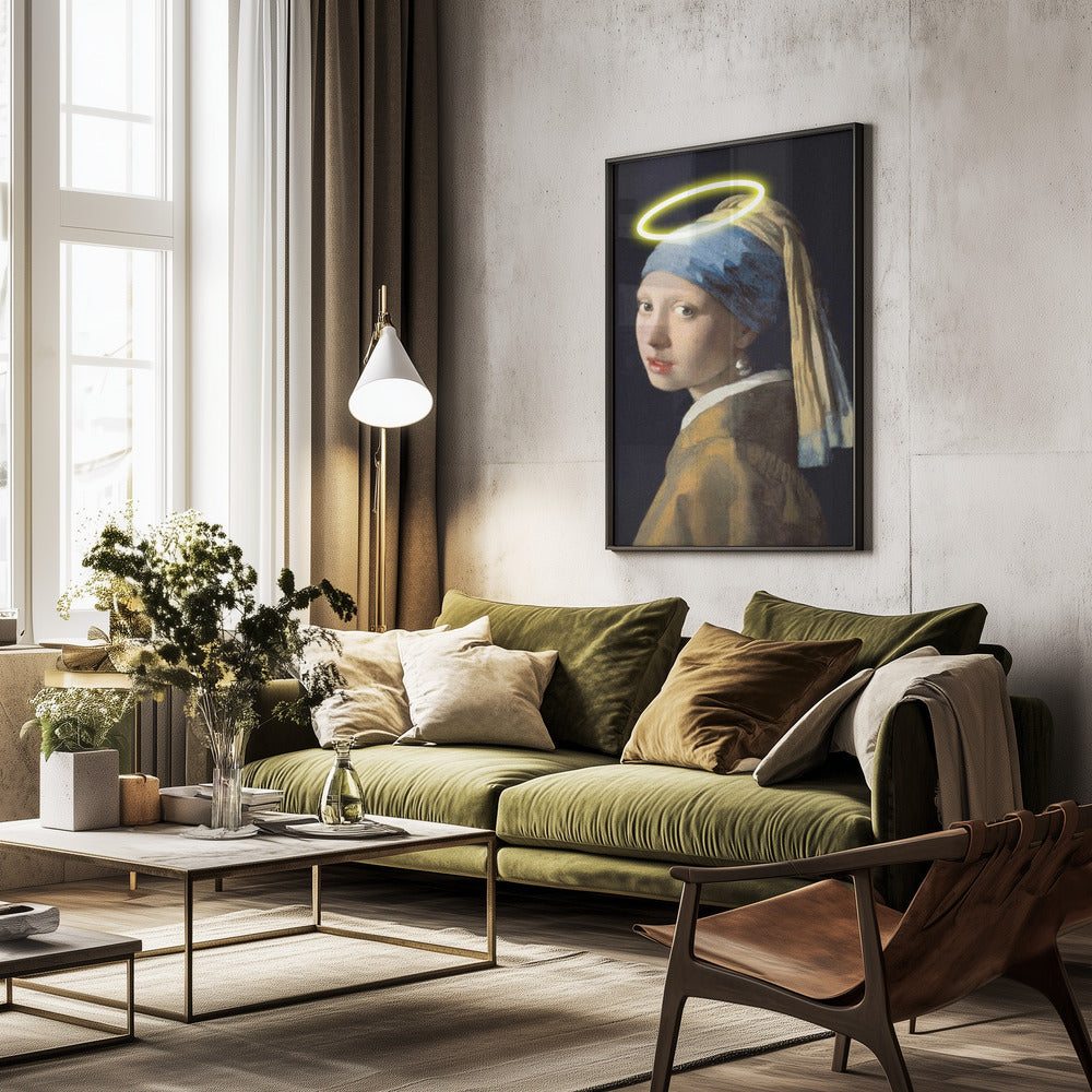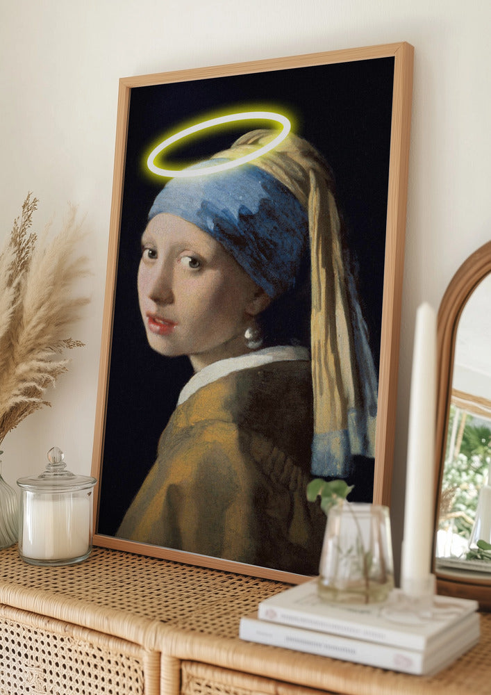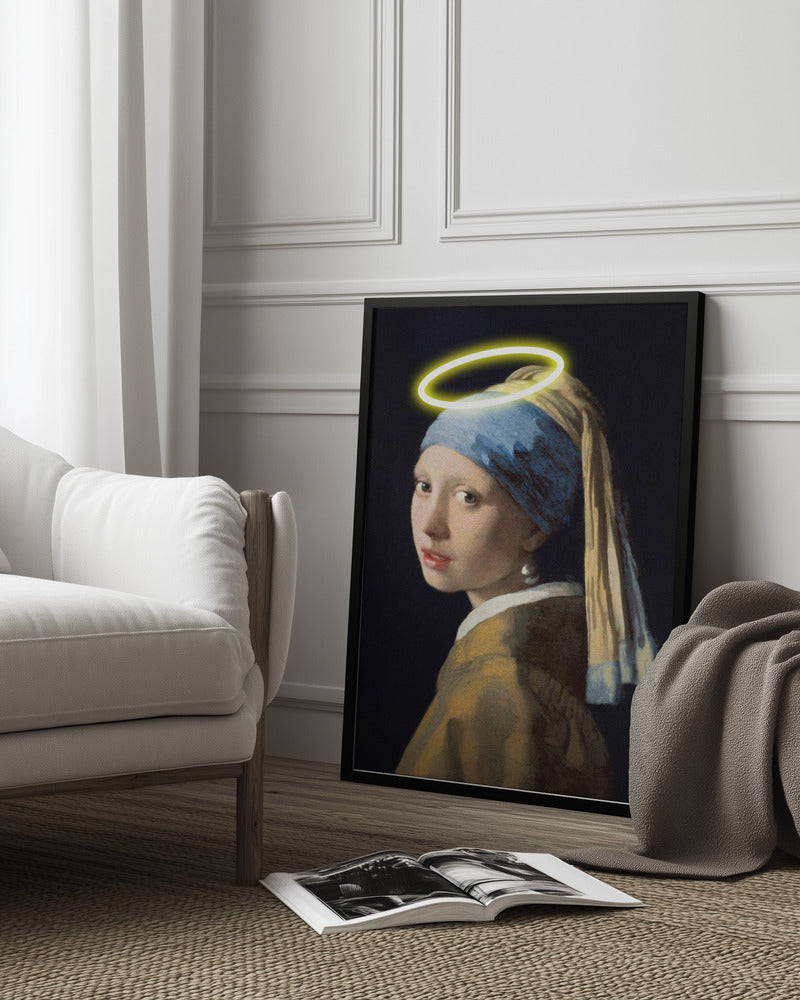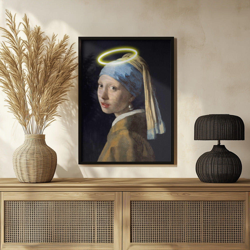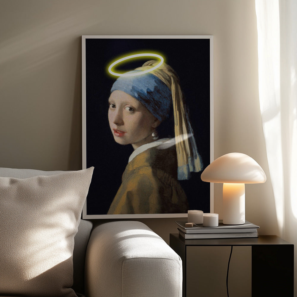 Tabloul înramat „Girl With A Halo”, creat de Artelele, este disponibil în mai multe dimensiuni, cu ramă neagră, albă sau din lemn natur. Se potrivește perfect în orice încăpere.
