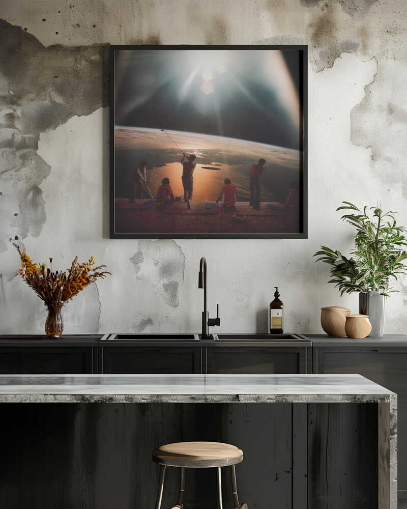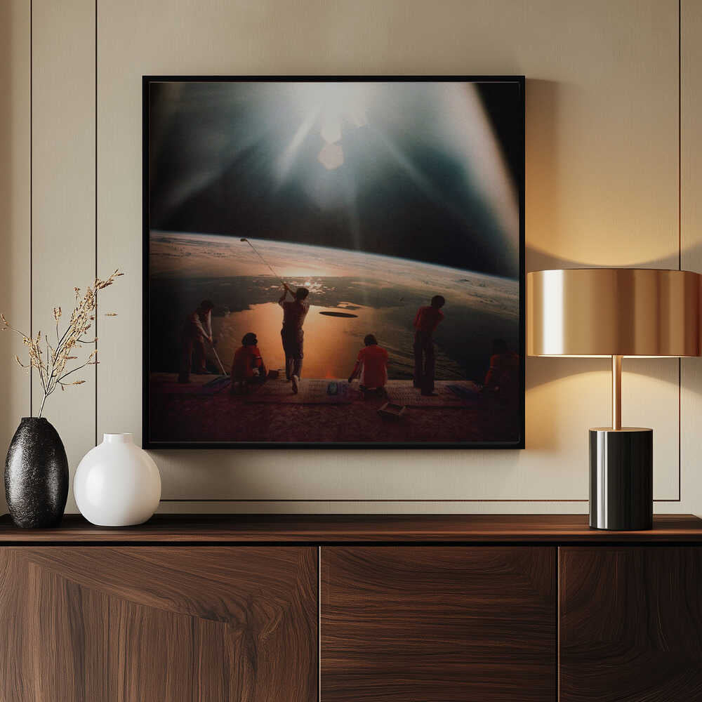 Tabloul înramat „Golfing In Space”, creat de Taudalpoi, este disponibil în mai multe dimensiuni, cu ramă neagră, albă sau din lemn natur. Se potrivește perfect în orice încăpere.