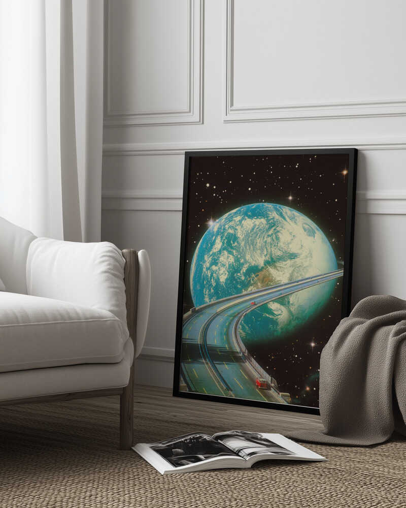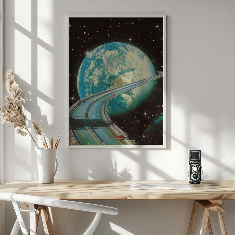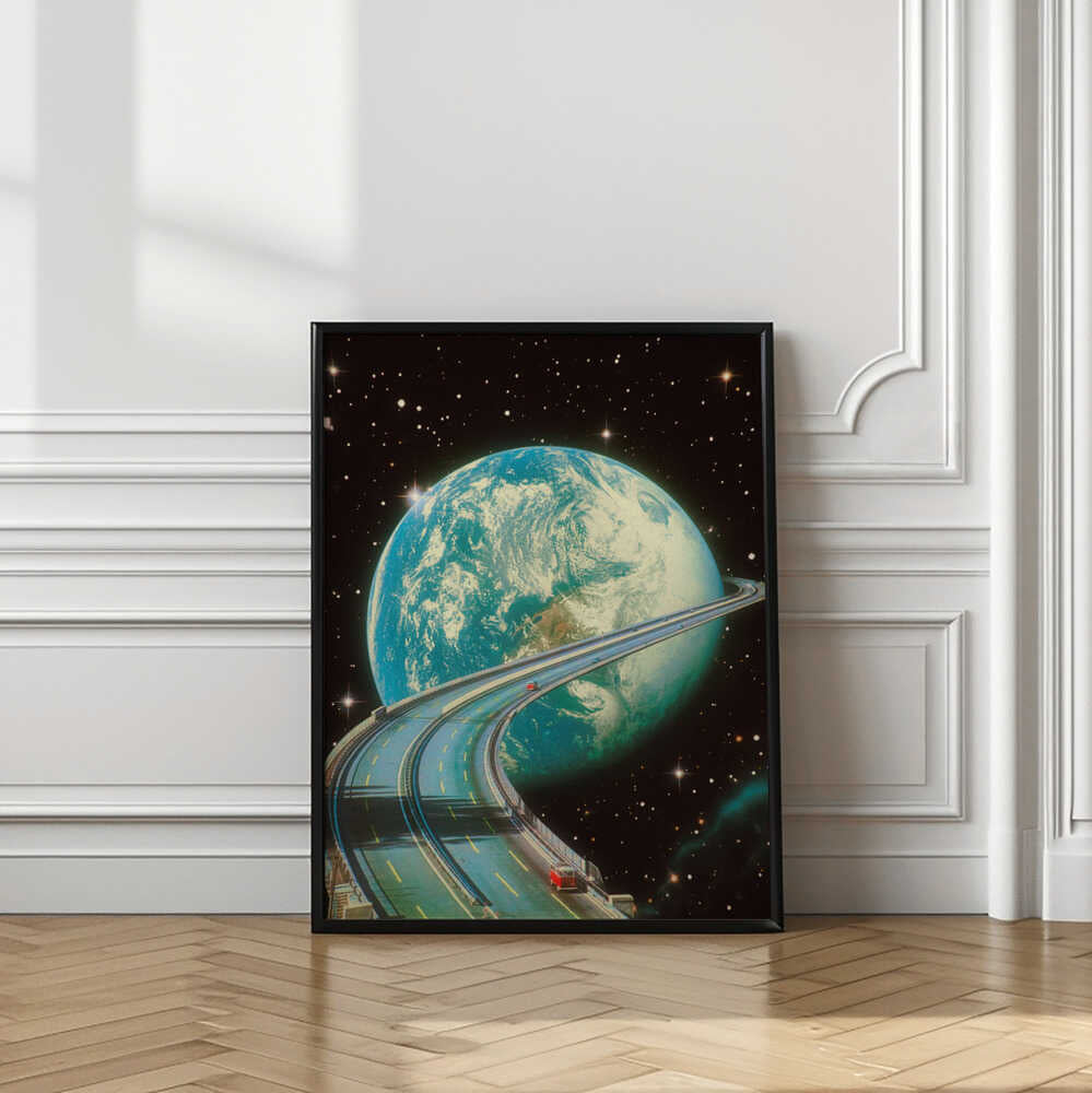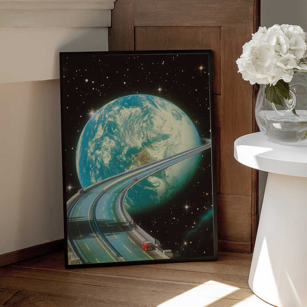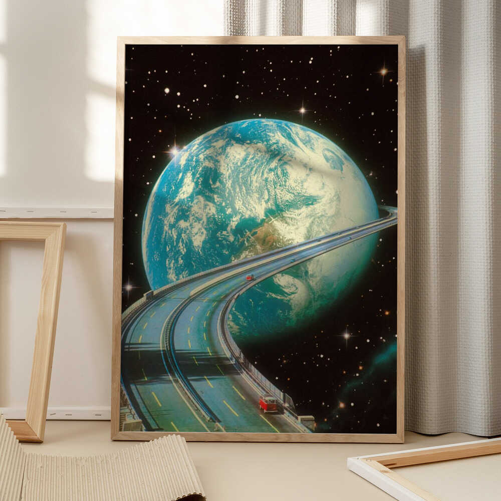 Tabloul înramat „Highway Home”, creat de Taudalpoi, este disponibil în mai multe dimensiuni, cu ramă neagră, albă sau din lemn natur. Se potrivește perfect în orice încăpere.