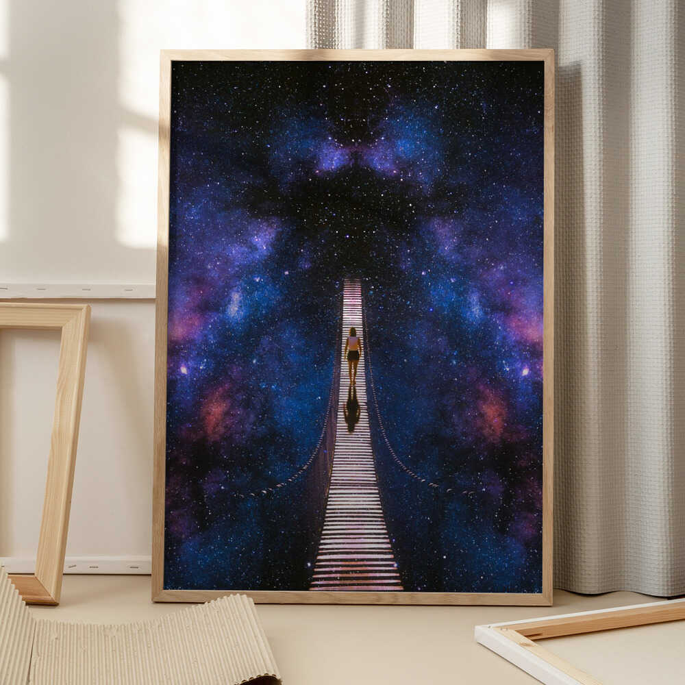 Tabloul înramat „Infinity”, creat de Taudalpoi, este disponibil în mai multe dimensiuni, cu ramă neagră, albă sau din lemn natur. Se potrivește perfect în orice încăpere.