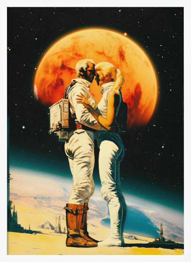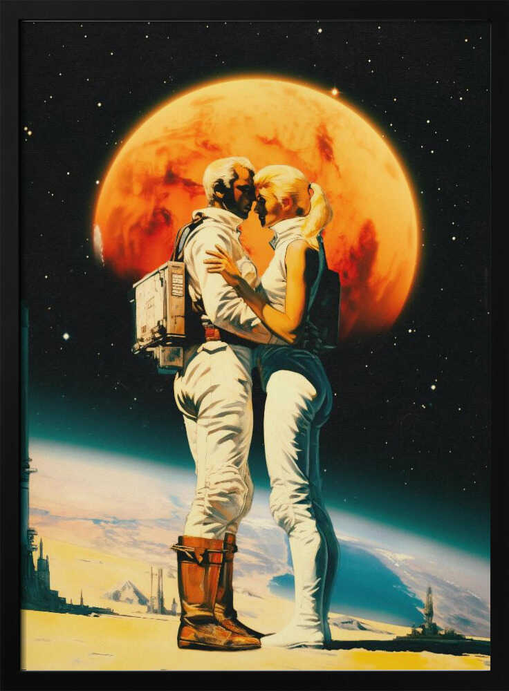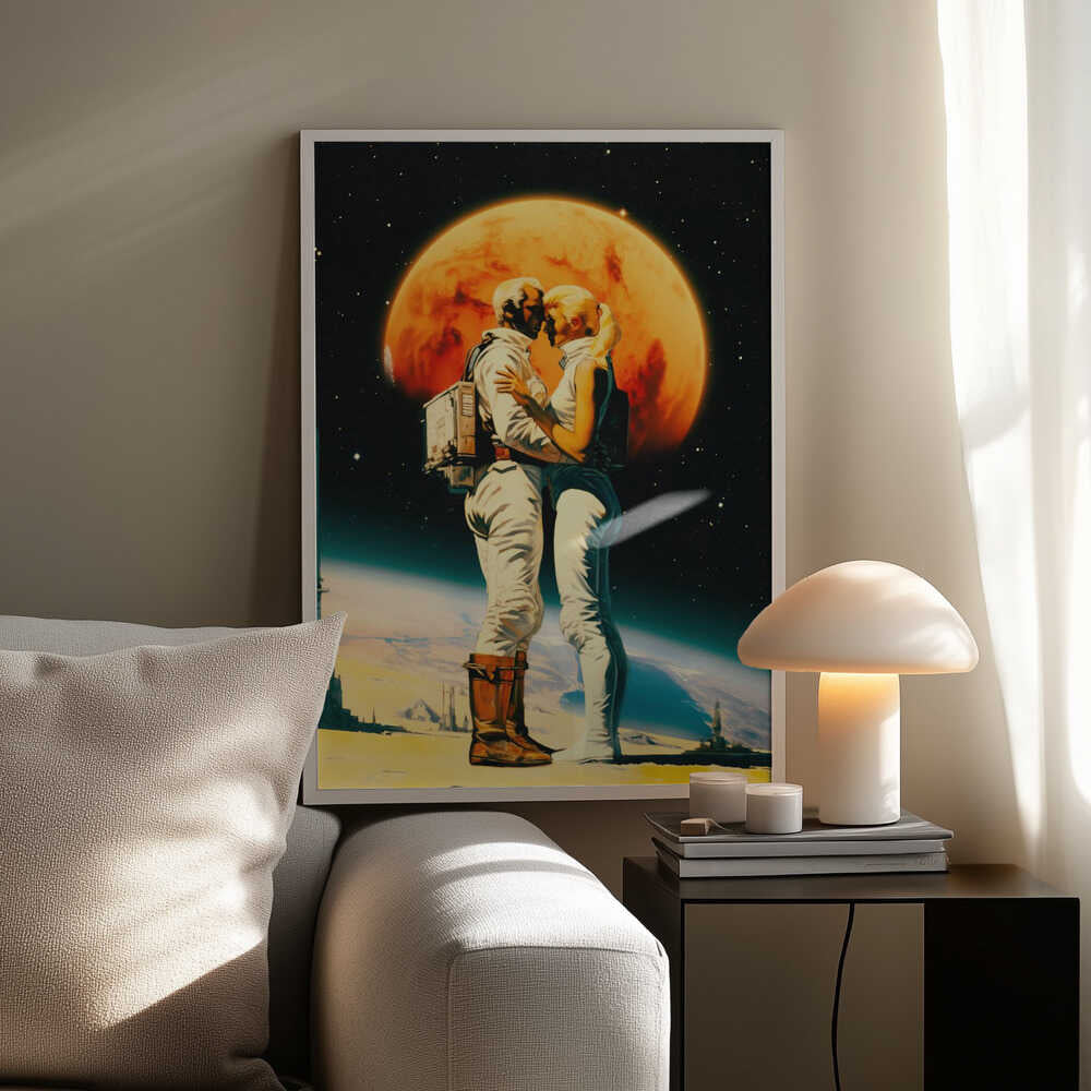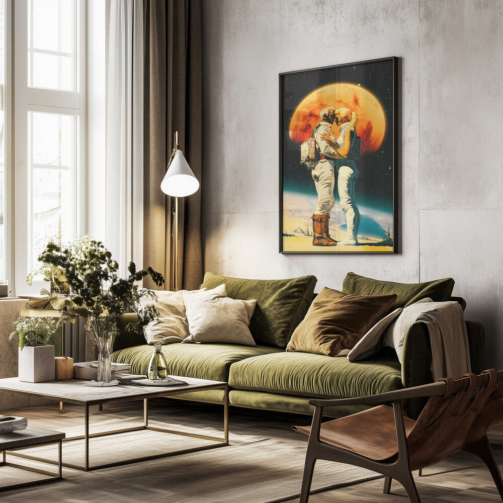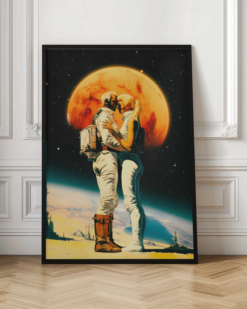 Tabloul înramat „Intergalactic Love”, creat de Taudalpoi, este disponibil în mai multe dimensiuni, cu ramă neagră, albă sau din lemn natur. Se potrivește perfect în orice încăpere.