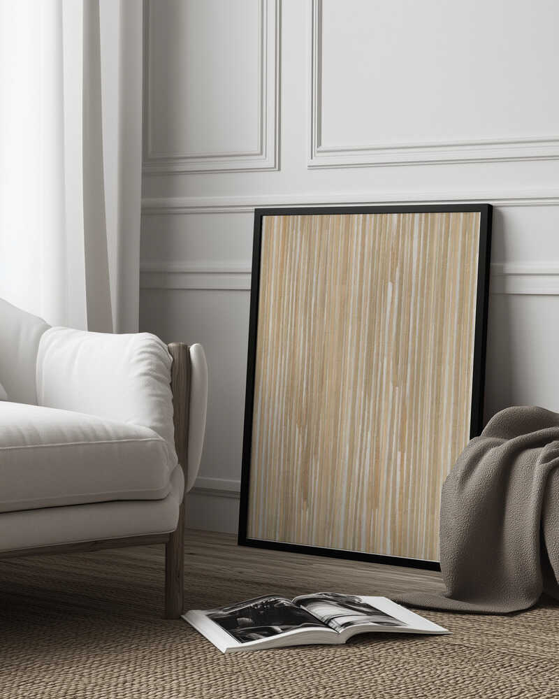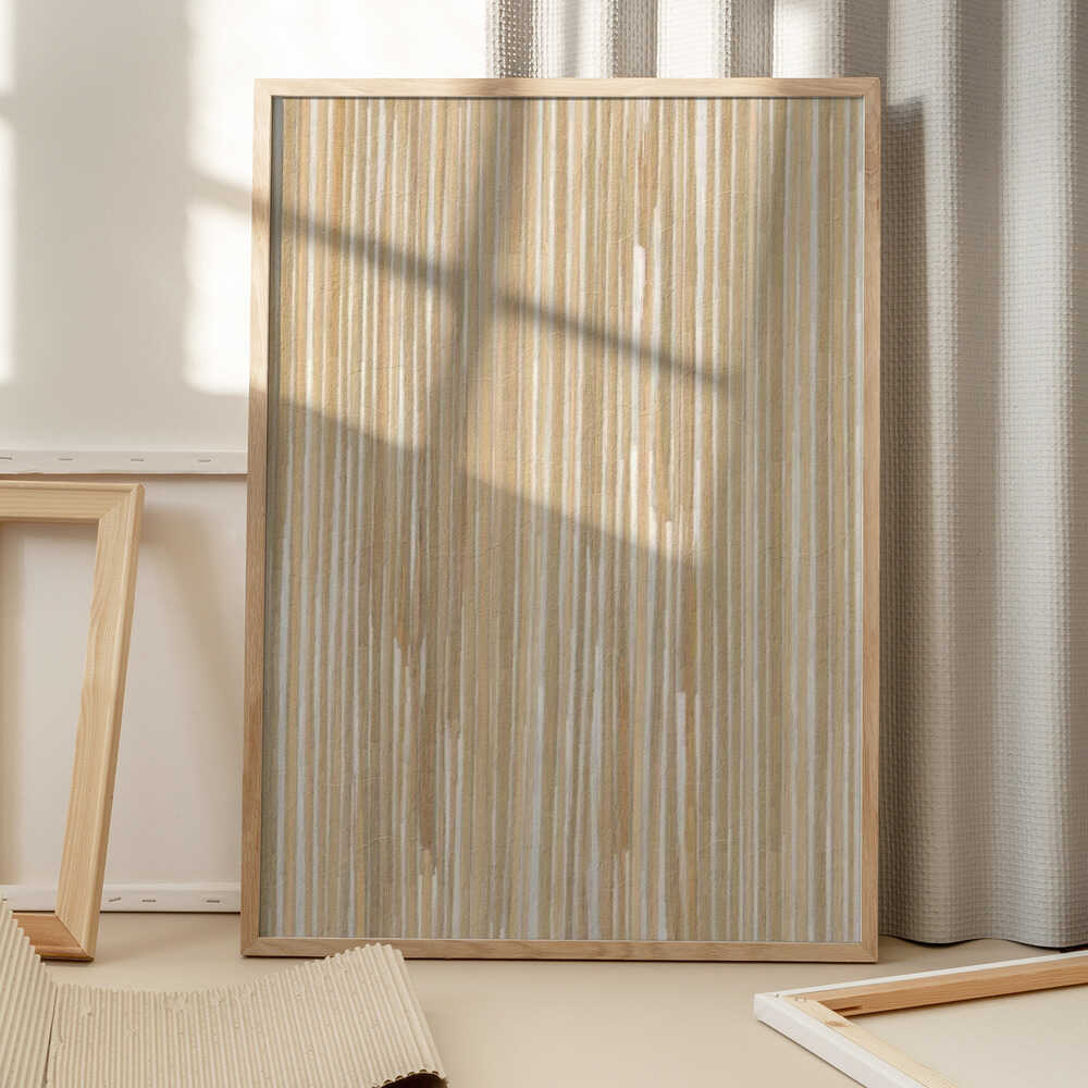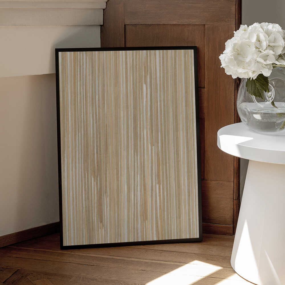 Tabloul înramat „Lines and Textures #4”, creat de Alma, este disponibil în mai multe dimensiuni, cu ramă neagră, albă sau din lemn natur. Se potrivește perfect în orice încăpere.