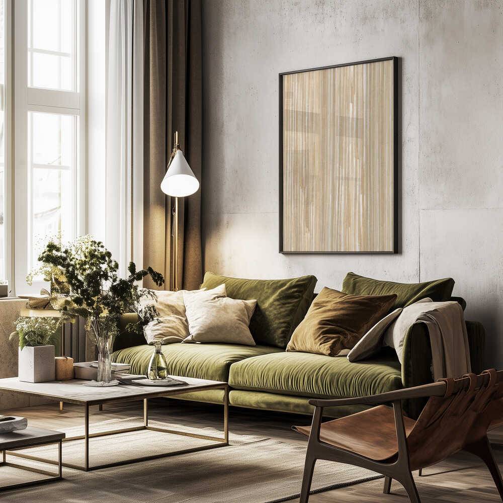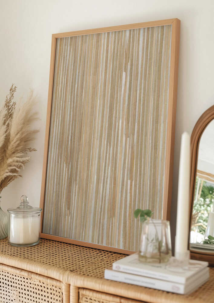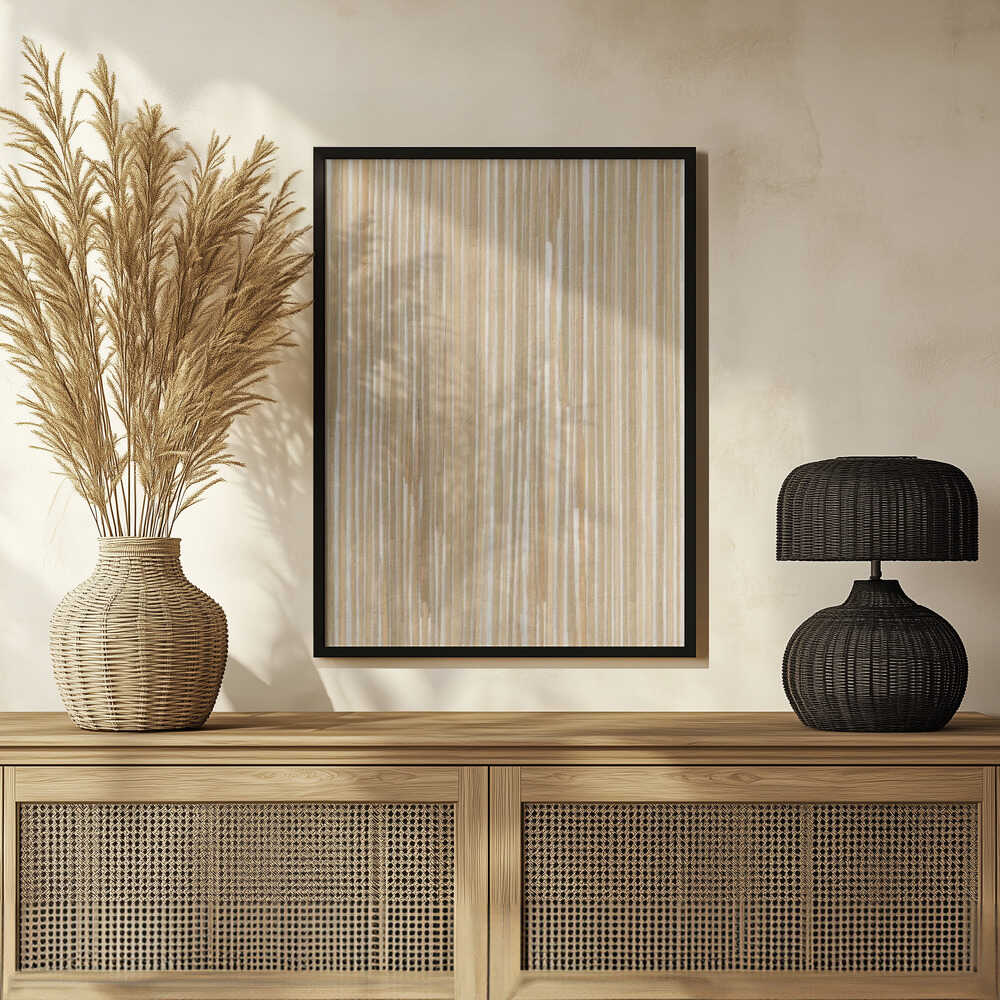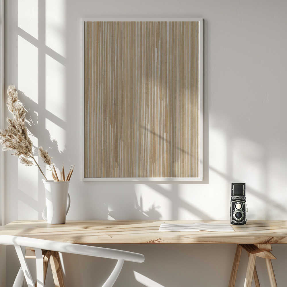 Tabloul înramat „Lines and Textures #4”, creat de Alma, este disponibil în mai multe dimensiuni, cu ramă neagră, albă sau din lemn natur. Se potrivește perfect în orice încăpere.