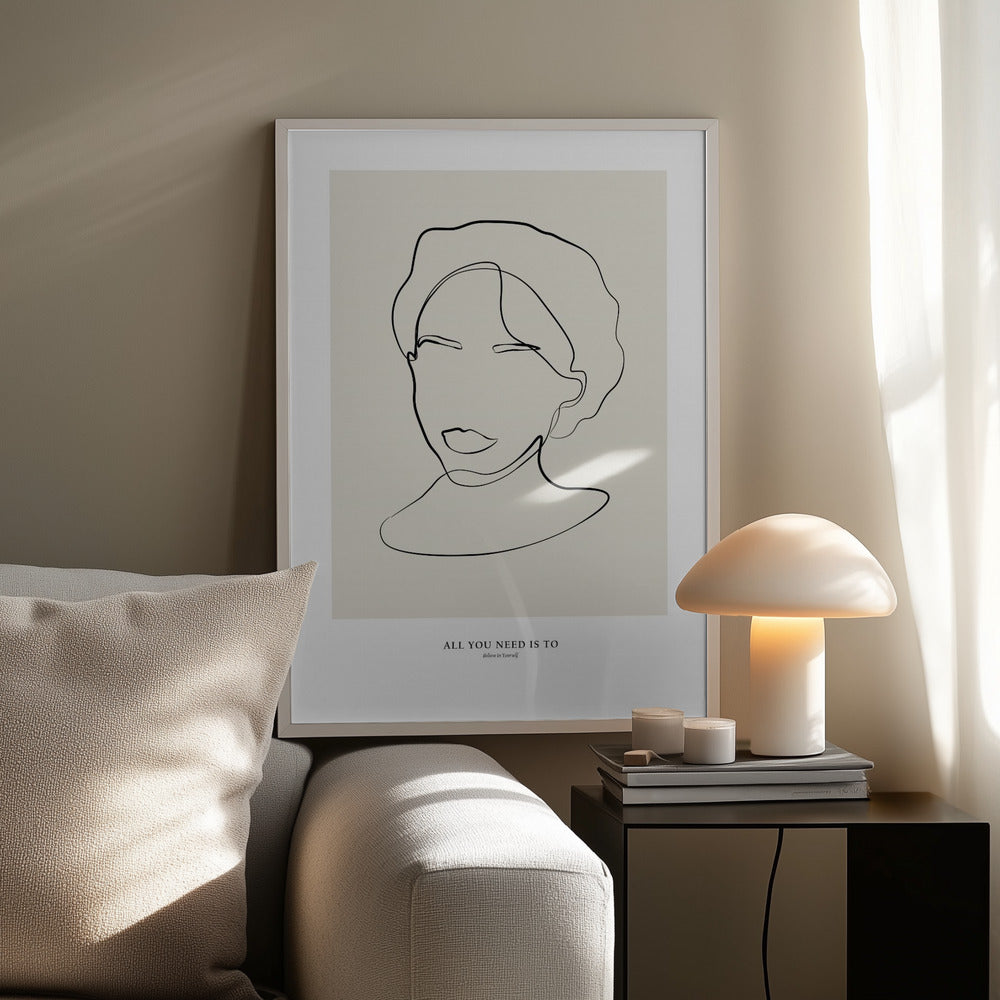 Tabloul înramat „Modern female line art”, creat de NKTN, este disponibil în mai multe dimensiuni, cu ramă neagră, albă sau din lemn natur. Se potrivește perfect în orice încăpere.