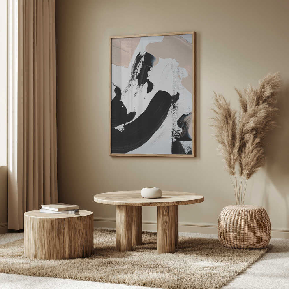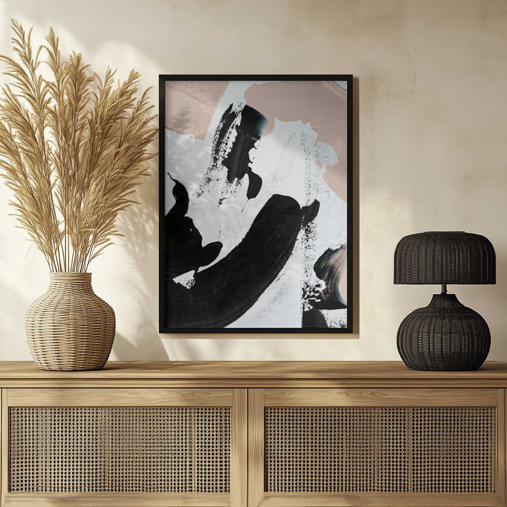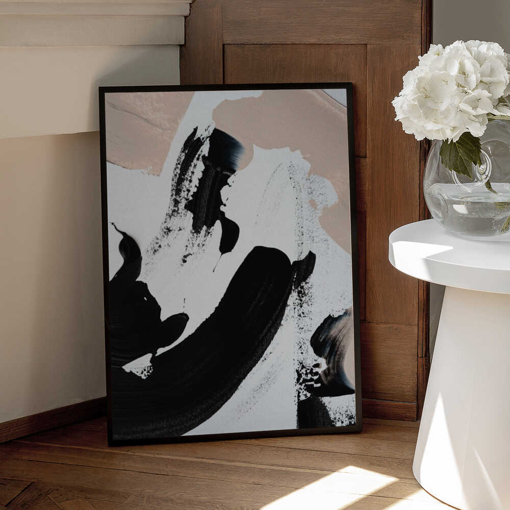 Tabloul înramat „Monochrome Dance”, creat de uplusmestudio, este disponibil în mai multe dimensiuni, cu ramă neagră, albă sau din lemn natur. Se potrivește perfect în orice încăpere.