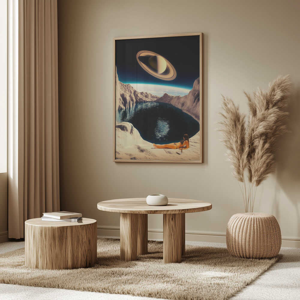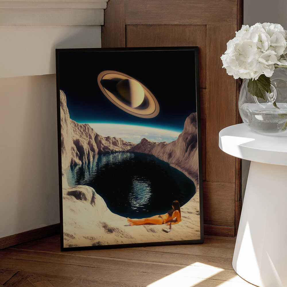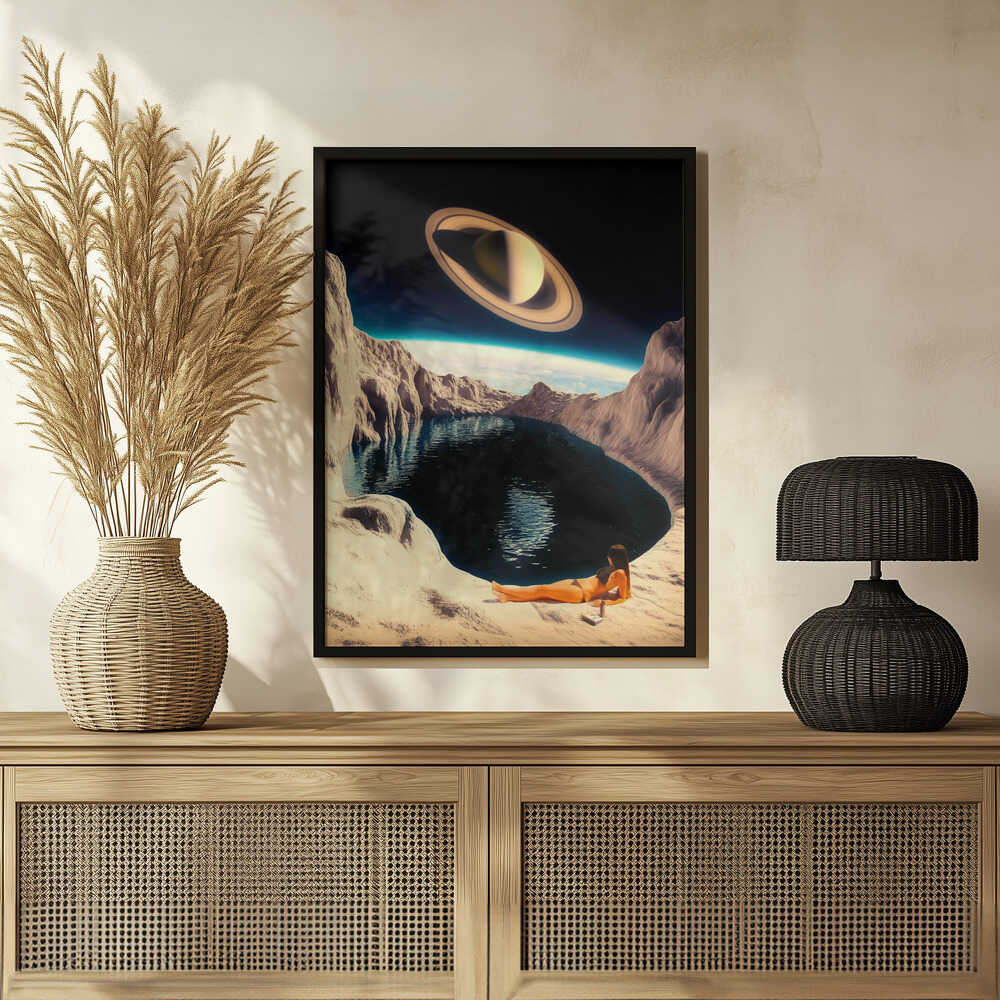 Tabloul înramat „Moon Pool”, creat de Taudalpoi, este disponibil în mai multe dimensiuni, cu ramă neagră, albă sau din lemn natur. Se potrivește perfect în orice încăpere.