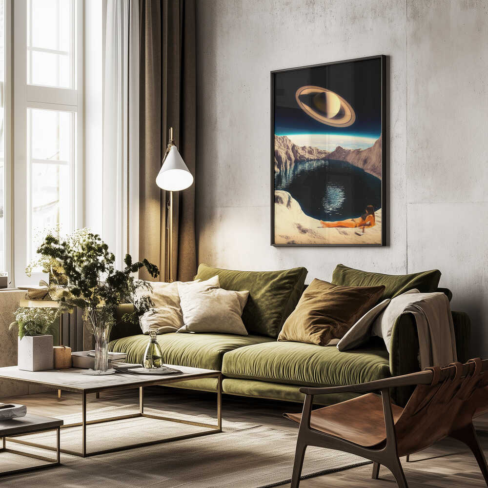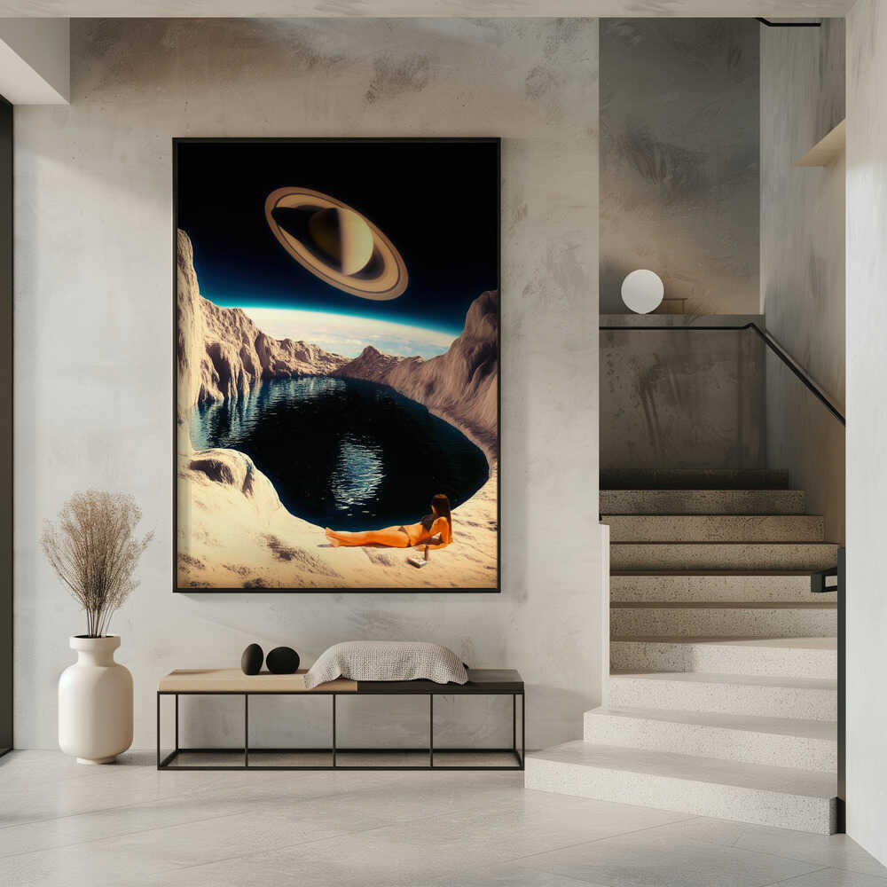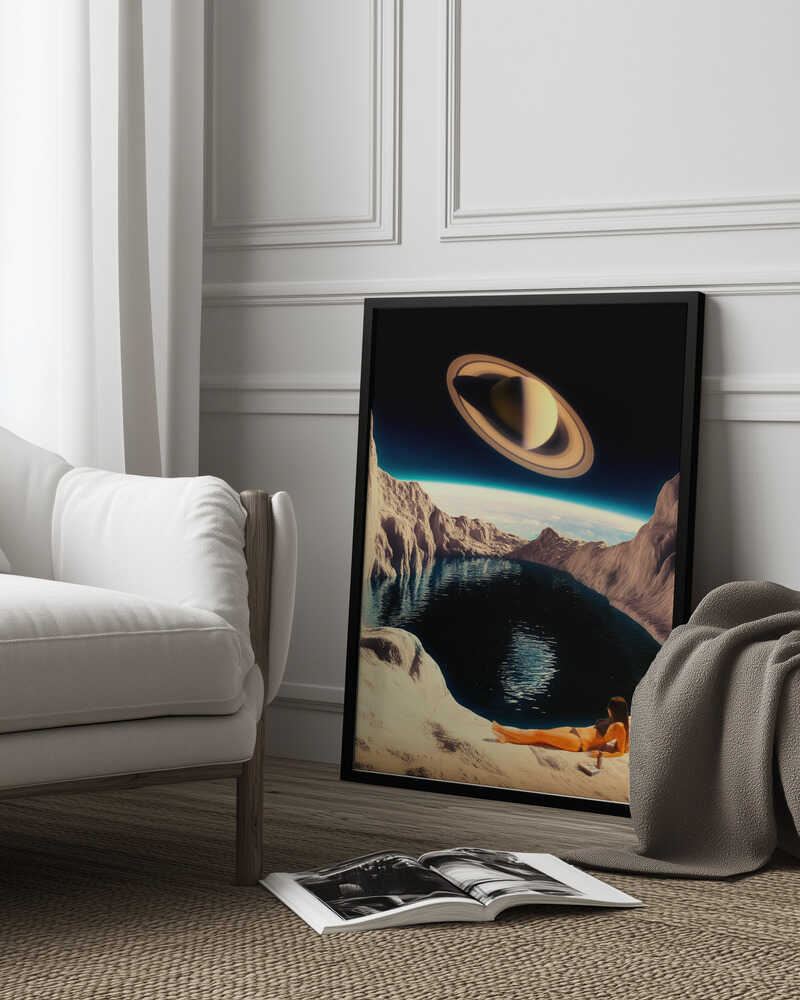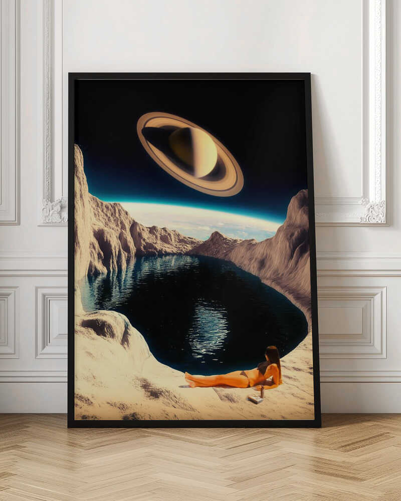 Tabloul înramat „Moon Pool”, creat de Taudalpoi, este disponibil în mai multe dimensiuni, cu ramă neagră, albă sau din lemn natur. Se potrivește perfect în orice încăpere.