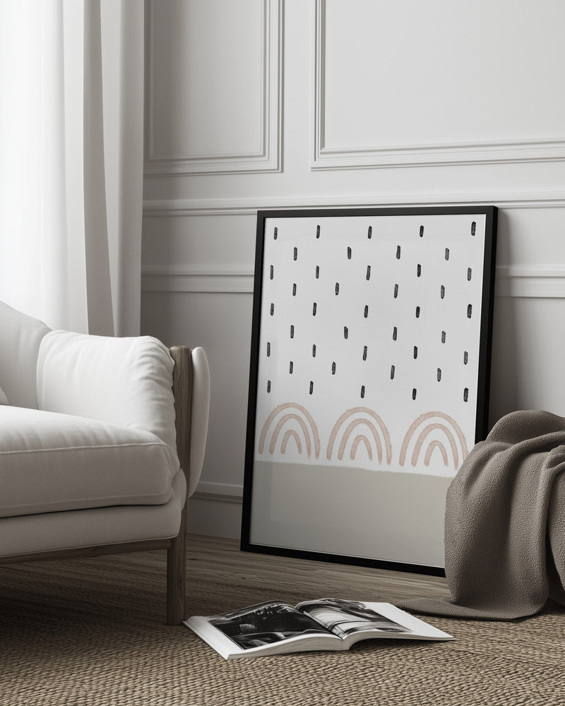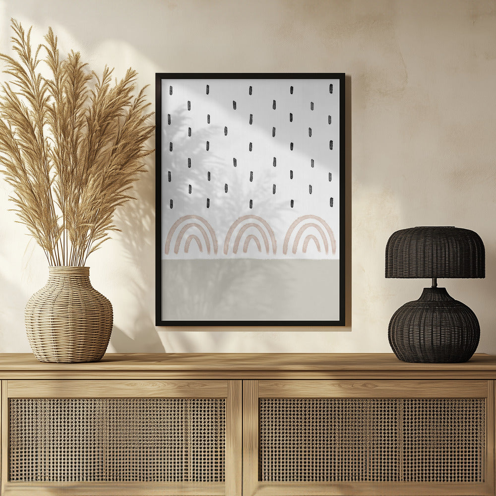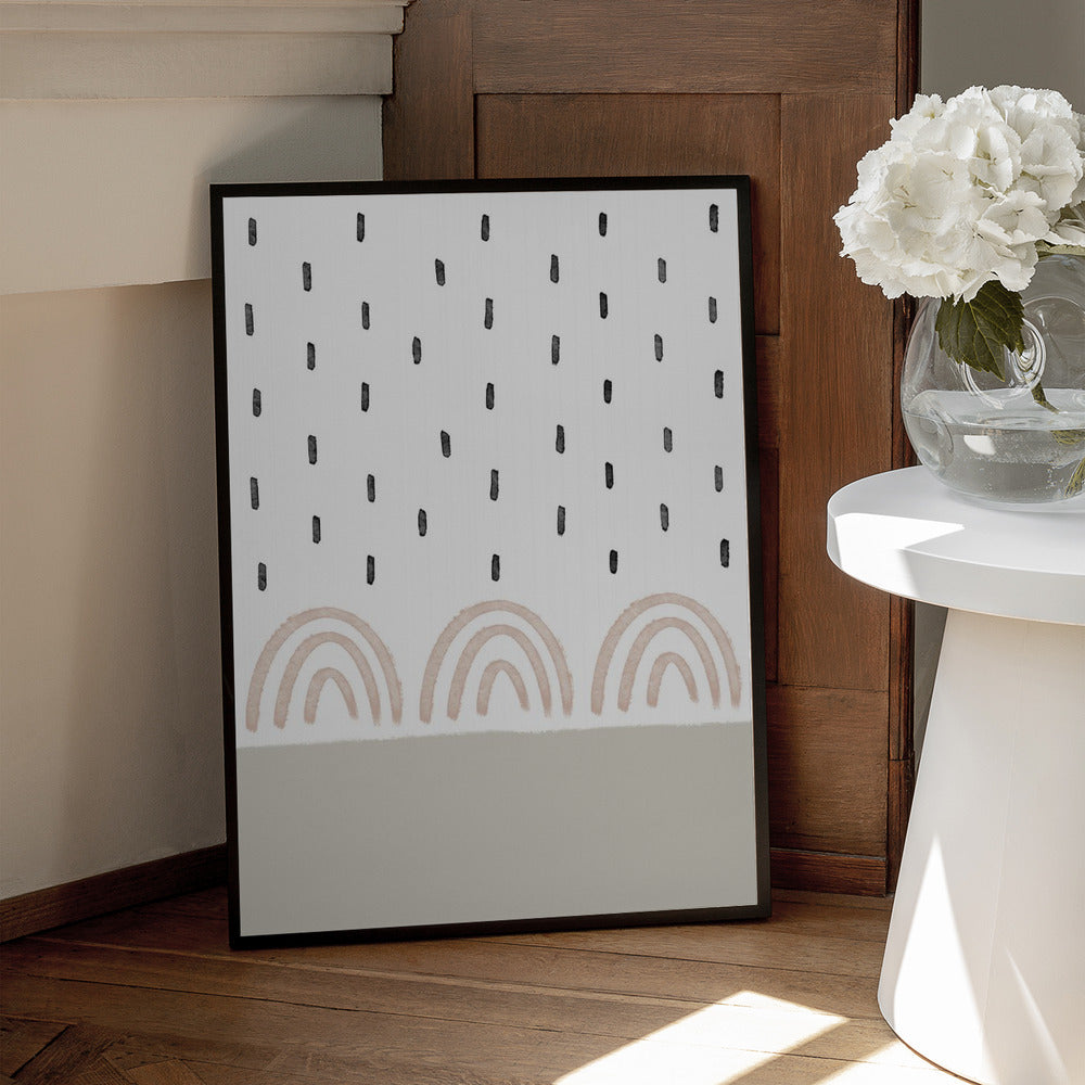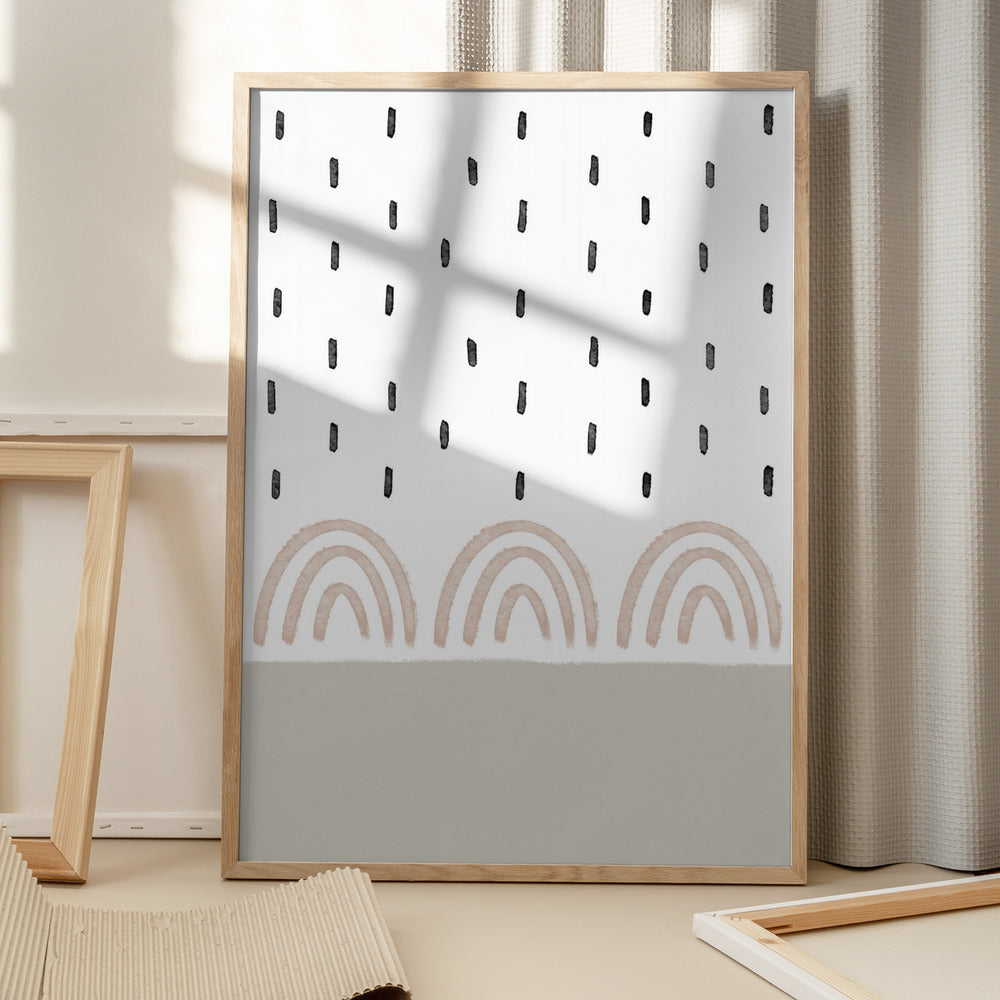 Tabloul înramat „Muted Rainbows Sky”, creat de uplusmestudio, este disponibil în mai multe dimensiuni, cu ramă neagră, albă sau din lemn natur. Se potrivește perfect în orice încăpere.