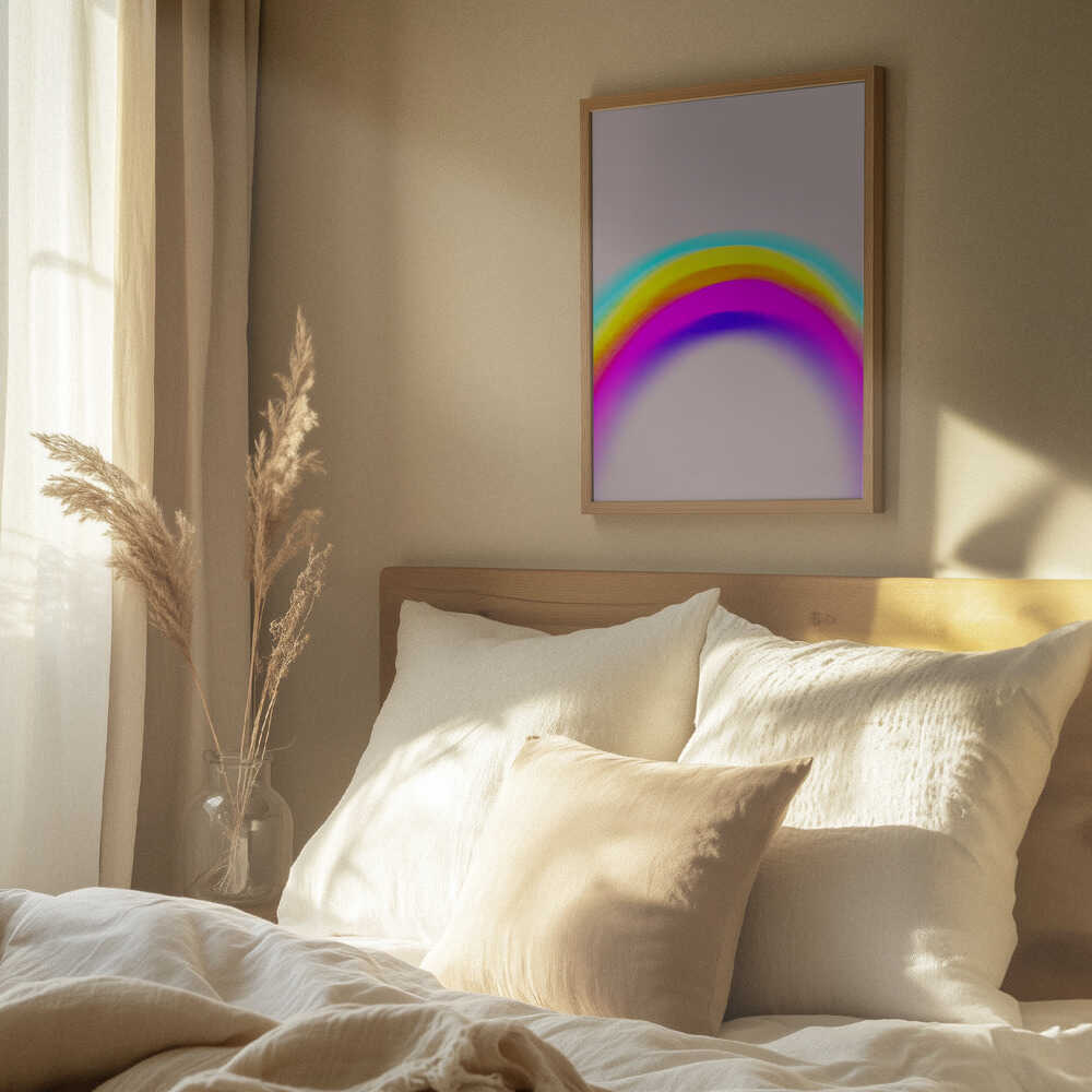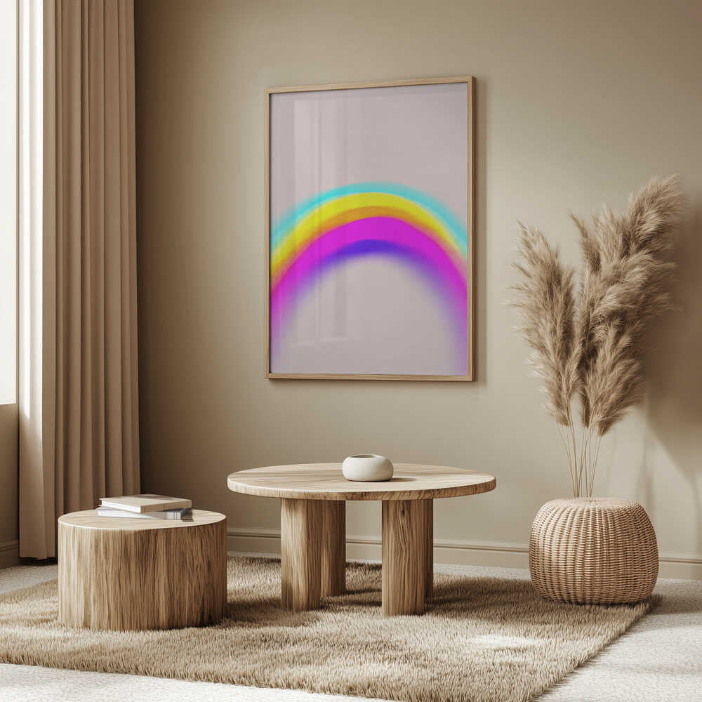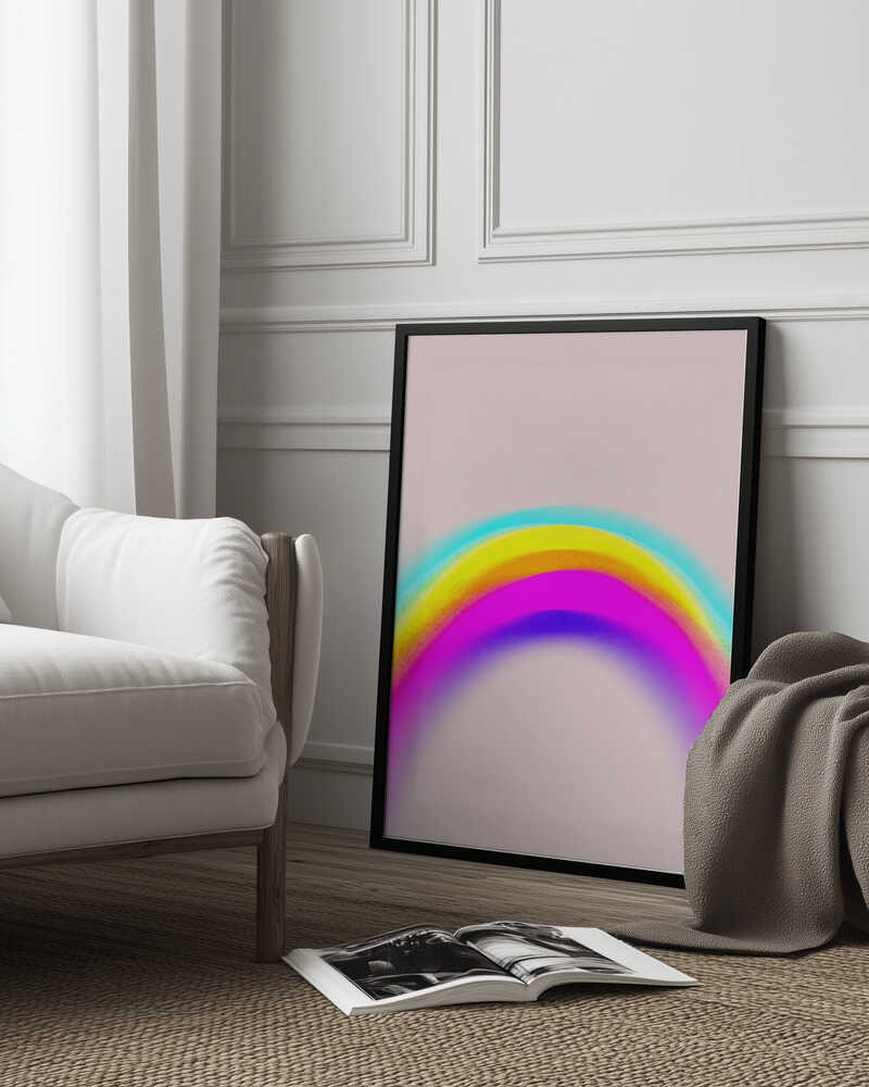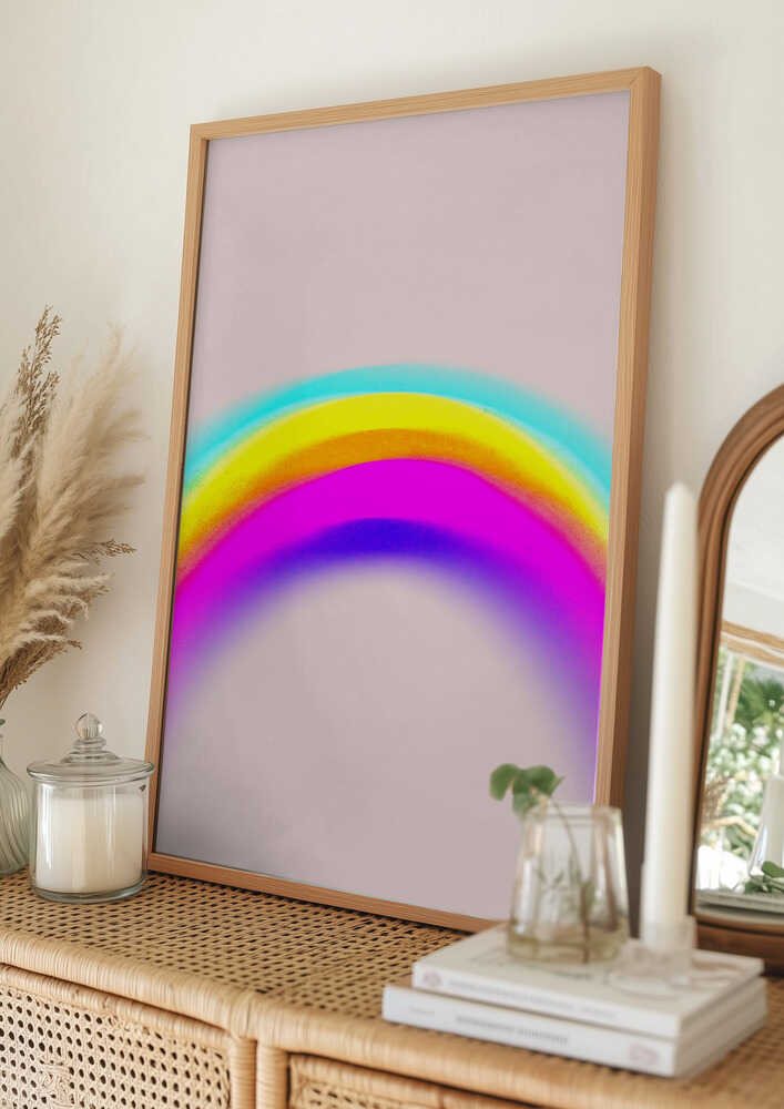Tabloul înramat „Neon Arcadia”, creat de Treechild, este disponibil în mai multe dimensiuni, cu ramă neagră, albă sau din lemn natur. Se potrivește perfect în orice încăpere.