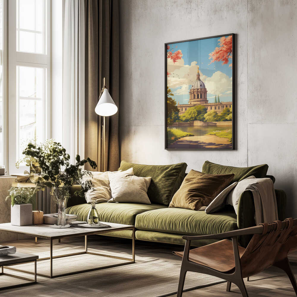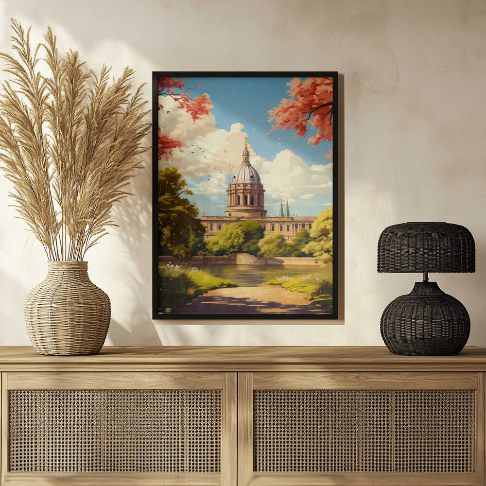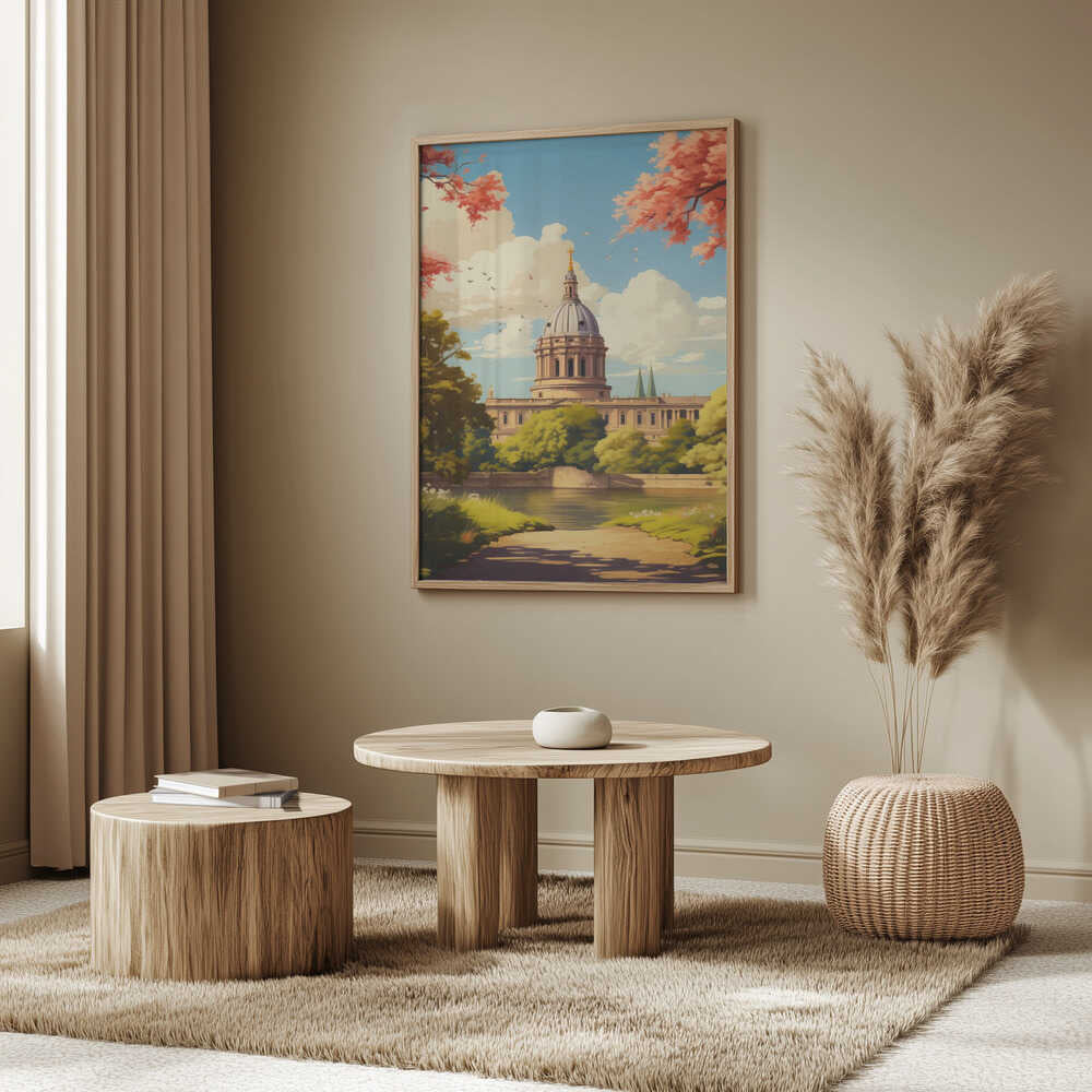 Tabloul înramat „Oxford Travel Art”, creat de Taudalpoi, este disponibil în mai multe dimensiuni, cu ramă neagră, albă sau din lemn natur. Se potrivește perfect în orice încăpere.