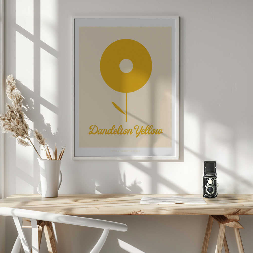 Tabloul înramat „Pandc Dandelionyellow Copy”, creat de Jenny Liz Rome, este disponibil în mai multe dimensiuni, cu ramă neagră, albă sau din lemn natur. Se potrivește perfect în orice încăpere.