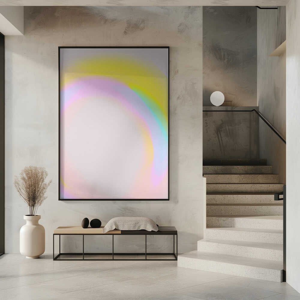 Tabloul înramat „Pastel Aurora”, creat de Treechild, este disponibil în mai multe dimensiuni, cu ramă neagră, albă sau din lemn natur. Se potrivește perfect în orice încăpere.