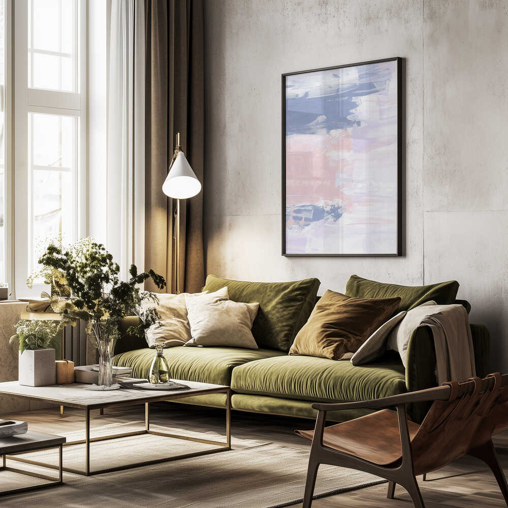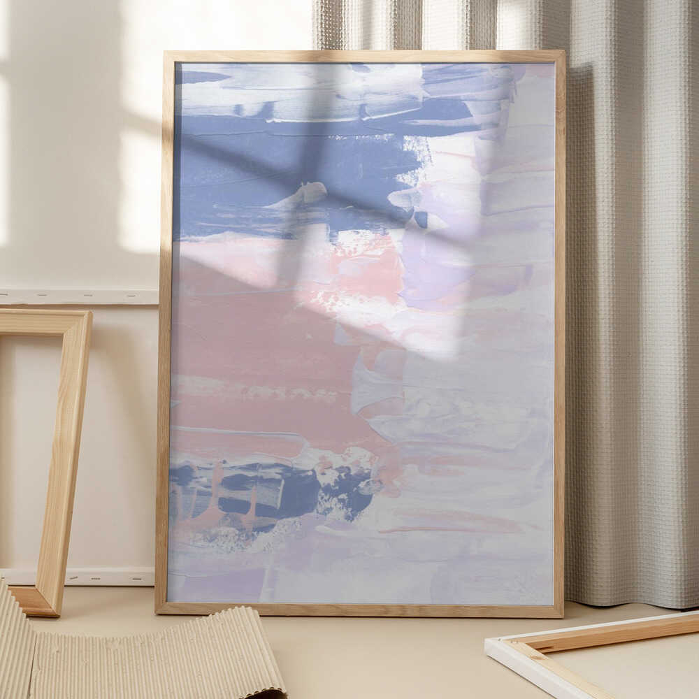 Tabloul înramat „Pastel Brushstrokes”, creat de uplusmestudio, este disponibil în mai multe dimensiuni, cu ramă neagră, albă sau din lemn natur. Se potrivește perfect în orice încăpere.